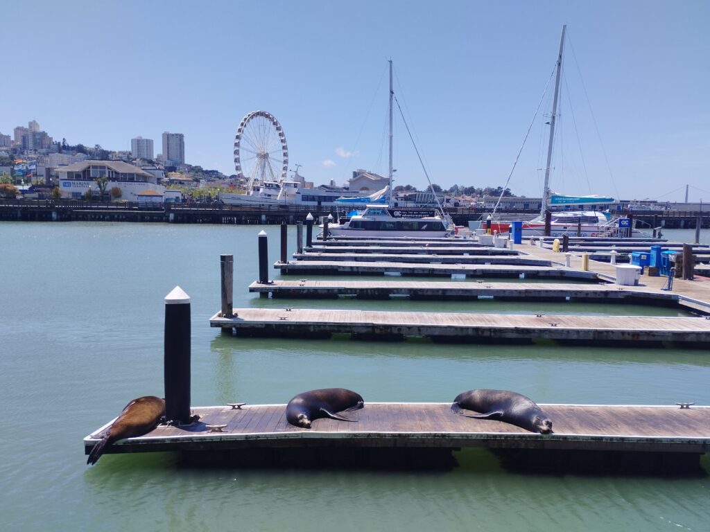 On s’est rendu ensuite en transport en commun à fisherman’s wharf. C’est un quartier hyper animé mais très mignon. On ne s’était pas beaucoup renseigné avant d’y aller et on a été étonné de tomber sur toutes ses otaries entrain de se prélasser au soleil 😊