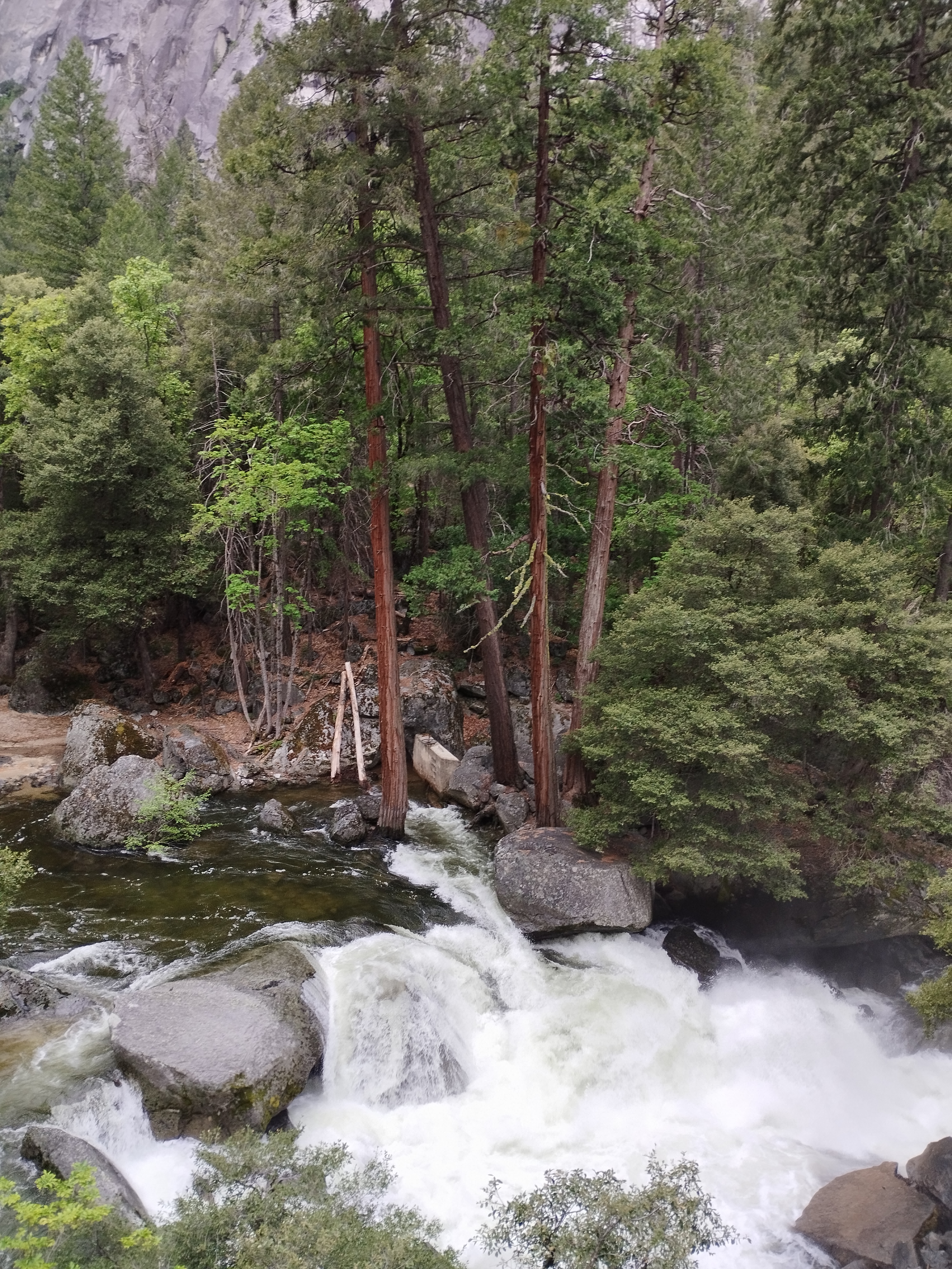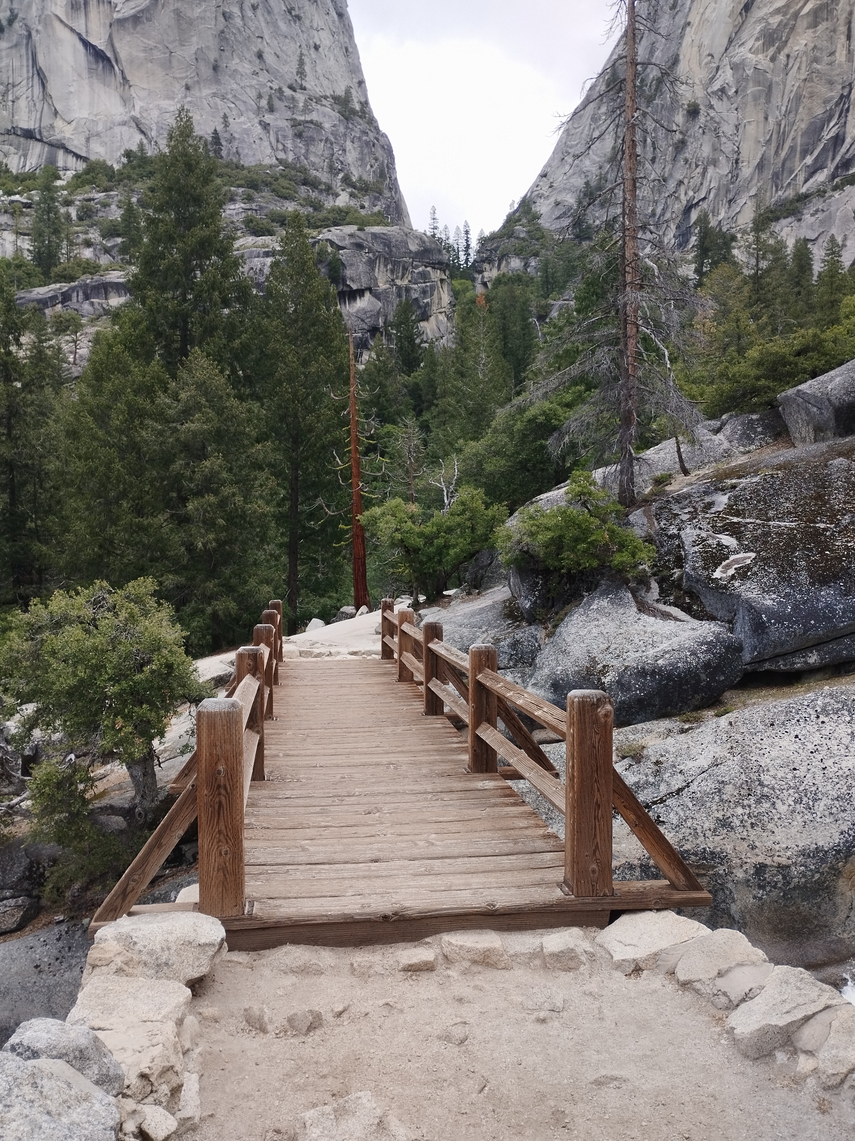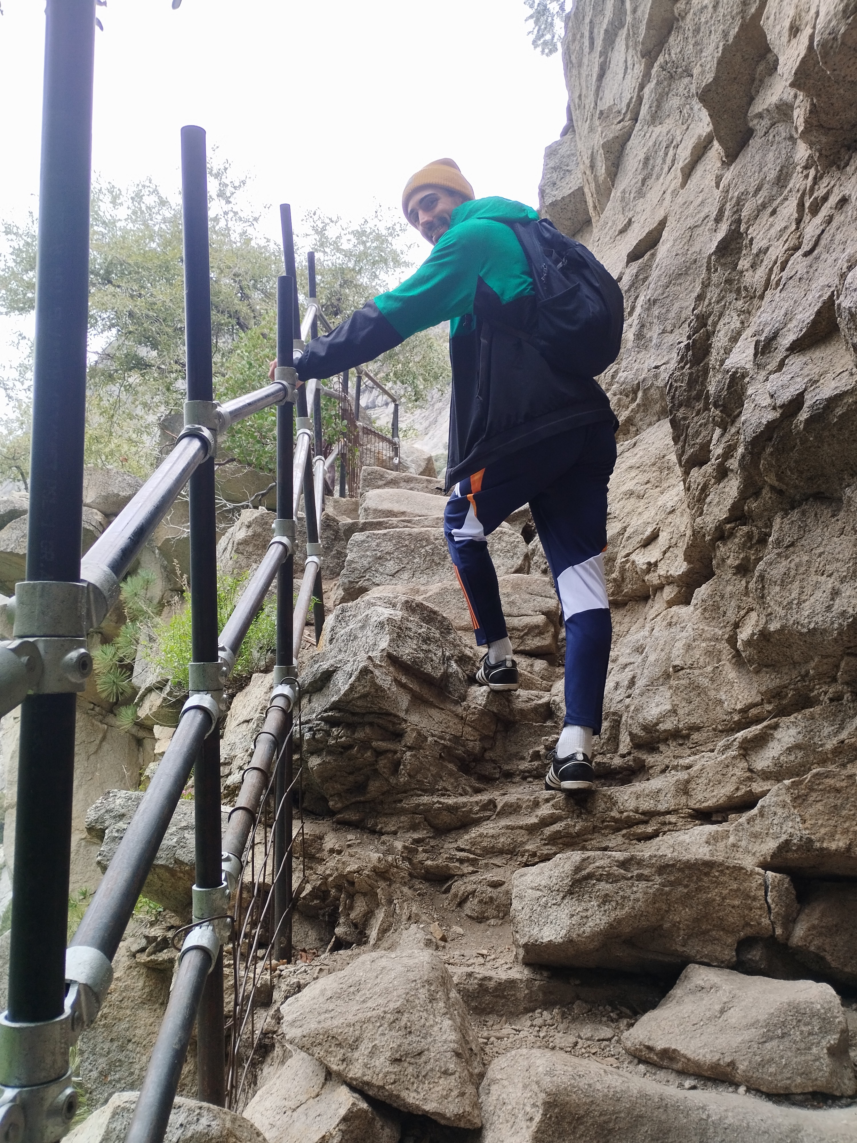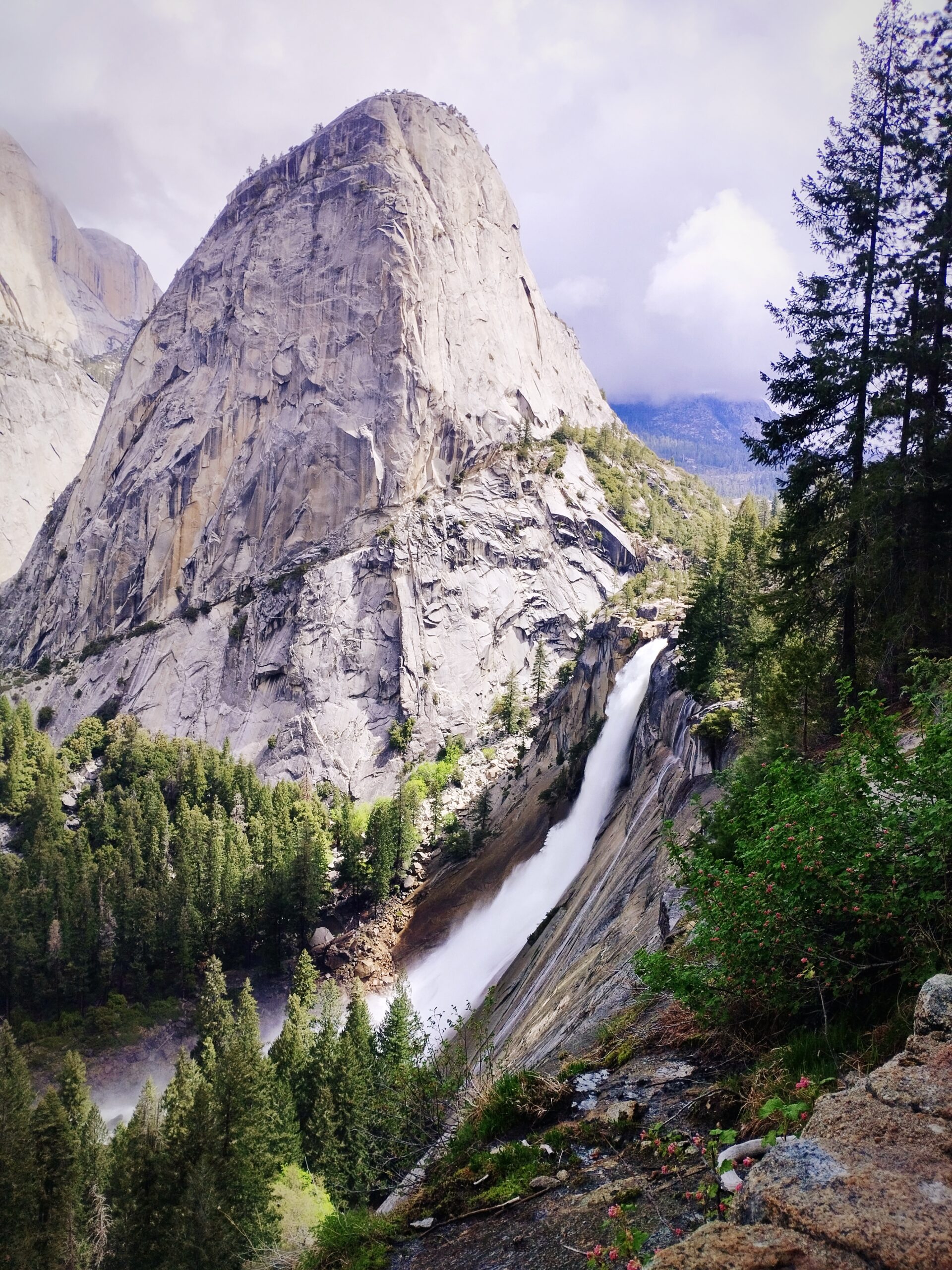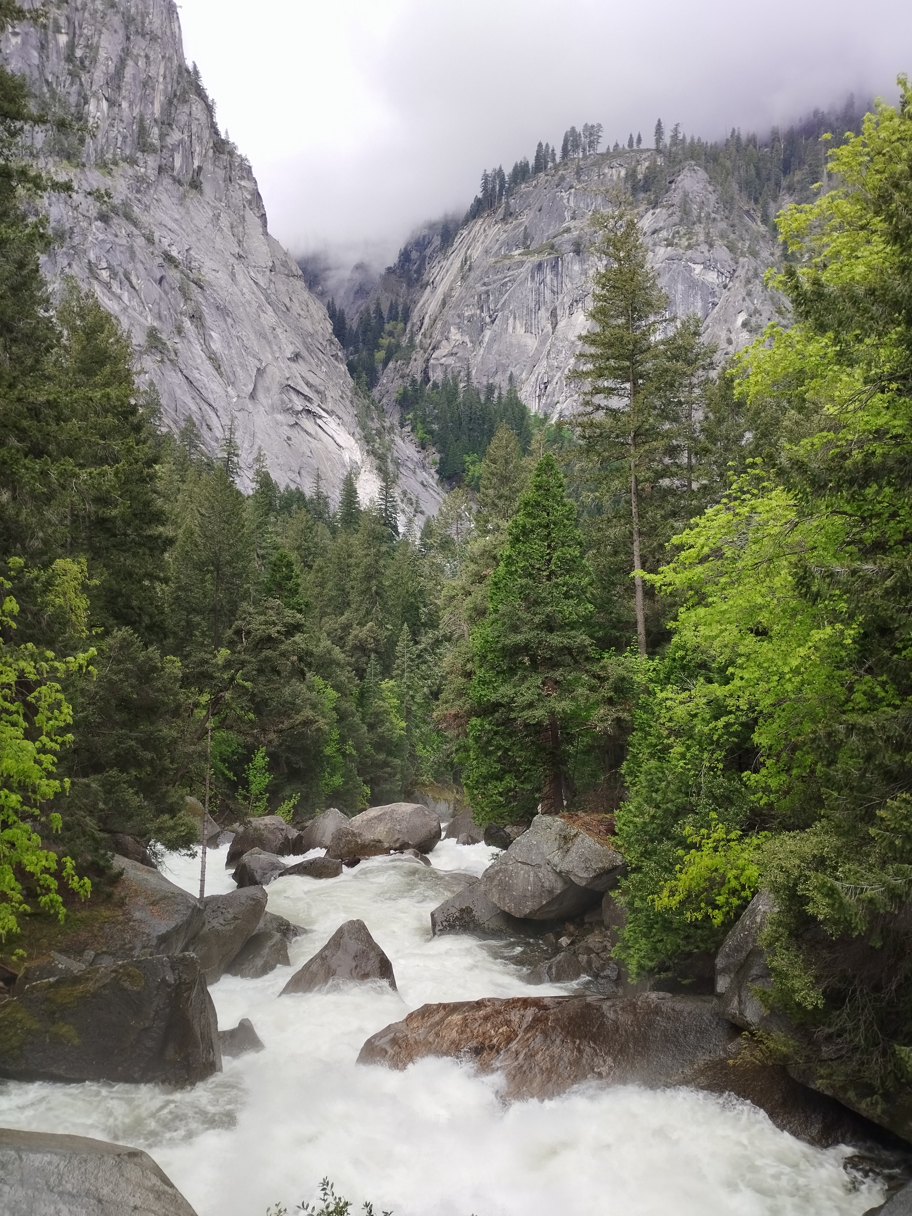 Nous avons choisi de faire la randonnée Mist trail jusqu’à Nevada falls, avec un retour par John Muir trail. Il me semble que nous avons mis environ 4h pour tout faire. Ca grimpe beaucoup mais c’est largement faisable. Il y a beaucoup d’escalier et Le débit d’eau était assez impressionnant. En arrivant au sommet, nous avons eu de la neige 🥶 Les cascades nous arrosent bien et, en plus de cela, il a plu 😆 Le soleil a également était présent. Enfait on a eu chaud et froid. Je ne sais pas comment on a fait pour ne pas tomber malade ^^ Moi j’avais un imperméable assez efficace, je n’étais donc pas mouillé sous mon manteau heureusement ! Mais on recommande cette randonnée. C’était très beau même avec un temps mitigé.