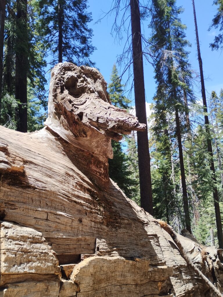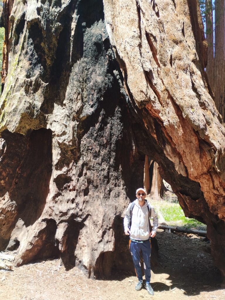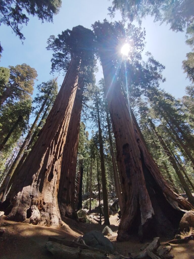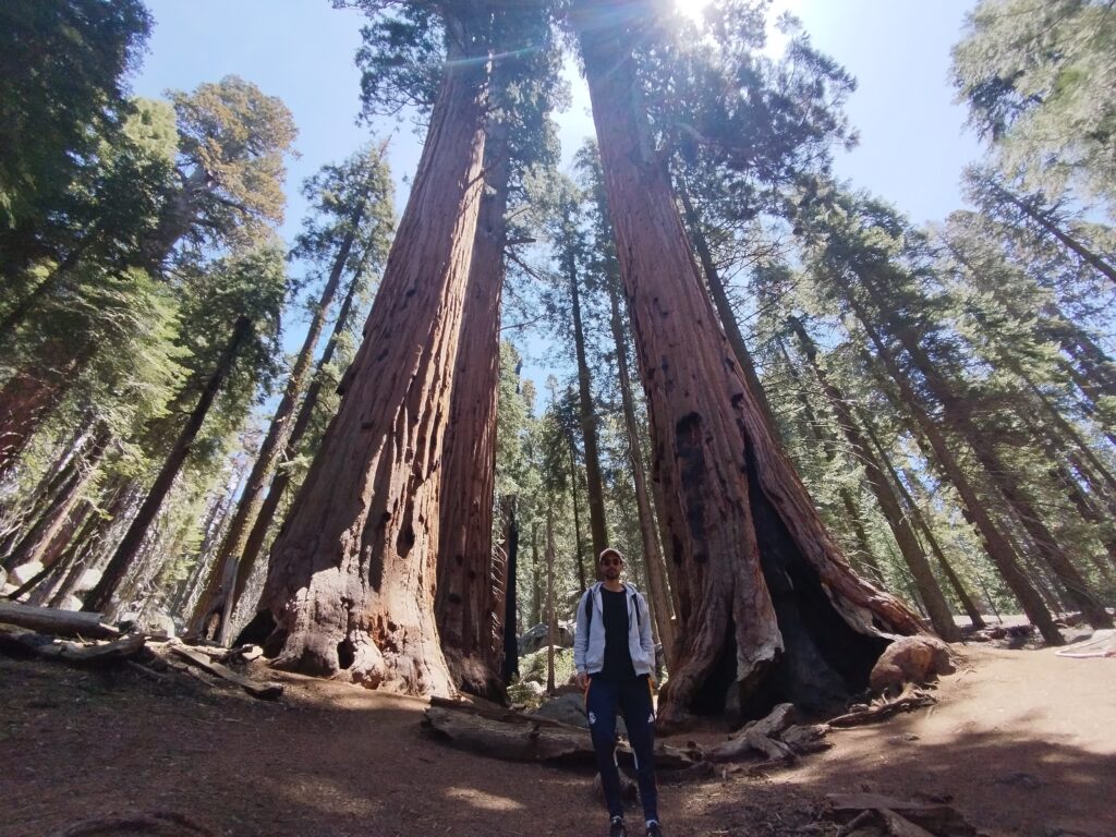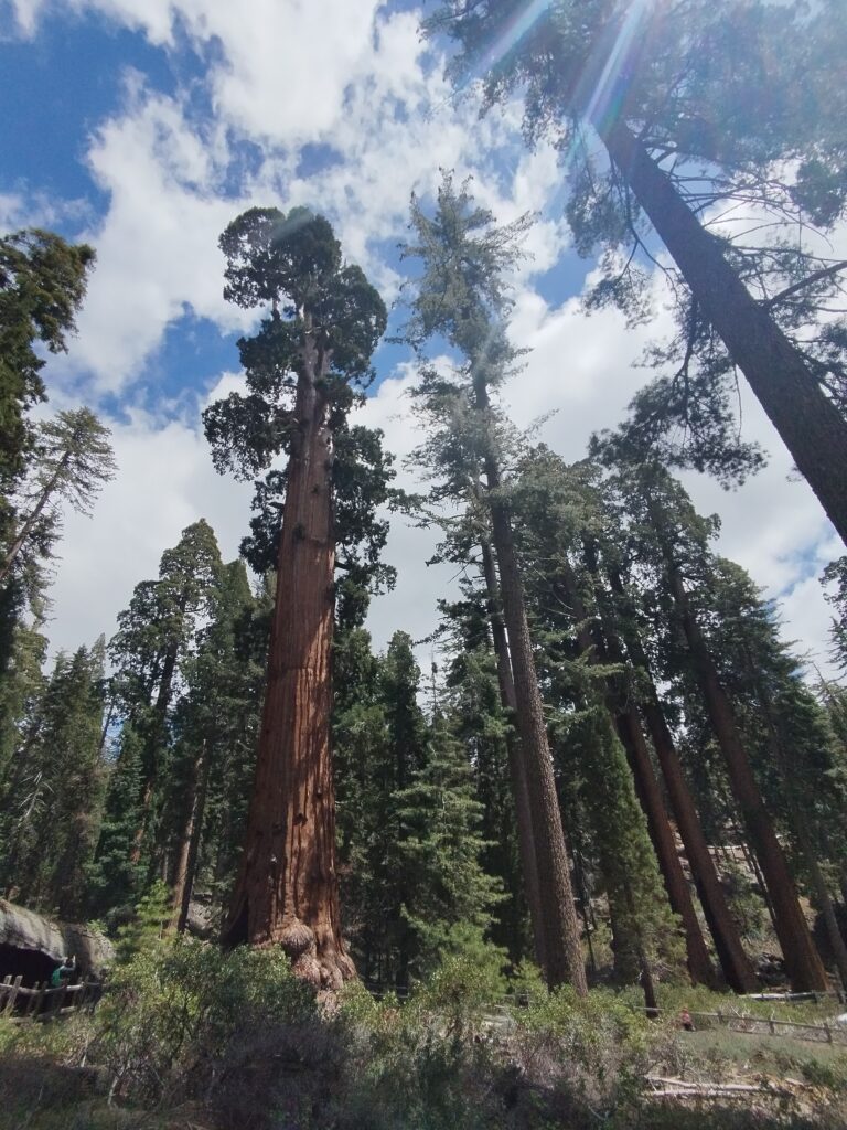 Le lendemain on a repris la route panoramique en sens inverse pour nous diriger vers le parc national Sequoia. On a commencé la journée par une petite randonnée à Buena Vista Peak. Ensuite nous avons fait la fameuse randonnée Sherman Tree et Congress Trail. Elle dure 2h environ. Elle se fait sans difficulté car le sentier est très bien aménagé. On a mangé sur une table de pique-nique avec une pancarte nous disant de surveiller notre nourriture à cause des ours. Je regardais régulièrement derrière moi si un ours allait apparaitre. Les américains semblaient beaucoup plus sereins 😅