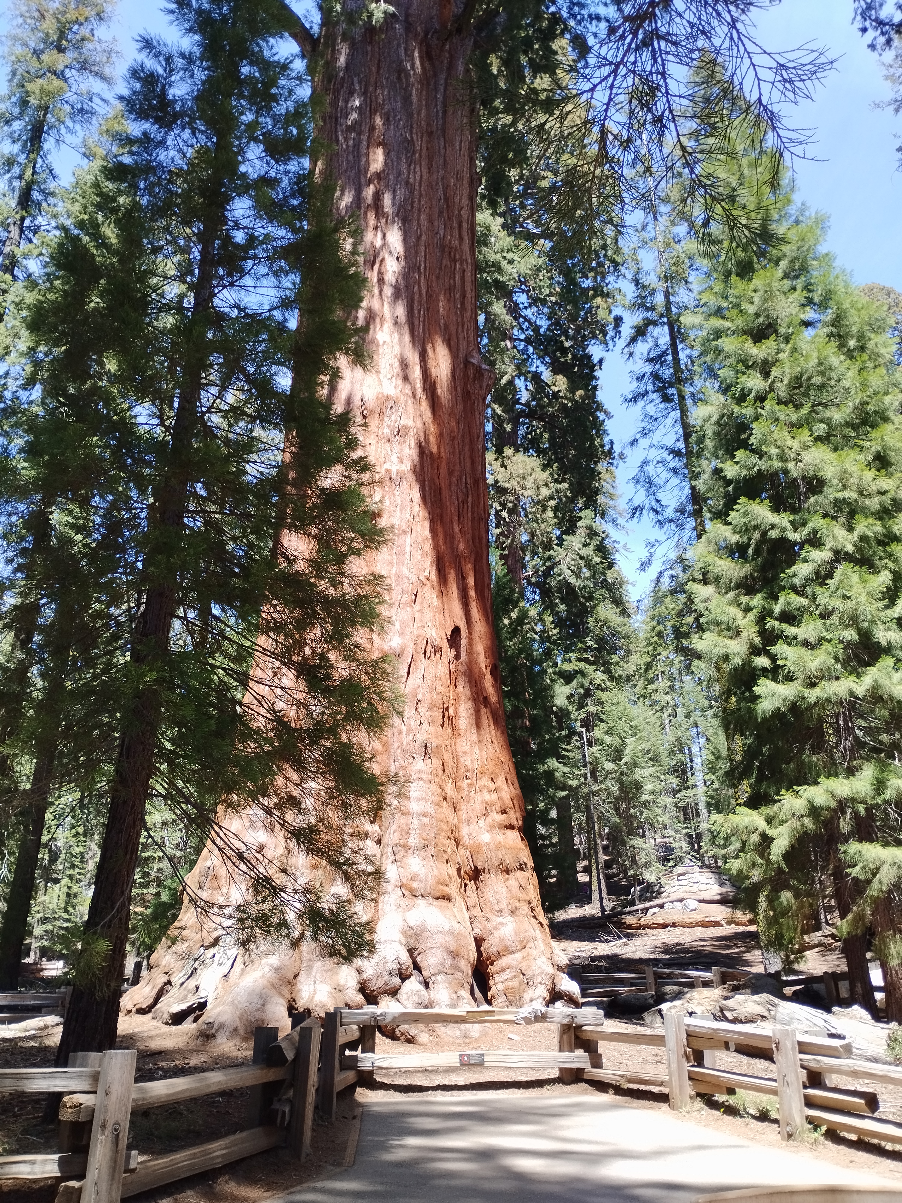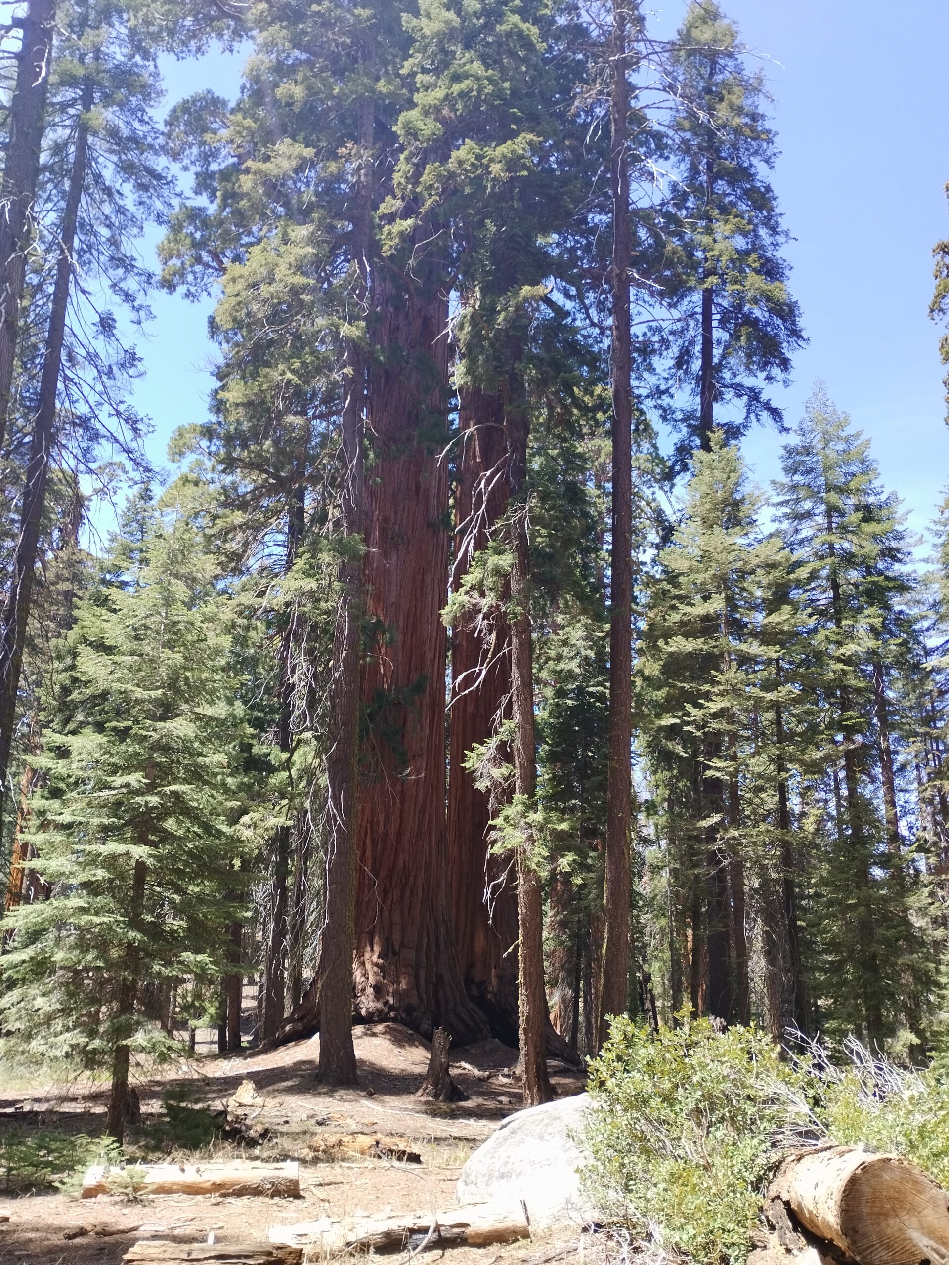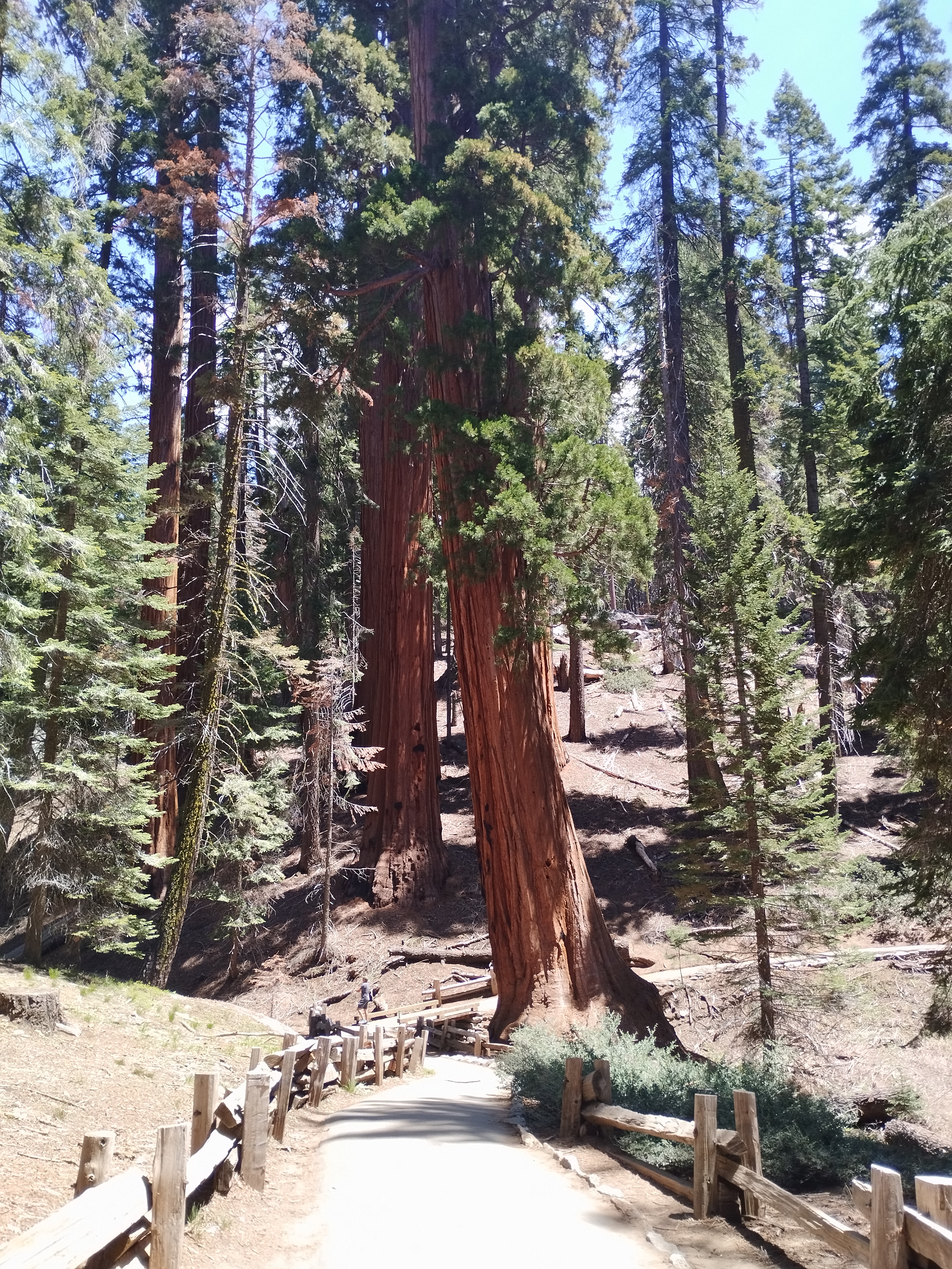 Le lendemain on a repris la route panoramique en sens inverse pour nous diriger vers le parc national Sequoia. On a commencé la journée par une petite randonnée à Buena Vista Peak. Ensuite nous avons fait la fameuse randonnée Sherman Tree et Congress Trail. Elle dure 2h environ. Elle se fait sans difficulté car le sentier est très bien aménagé. On a mangé sur une table de pique-nique avec une pancarte nous disant de surveiller notre nourriture à cause des ours. Je regardais régulièrement derrière moi si un ours allait apparaitre. Les américains semblaient beaucoup plus sereins 😅