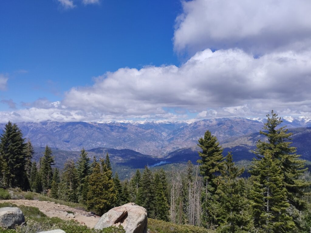 Après 3h de route environ, on arrive à notre premier stop : Grant grove. On pique-nique là, puis on se rend à un point de vue sur les environs. Ensuite, nous poursuivons sur la route panoramique de King Canyon. Splendide !