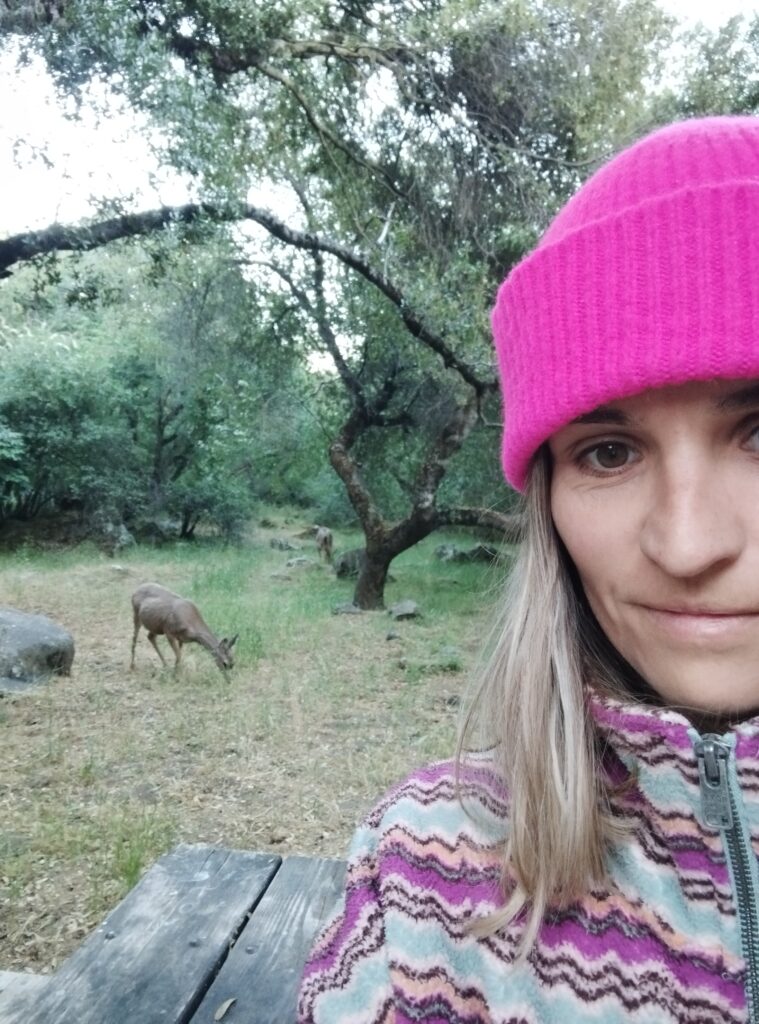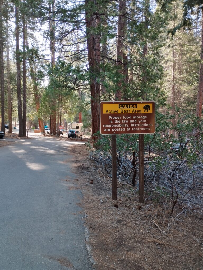 Pour notre dernière nuit avec des ours nous avons campé à Potwisha campground. Ce n’était pas notre camping préféré. Quand nous y étions, il semblait un peu laissé à l’abandon. Le seul truc chouette c’est que des biches sont venues autour de notre tente. C’était chou 🥰