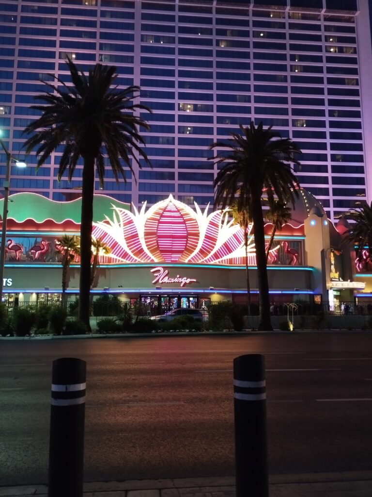 Petite anecdote : nous n’avions pas de douche dans notre camping, on voulait se doucher à la piscine du casino Flamingo. Bien sûr elle n’était pas ouverte quand nous y étions. Lors de la visite du Caesars Palace, on a réussi à se perdre dedans… En cherchant la sortie, on s’est retrouvé au niveau de la piscine. C’est là qu’on a vu qu’il y avait des douches 😁 On a donc décidé d’aller se laver discrètement et gratuitement au Caesars Palace. La classe 😉