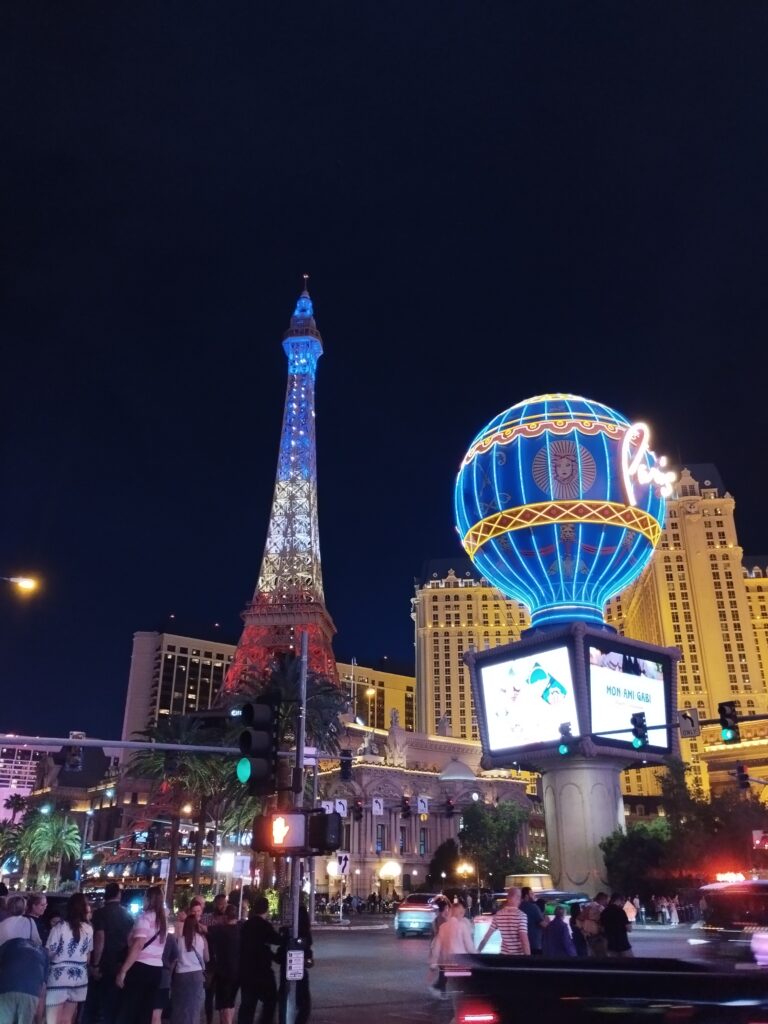 Le soir nous sommes allés visiter la ville de nuit. On s’est garé au parking du casino Treasure Island. Il est gratuit pour les visiteurs. Nous ne sommes vraiment pas fan des jeux d’argent, mais on a quand même joué aux machines à sous dans le casino histoire de justifier notre place de parking. Bien sûr on n’a rien gagné 😆