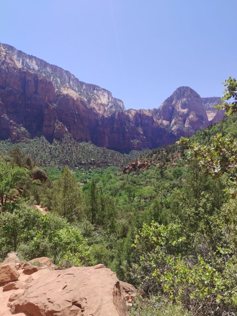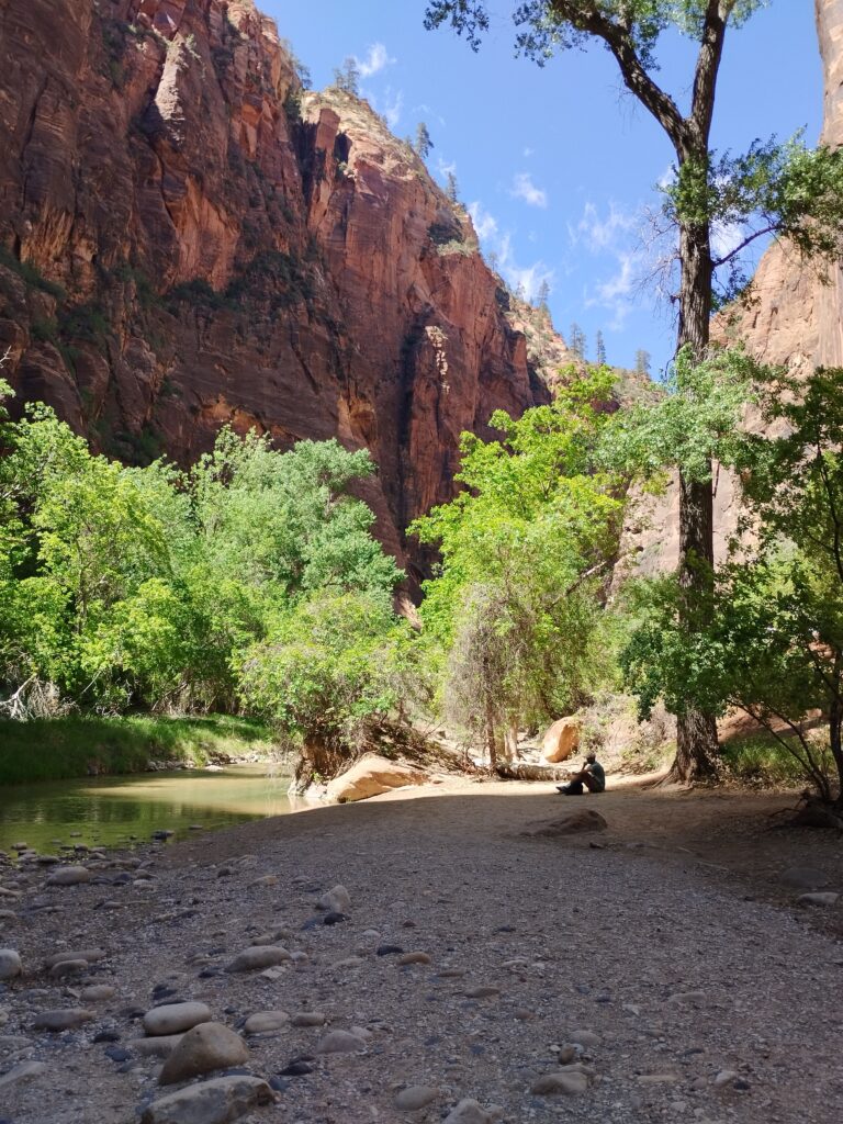 Nous n’avons pas fait la randonnée la plus mythique du parc, Angels Landing. Il faut obtenir un permis et ils conseillent de ne pas avoir le vertige. Ce qui est mon cas… Mais honnêtement je pense que j’aurais pu la faire. On a donc décidé de faire la randonnée Emerald Pools en modifiant un peu le circuit car il y avait beaucoup de monde. On a préféré s’éloigner de la foule.