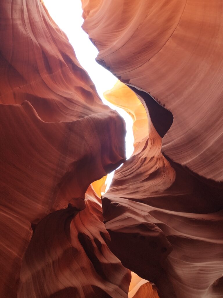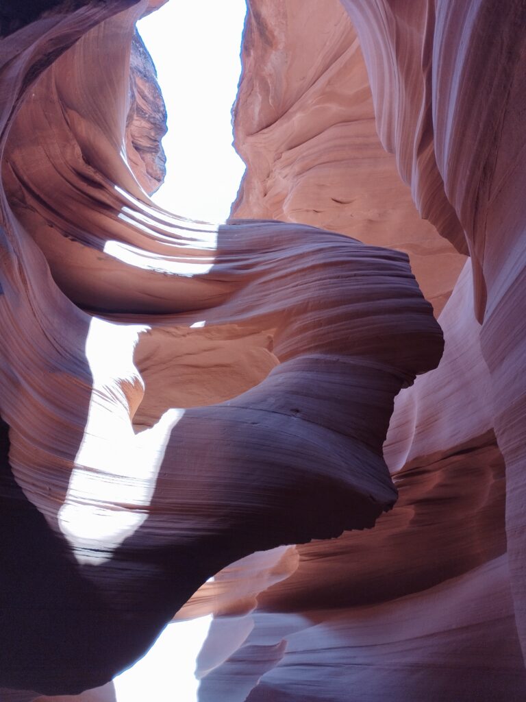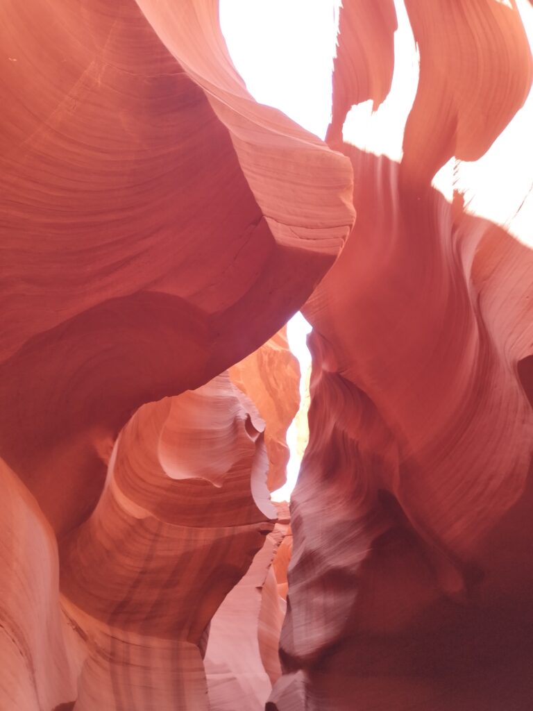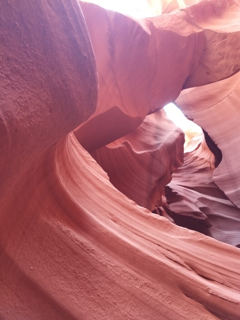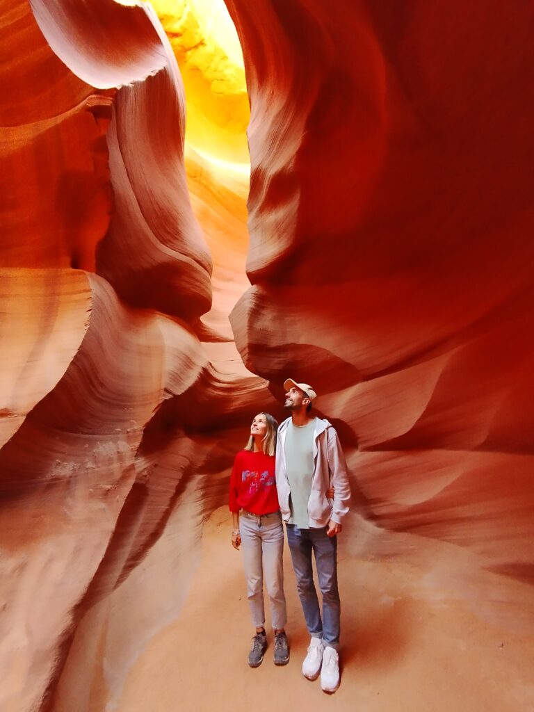 Ca ne devait pas faire partie de notre circuit à la base. Je me suis réveillée assez tôt, Charles dormait encore, comme d’hab ^^ J’allais faire une petite aquarelle mais avant ça j’ai regardé notre guide de voyage. C’est là que j’ai vu qu’Antelope Canyon était casiment sur notre route pour aller au Grand Canyon. J’ai réveillé Charles, on a tout rangé et on est parti pour visiter ce lieu qui est sur une réserve appartenant au Navajo. On a choisi de visiter Lower Antelope Canyon avec Dixie’s Lower Antelope Canyon Tours. Notre guide était super, il nous a raconté l’histoire du lieu, nous a partagé plein d’anecdotes et nous a pris en photo comme un professionnel 😉 C’est assez cher mais on ne regrette pas notre achat. Le lieux est vraiment magnifique, et malgré le nombre de visiteurs, c’était hyper paisible.