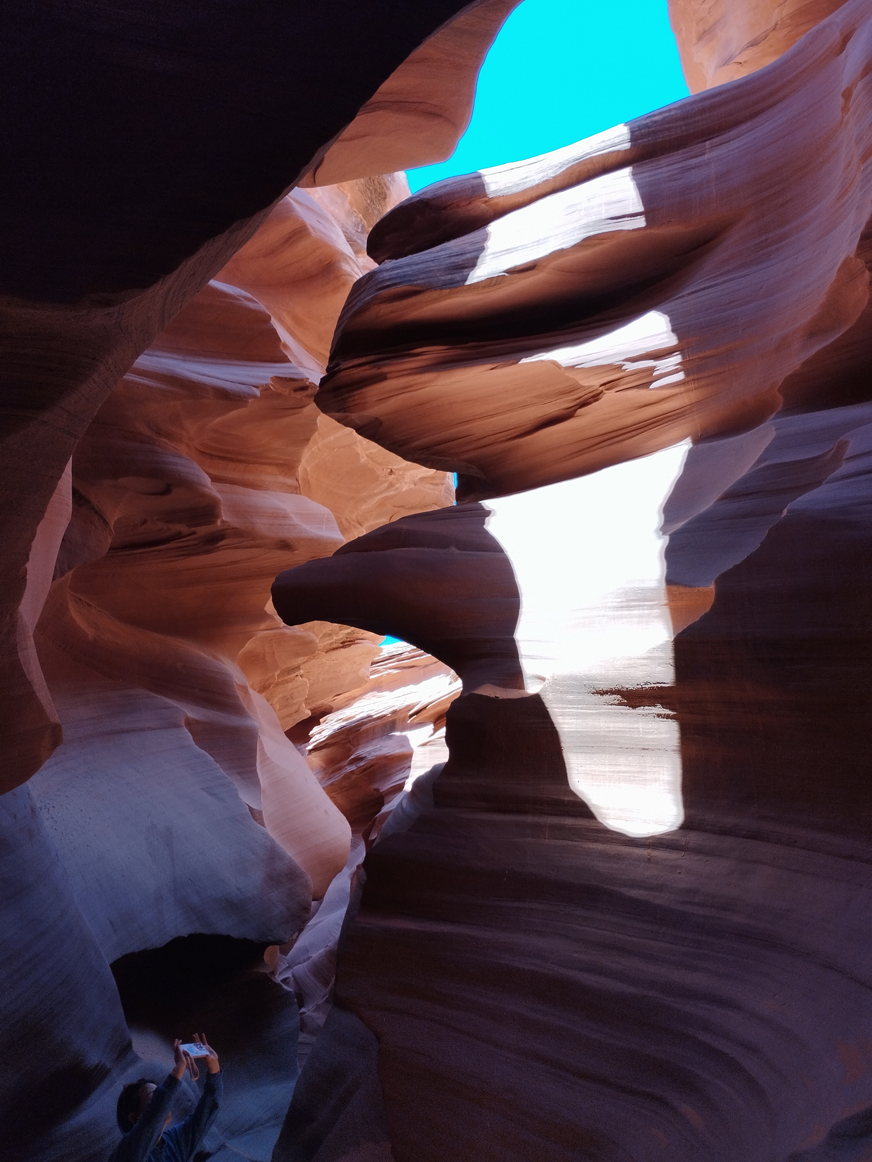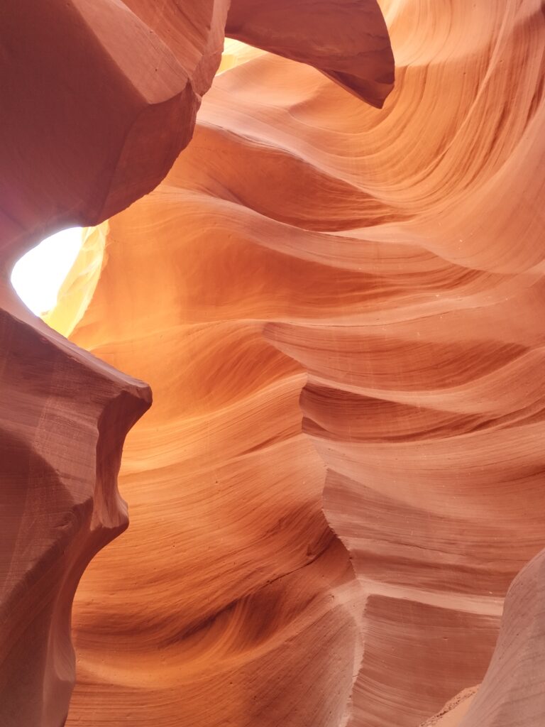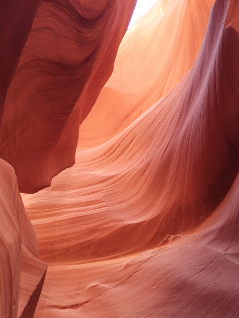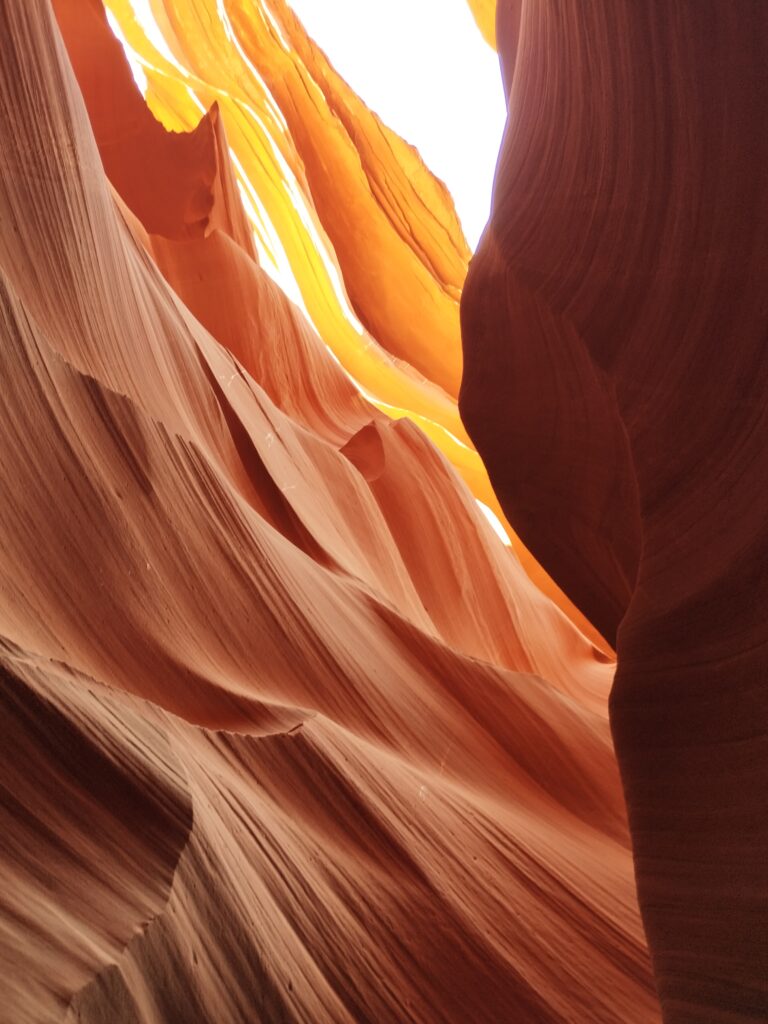 Ca ne devait pas faire partie de notre circuit à la base. Je me suis réveillée assez tôt, Charles dormait encore, comme d’hab ^^ J’allais faire une petite aquarelle mais avant ça j’ai regardé notre guide de voyage. C’est là que j’ai vu qu’Antelope Canyon était casiment sur notre route pour aller au Grand Canyon. J’ai réveillé Charles, on a tout rangé et on est parti pour visiter ce lieu qui est sur une réserve appartenant au Navajo. On a choisi de visiter Lower Antelope Canyon avec Dixie’s Lower Antelope Canyon Tours. Notre guide était super, il nous a raconté l’histoire du lieu, nous a partagé plein d’anecdotes et nous a pris en photo comme un professionnel 😉 C’est assez cher mais on ne regrette pas notre achat. Le lieux est vraiment magnifique, et malgré le nombre de visiteurs, c’était hyper paisible.