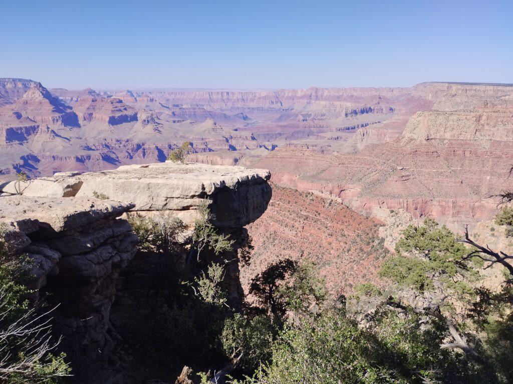 Nous sommes entrés dans le parc en début d’après-midi. Nous nous sommes arrêtés aux points de vue avant de rejoindre le camping. Desert View Watchtower, Moran Point et Grandview Point.