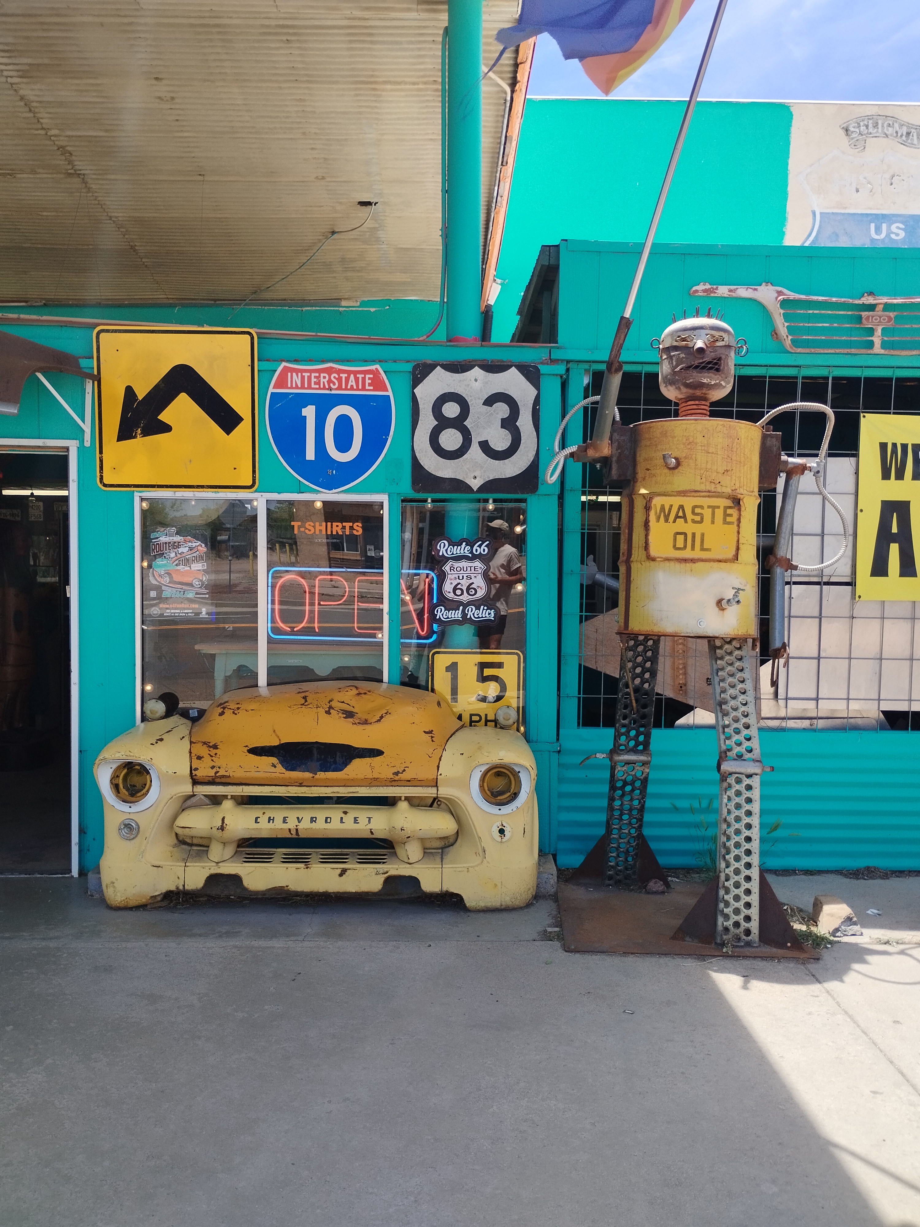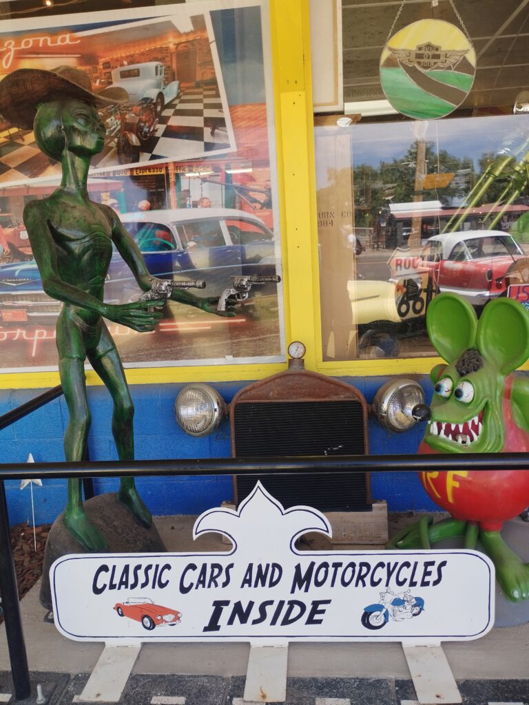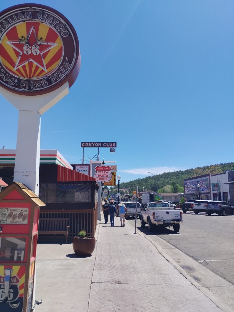 Nous avons roulé sur une partie de la route 66 avant de nous rendre à Joshua Tree. Nous nous sommes arrêtés à Williams et Seligman. C’est super sympa de se balader dans le décor du dessin animé Cars 😉