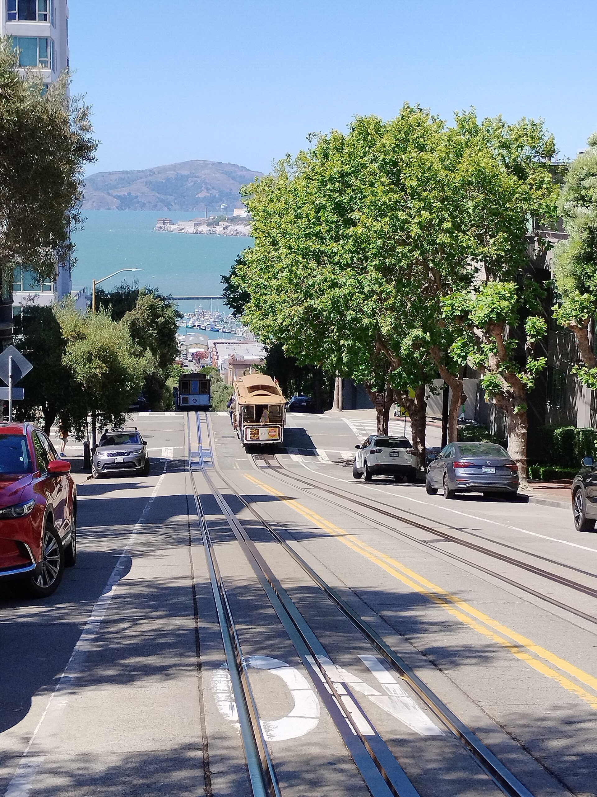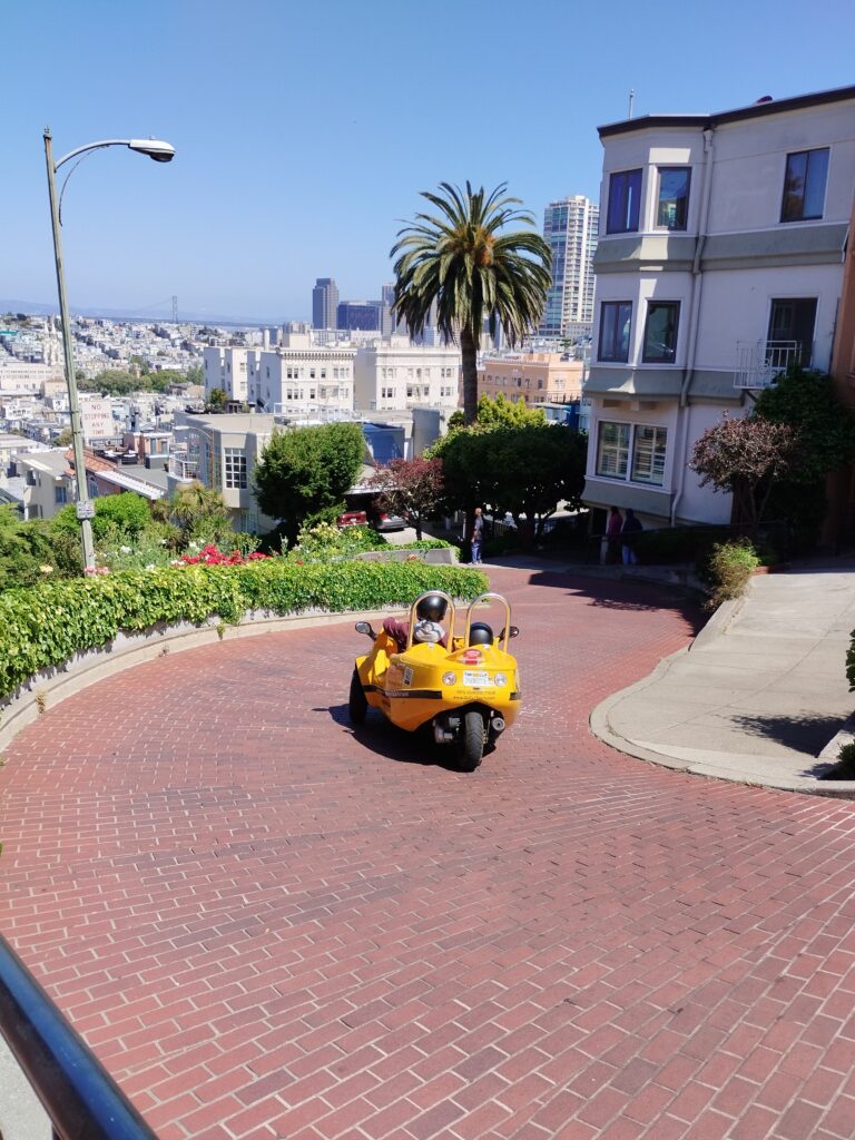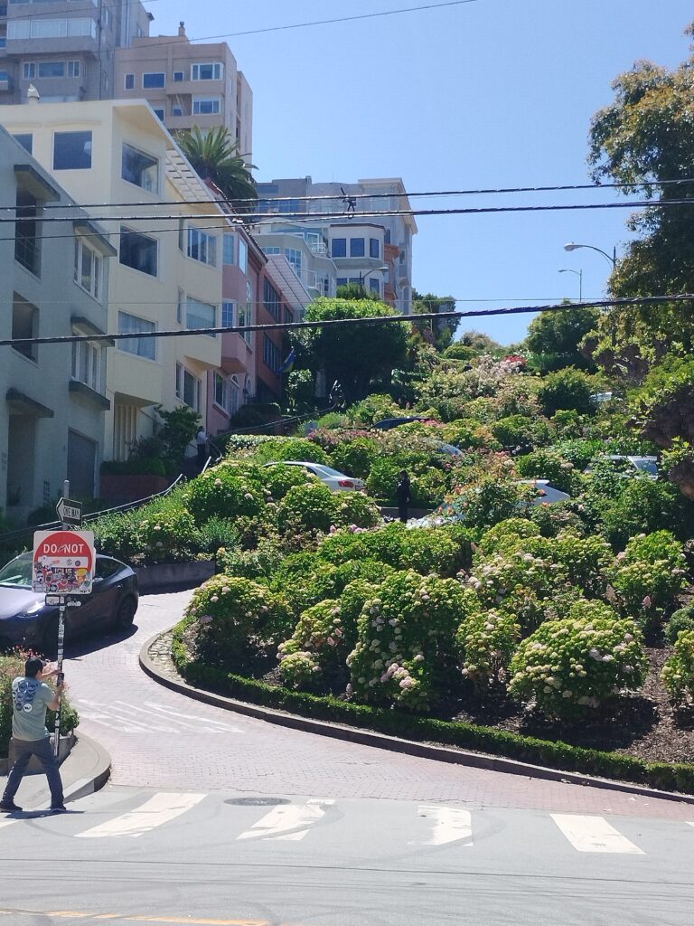 A la fin de notre séjour nous avons pu découvrir Union Square avec son cable car à l’intersection de Union street et Powell street. On a rejoint Lombard Street, la rue la plus sinueuse du monde !