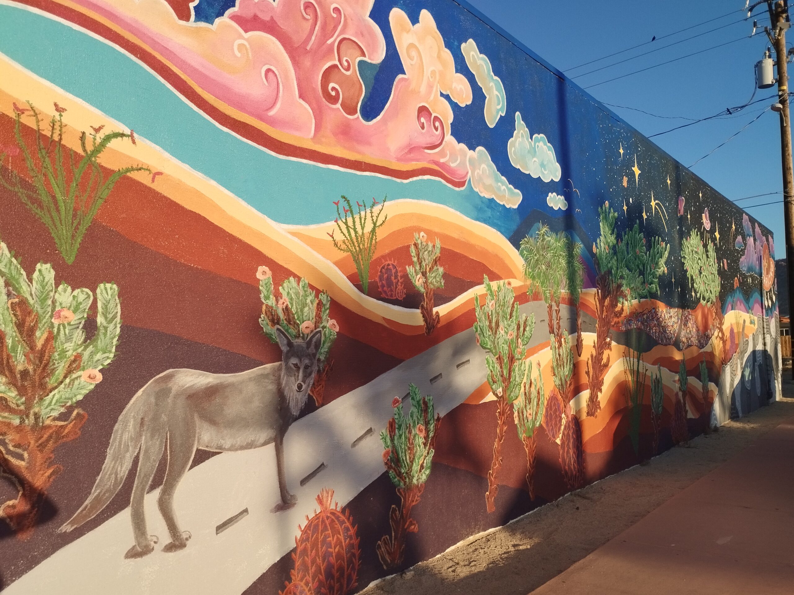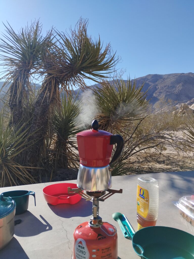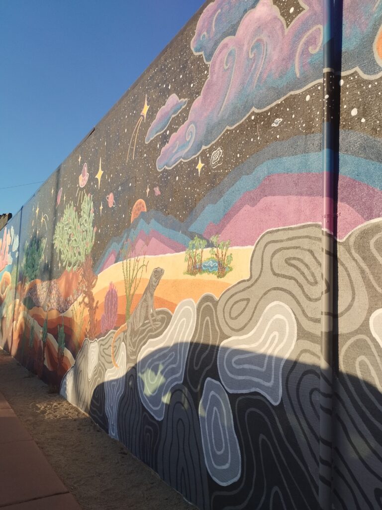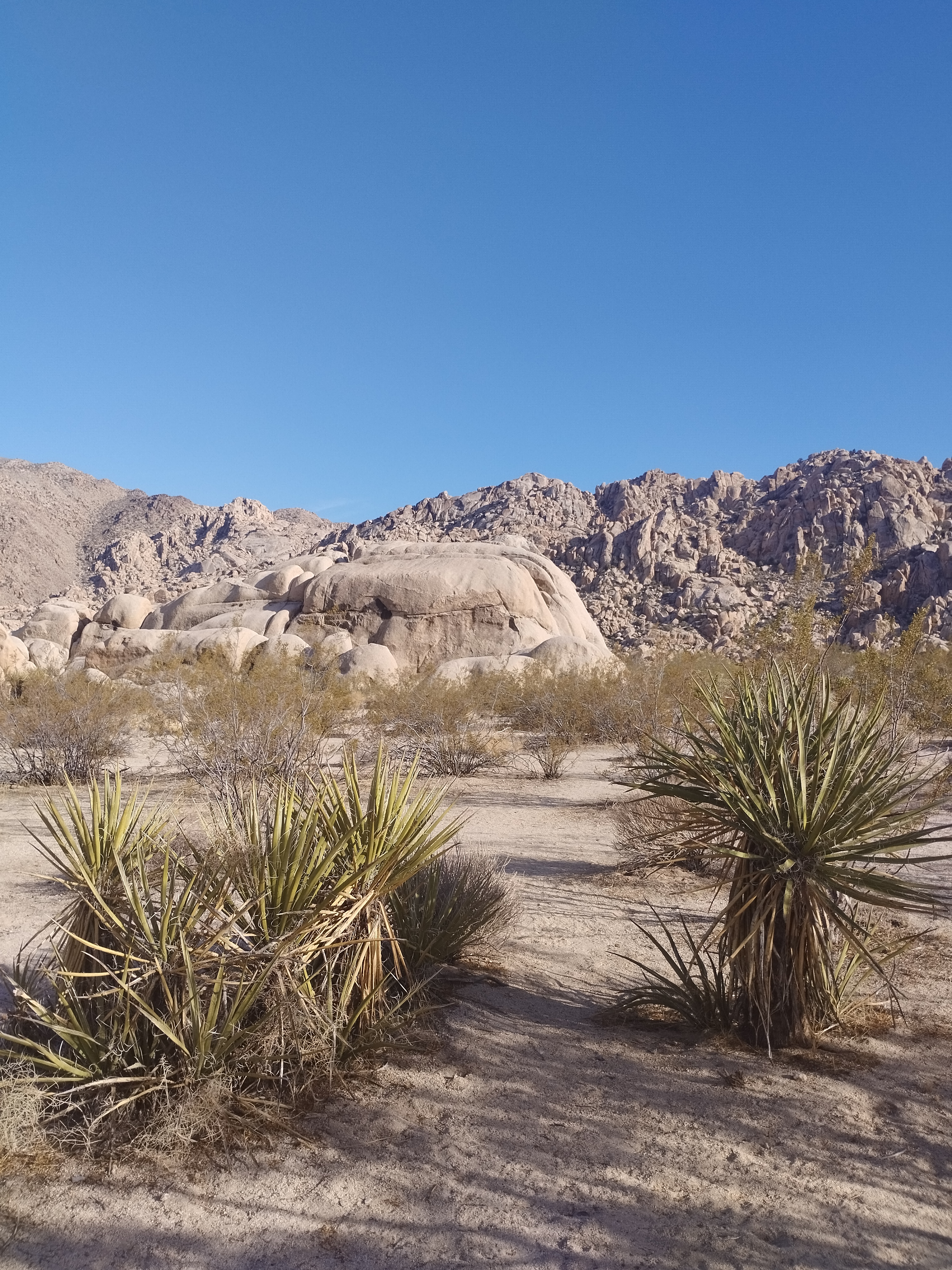 Nous arrivons à Joshua Tree en fin d’après-midi et installons notre tente au camping Indian Cove situé dans le parc national. La ville Twentynine Palms, se trouvant juste à côté, regorge de fresques magnifiques. Nous vous recommandons le restaurant Grnd Sqrl. On y mange bien et la déco est hyper originale (surtout dans les toilettes).