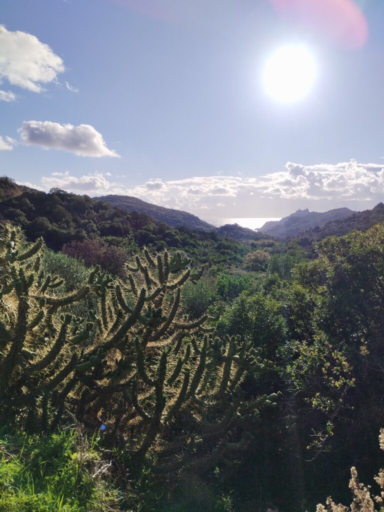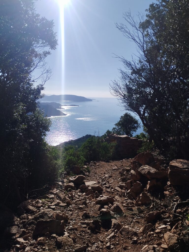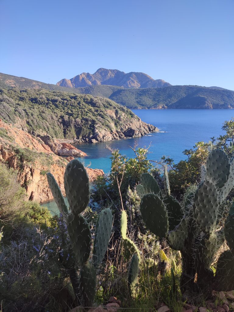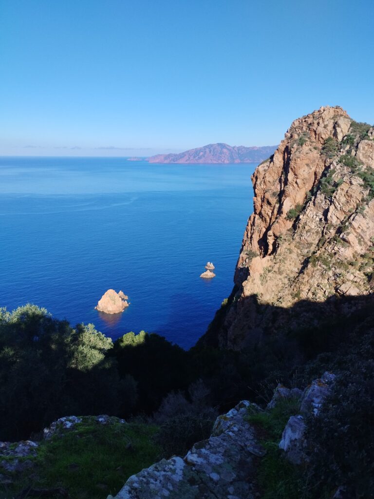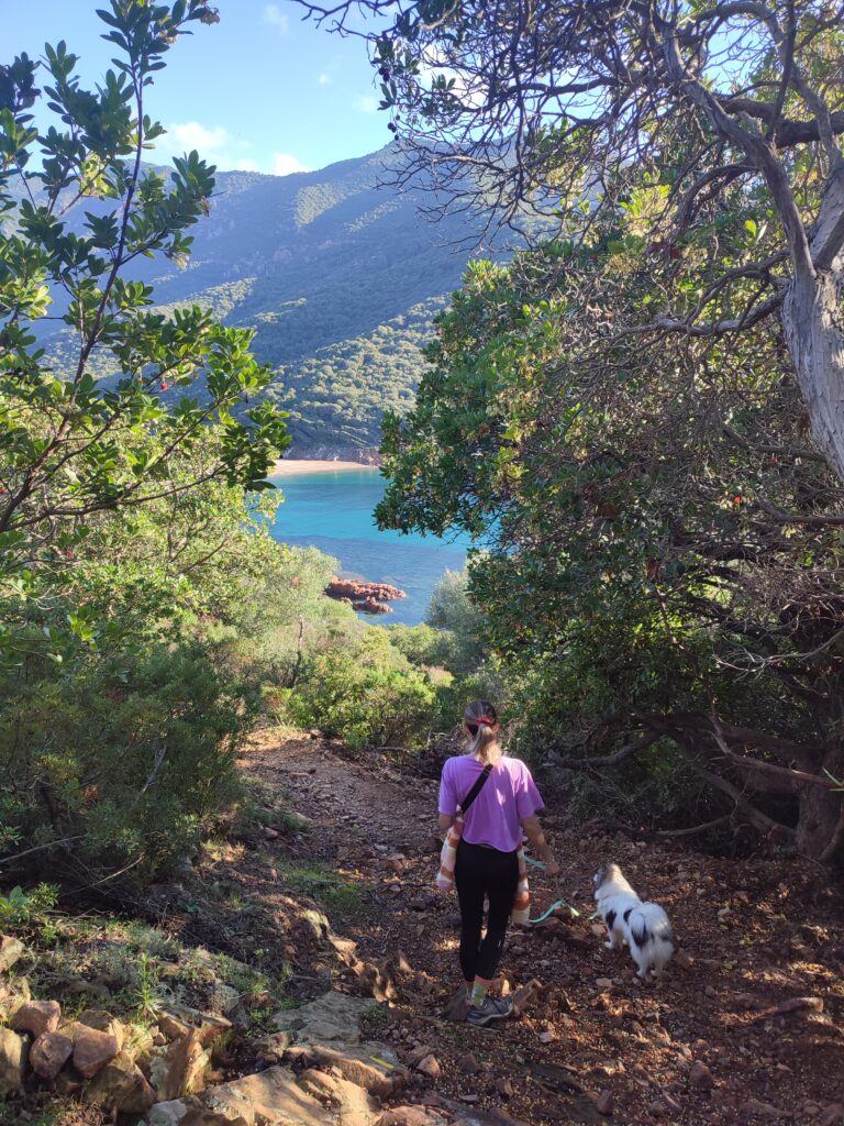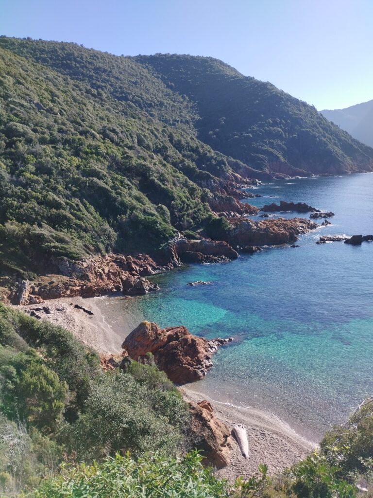 Nous avons fait la randonnée du sentier du facteur jusqu’à Girolata. C’est un coin magnifique accessible uniquement à pied ou en bateau. Si vous regardez le tracé avec visorando, la fin n’est pas très bien indiquée. Mais il y a bien un chemin pour descendre jusqu’à la plage. Pour la petite histoire, apparemment, il y a longtemps le facteur empruntait vraiment ce chemin tous les jours pour livrer le courrier. Il devait être vraiment très sportif !