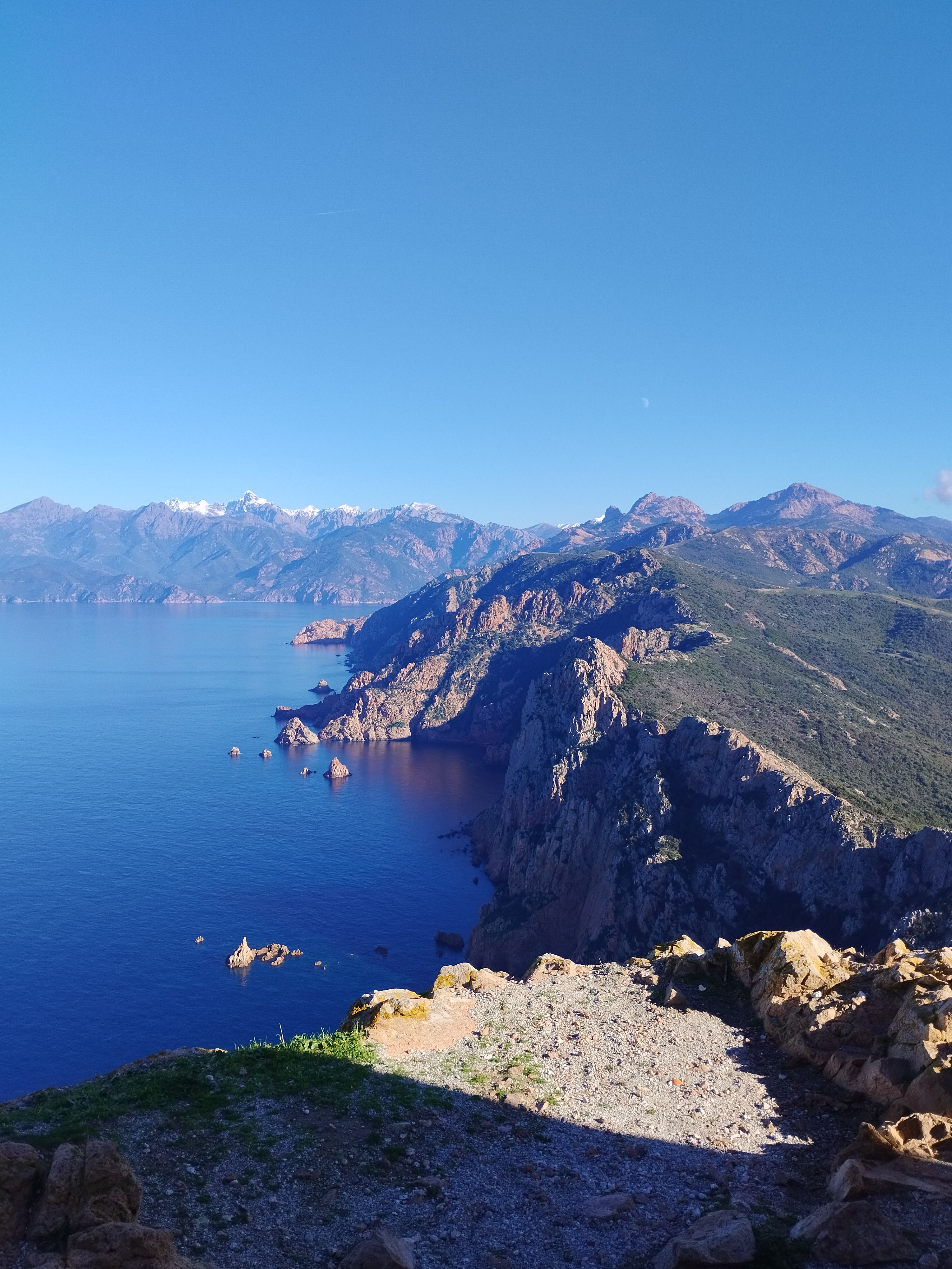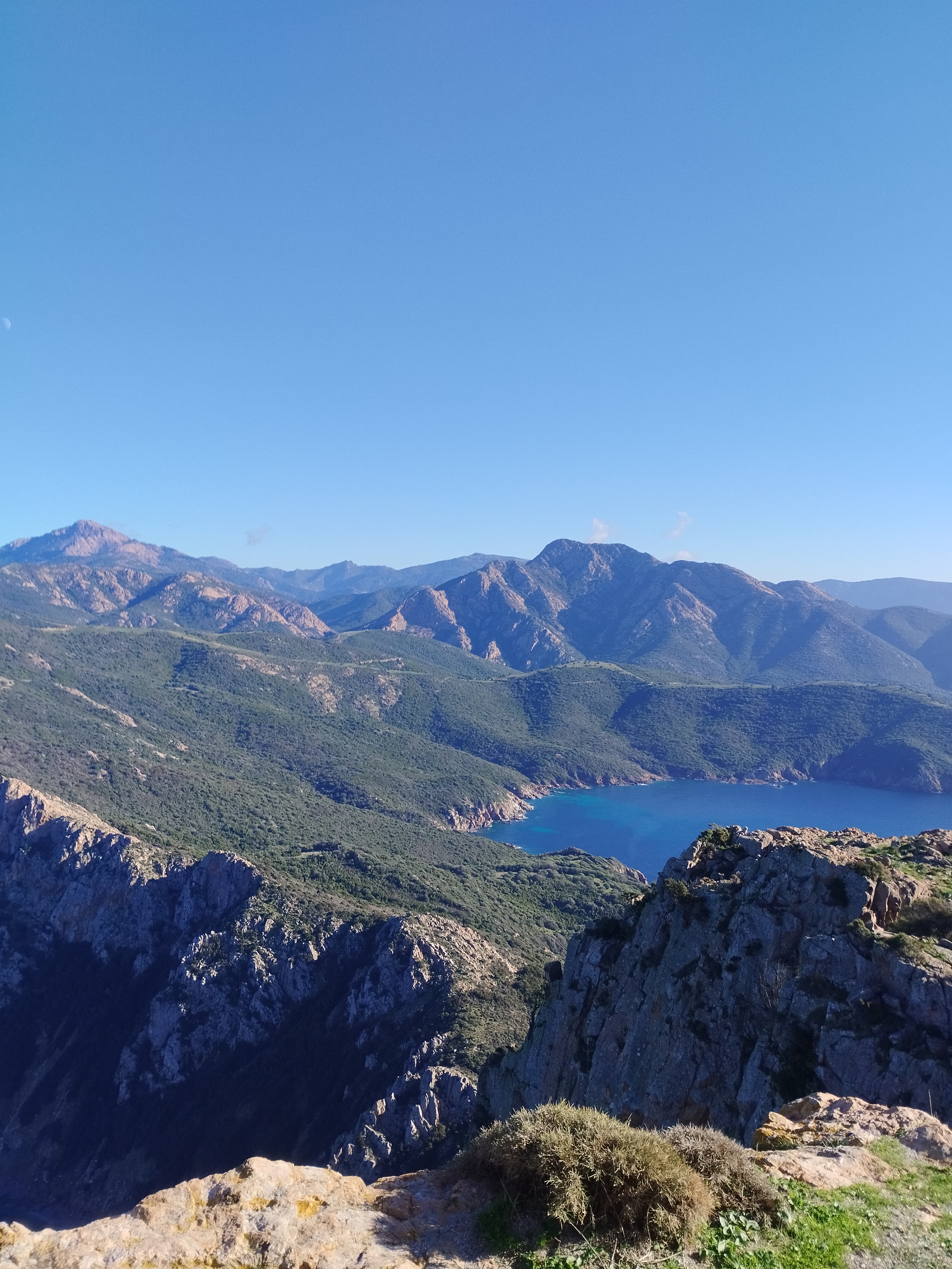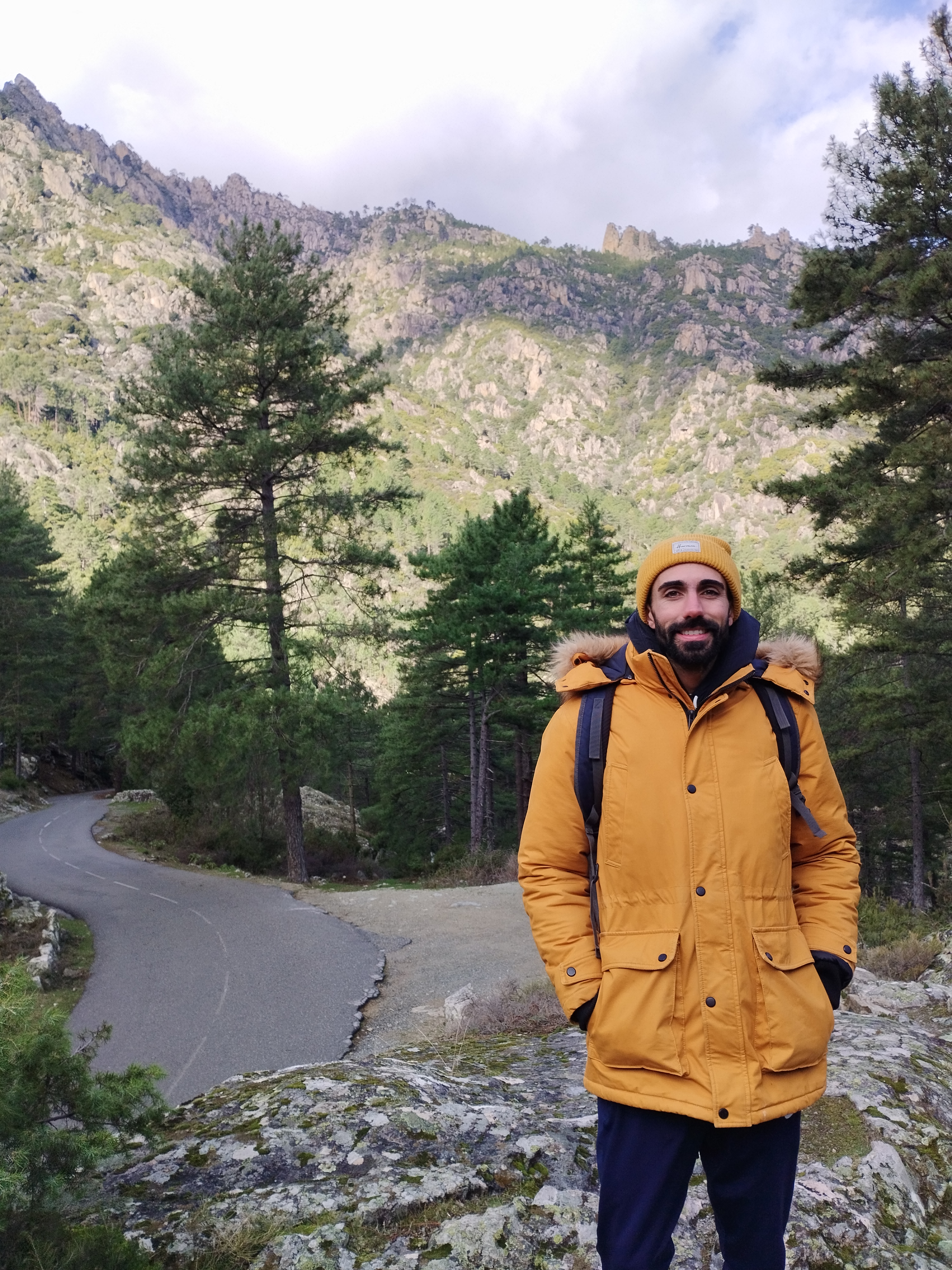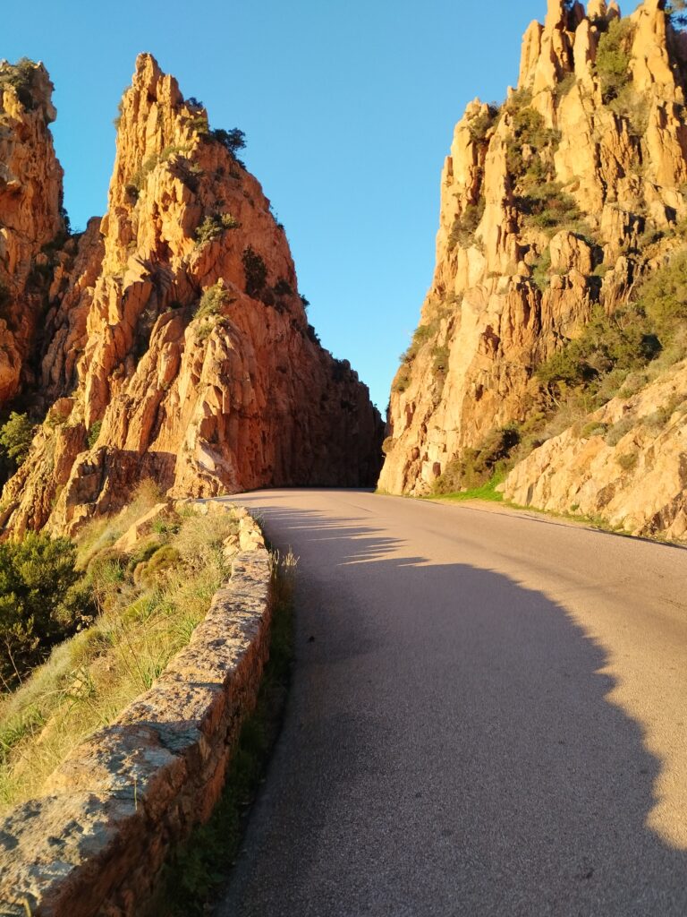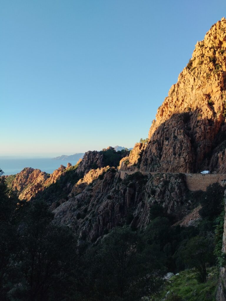 En fin d’après-midi on explore la route des calanques de Piana à pied avec le soleil qui est en train de se coucher. La route est vraiment magnifique ! On a de la chance d’être en hiver et quasiment seuls au monde 😍