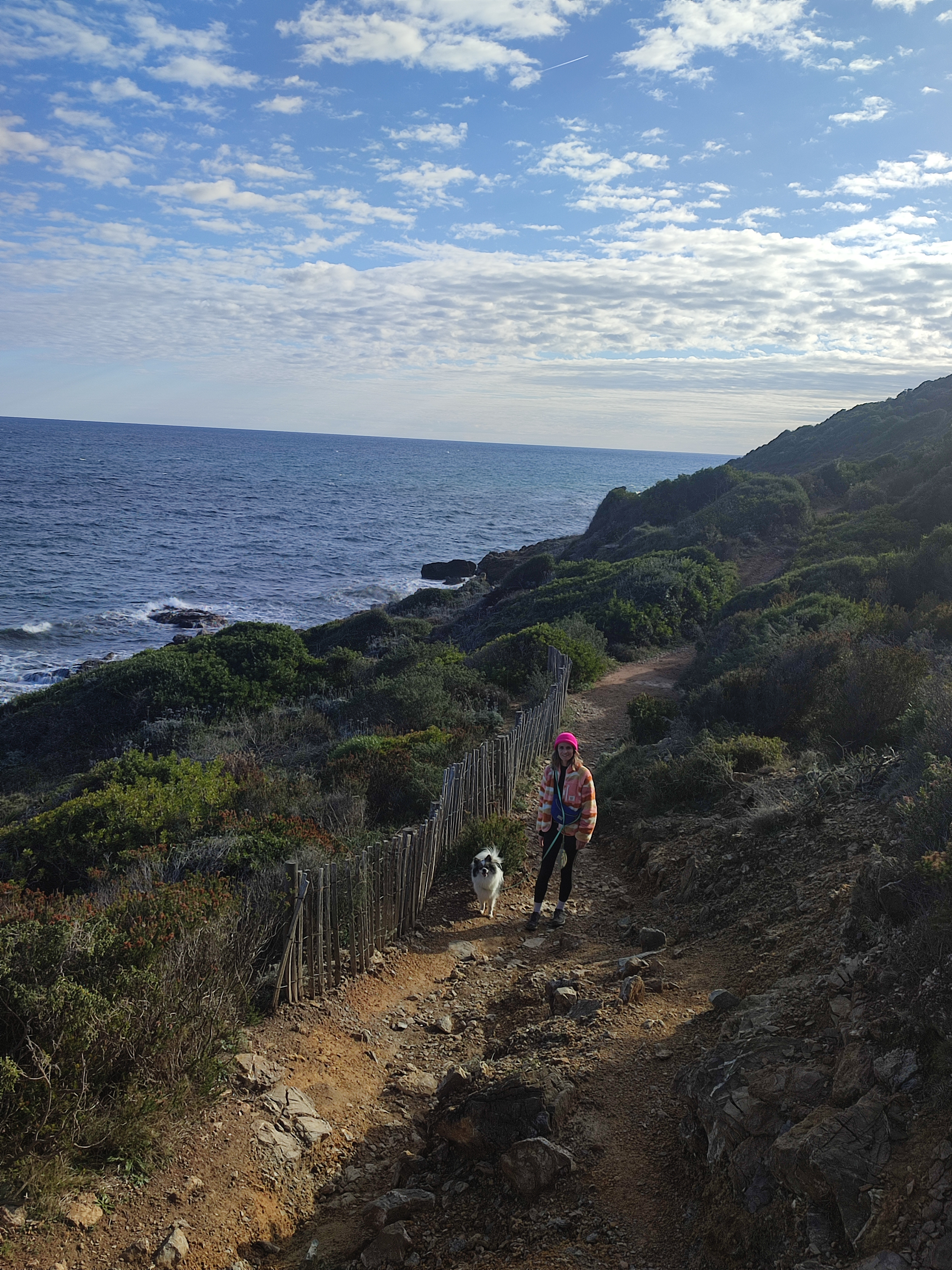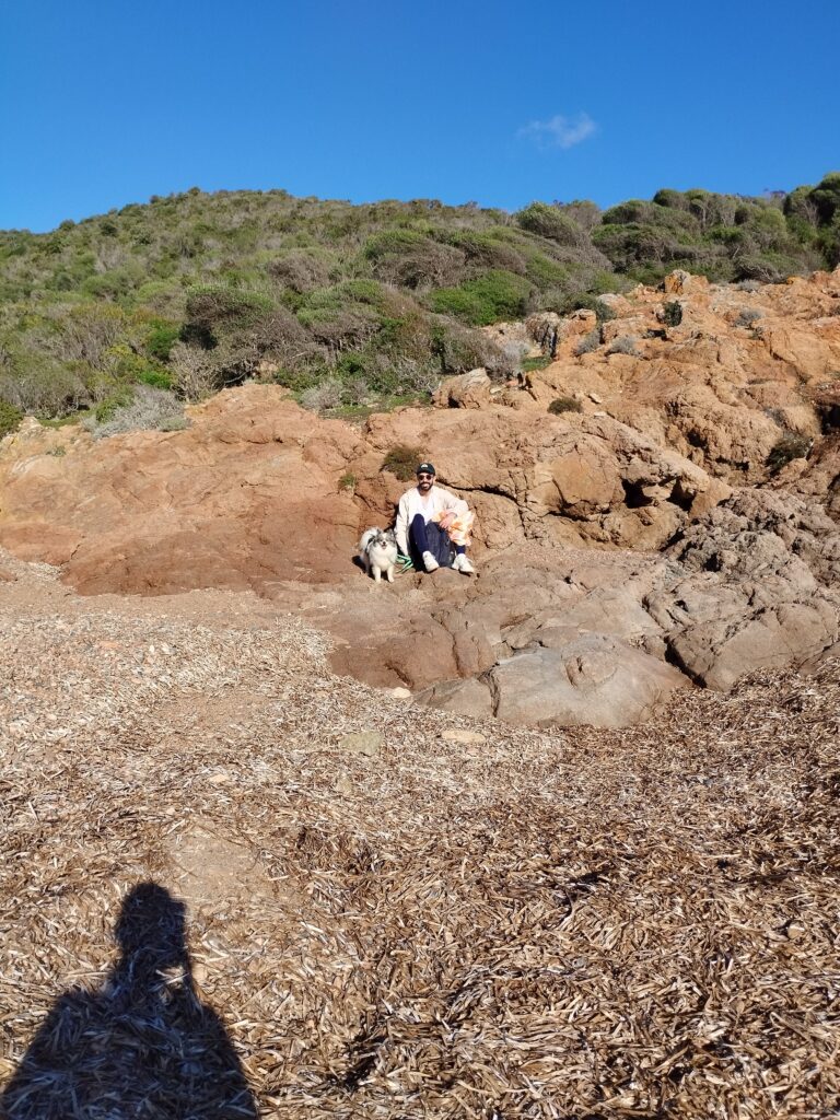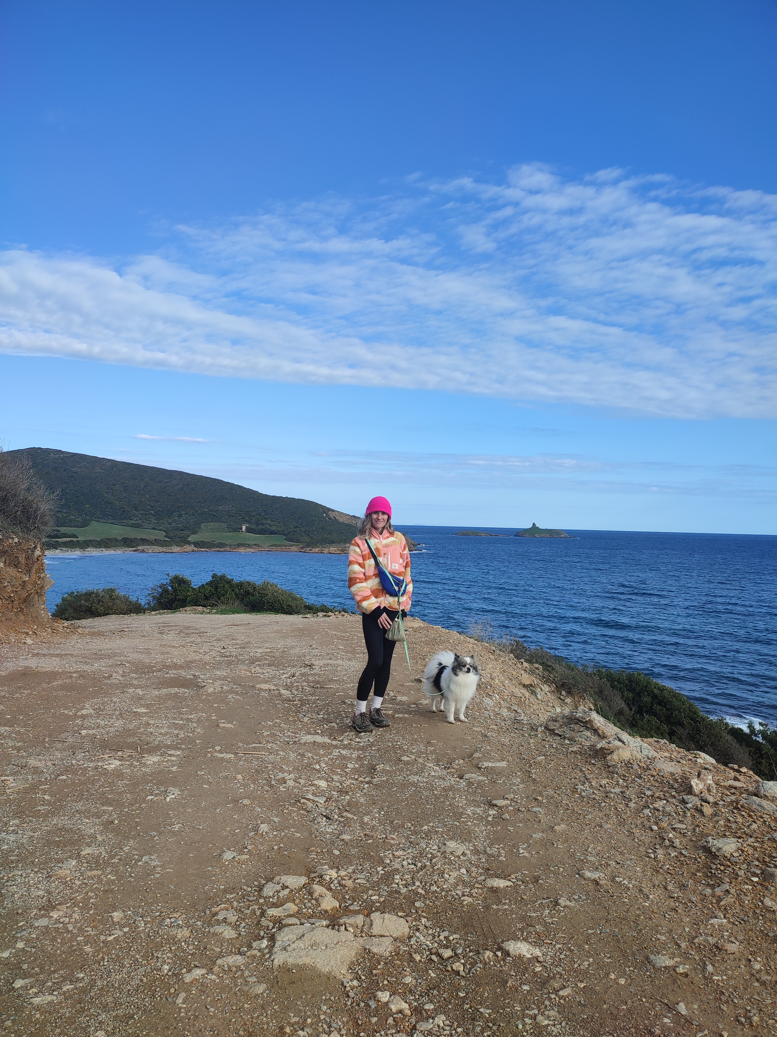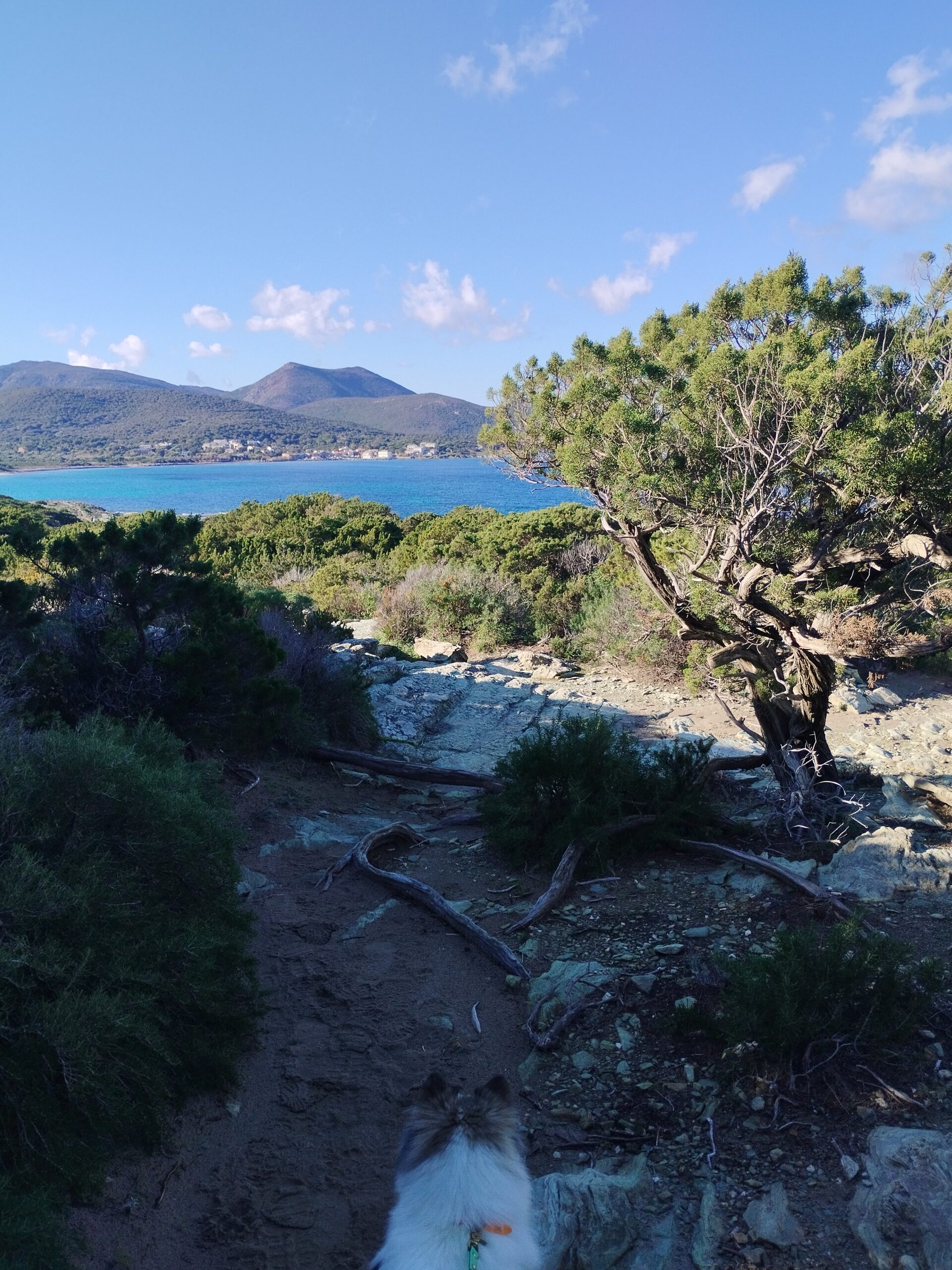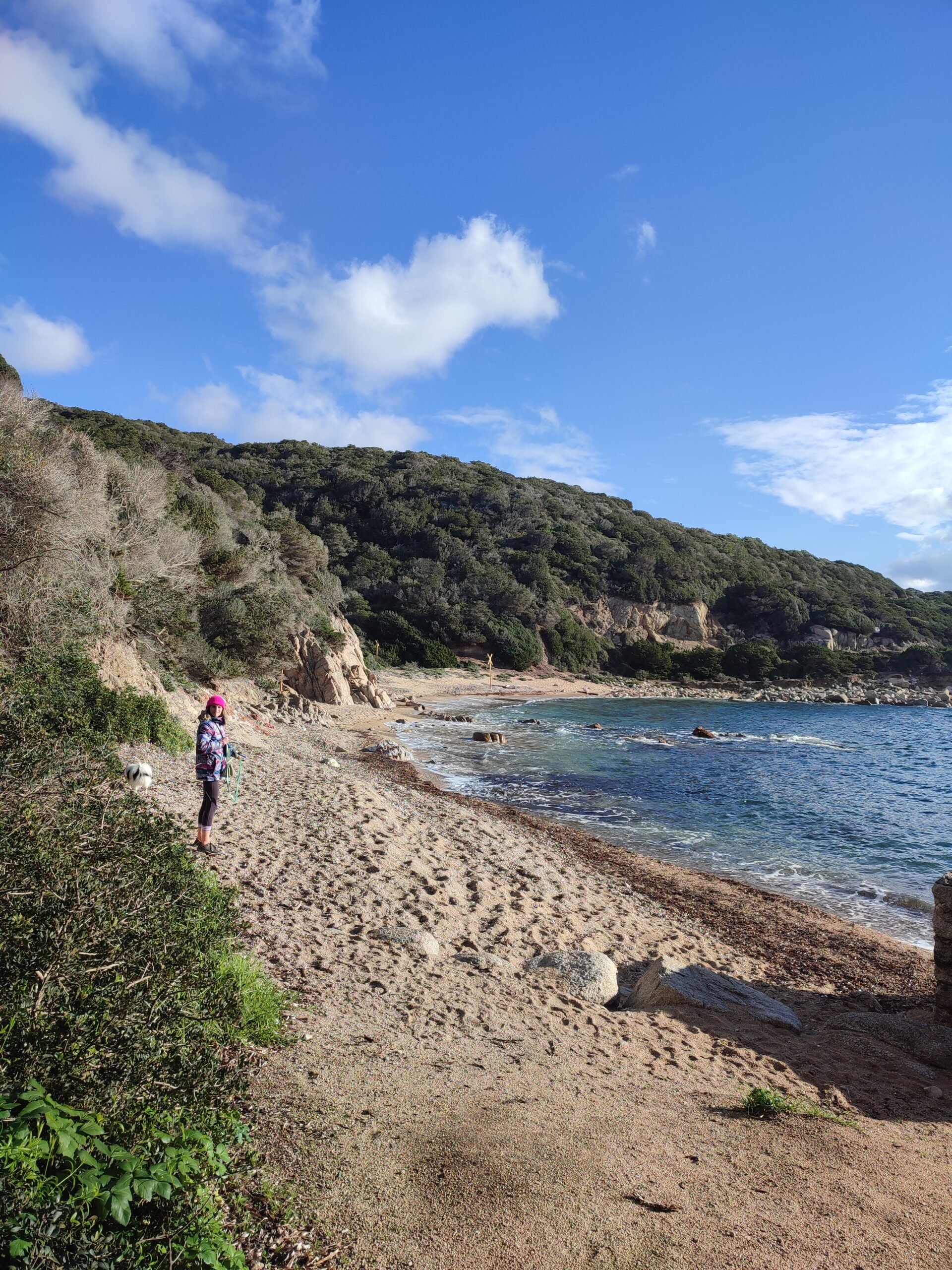 Le lendemain matin, pour le premier jour de l’année 2026, on décide de se balader sur le sentier des douaniers mais en partant de Barcaggio. C’était très agréable parce qu’il n’y avait pas du tout de vent. Touity était content, il a pu courir sur la plage 😍