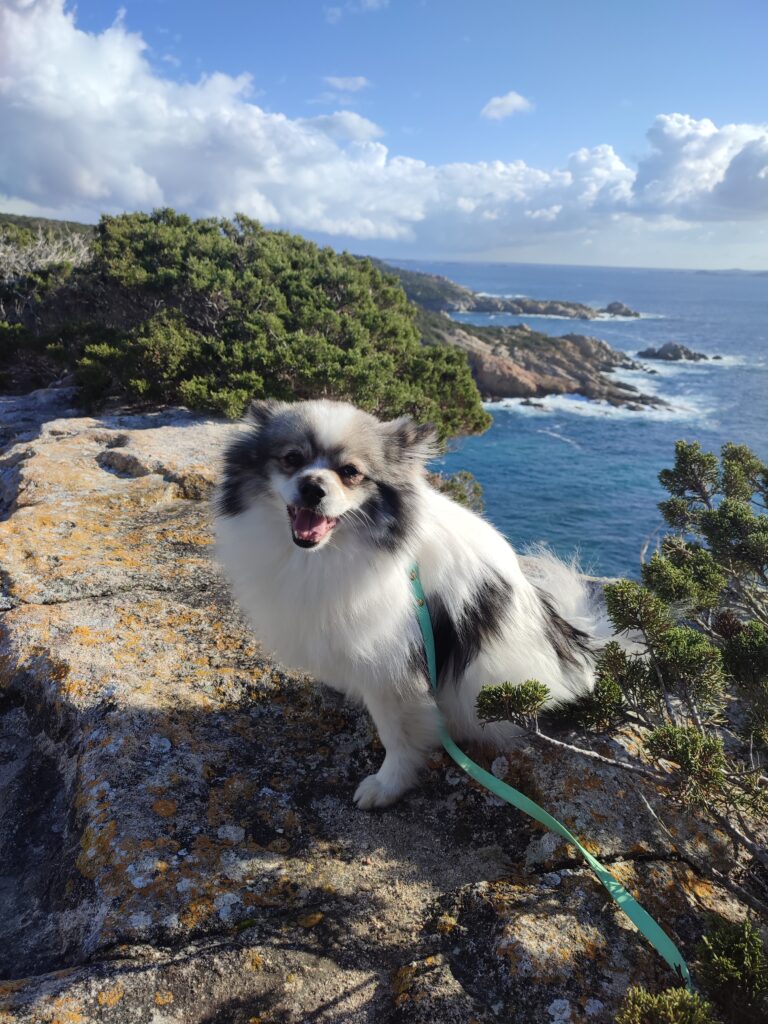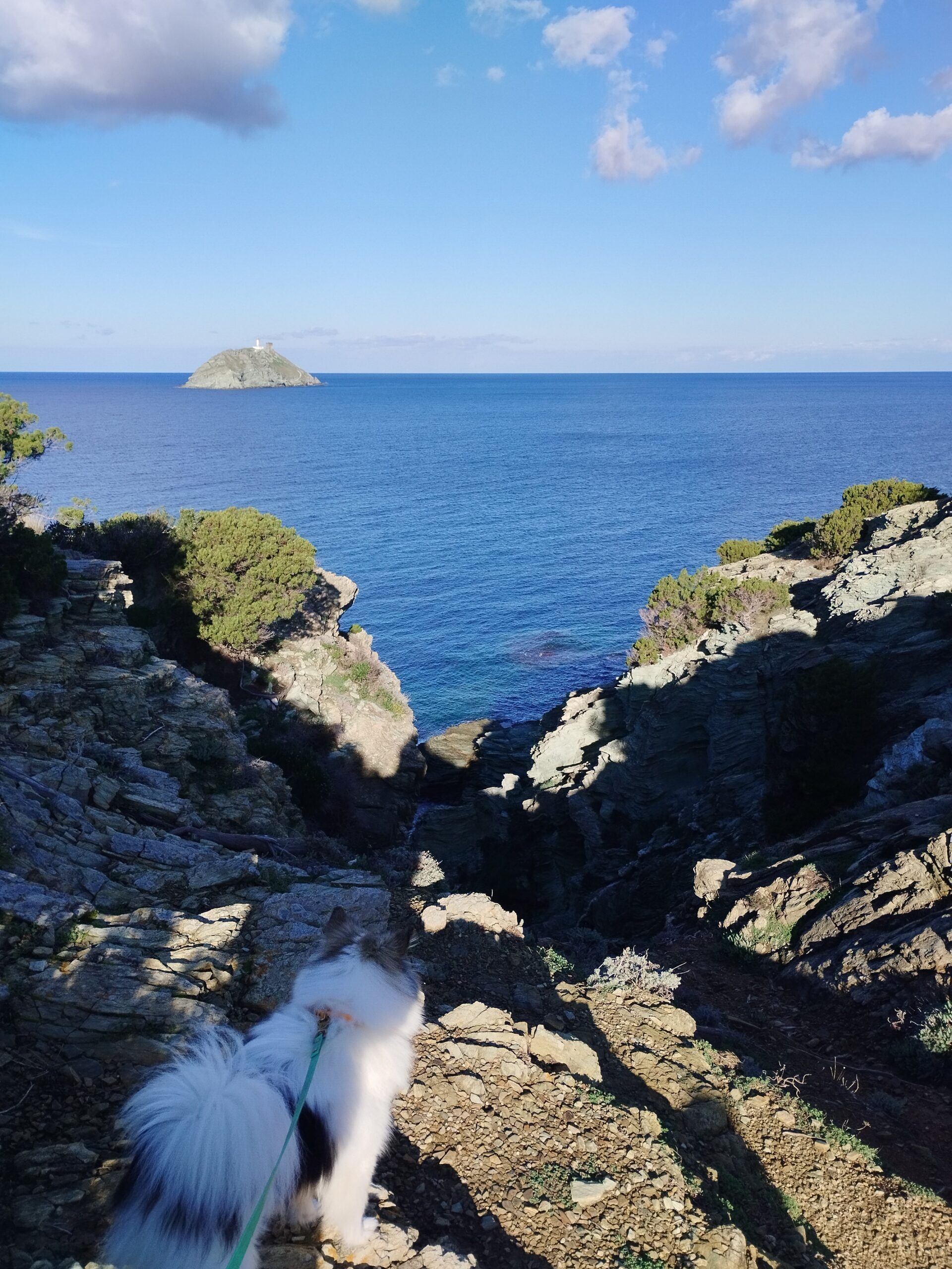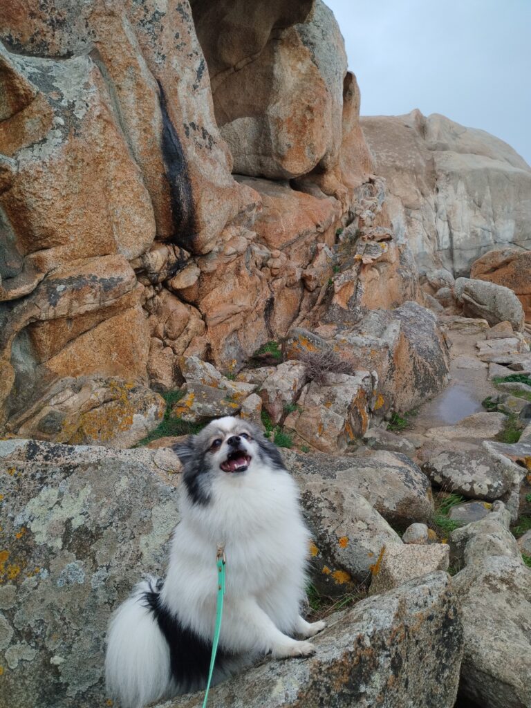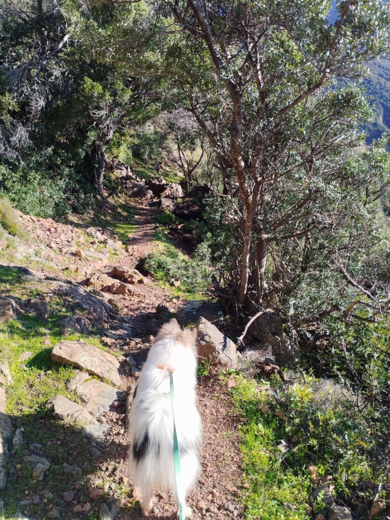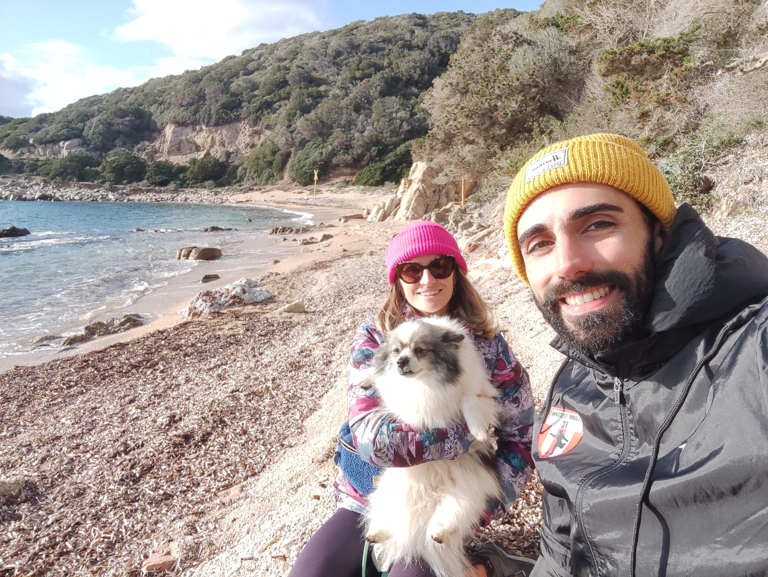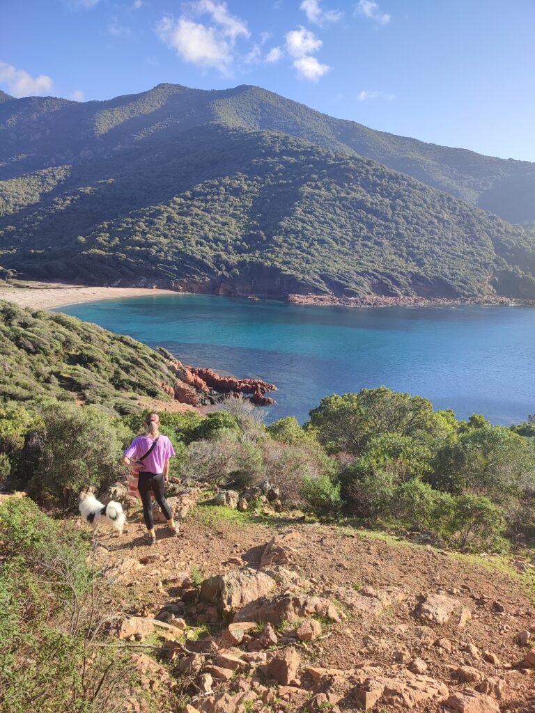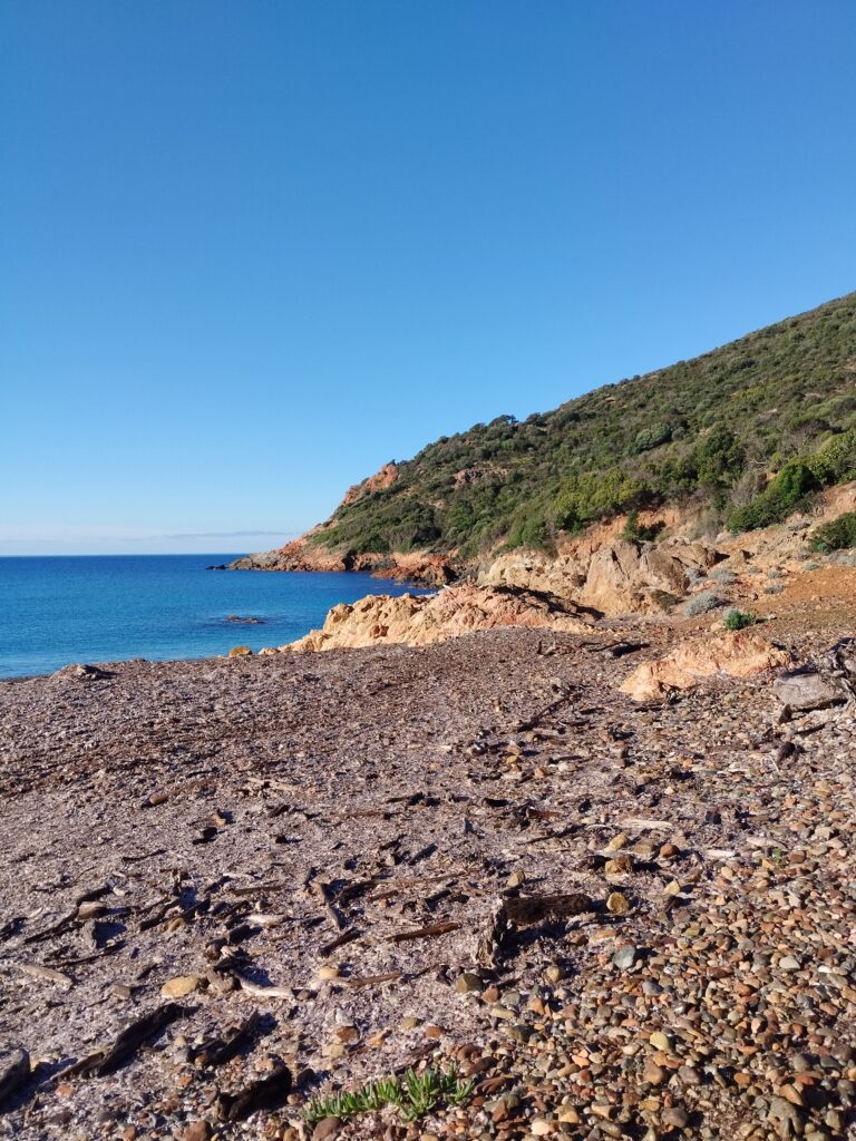 Le lendemain matin, pour le premier jour de l’année 2026, on décide de se balader sur le sentier des douaniers mais en partant de Barcaggio. C’était très agréable parce qu’il n’y avait pas du tout de vent. Touity était content, il a pu courir sur la plage 😍