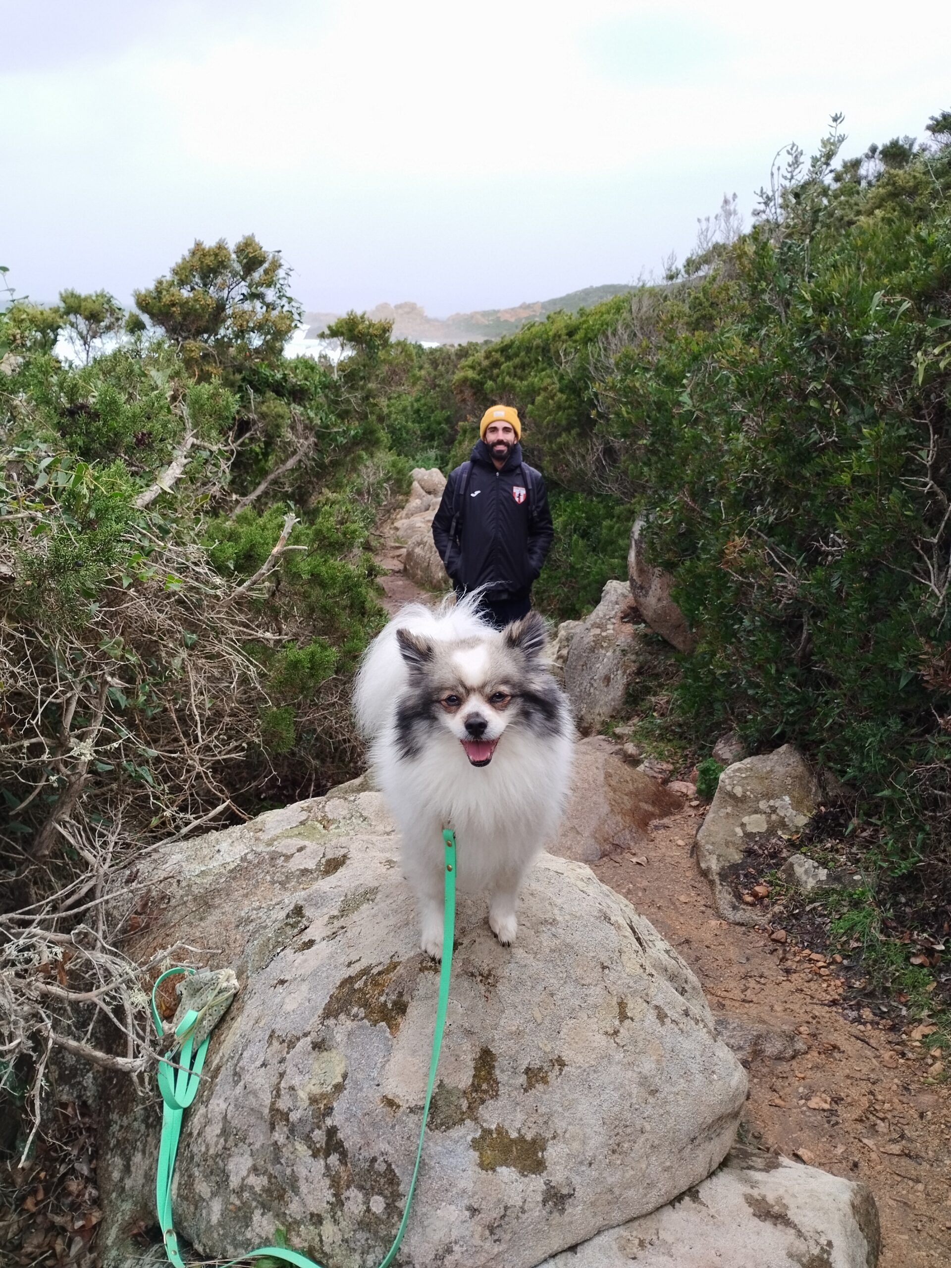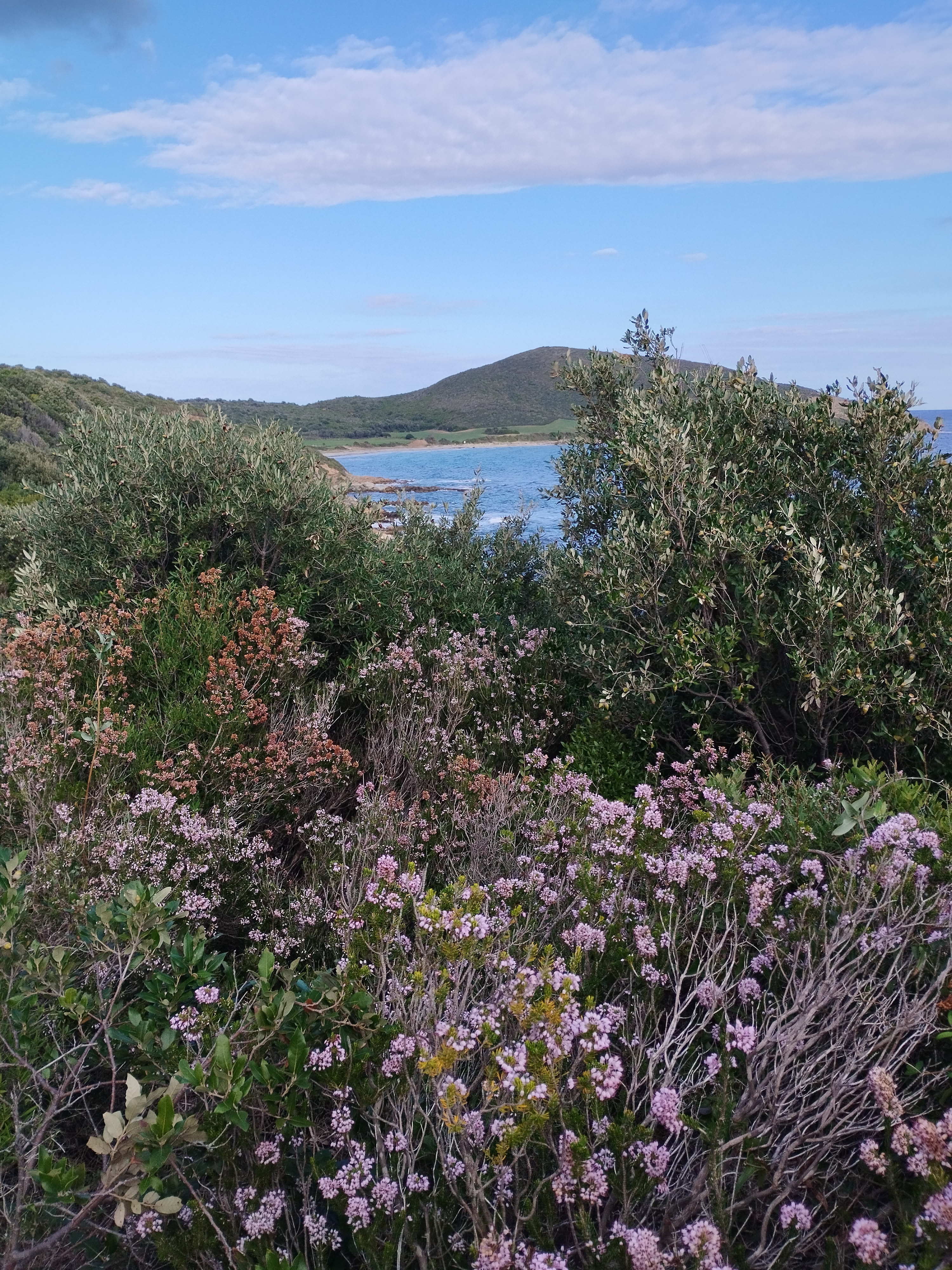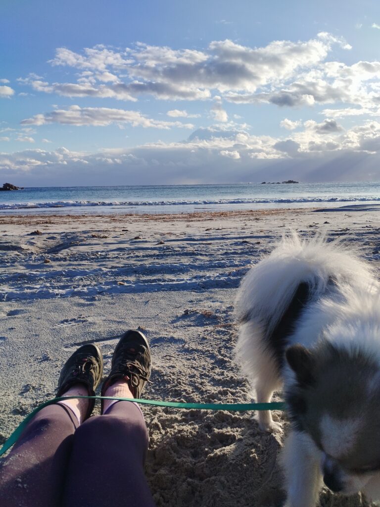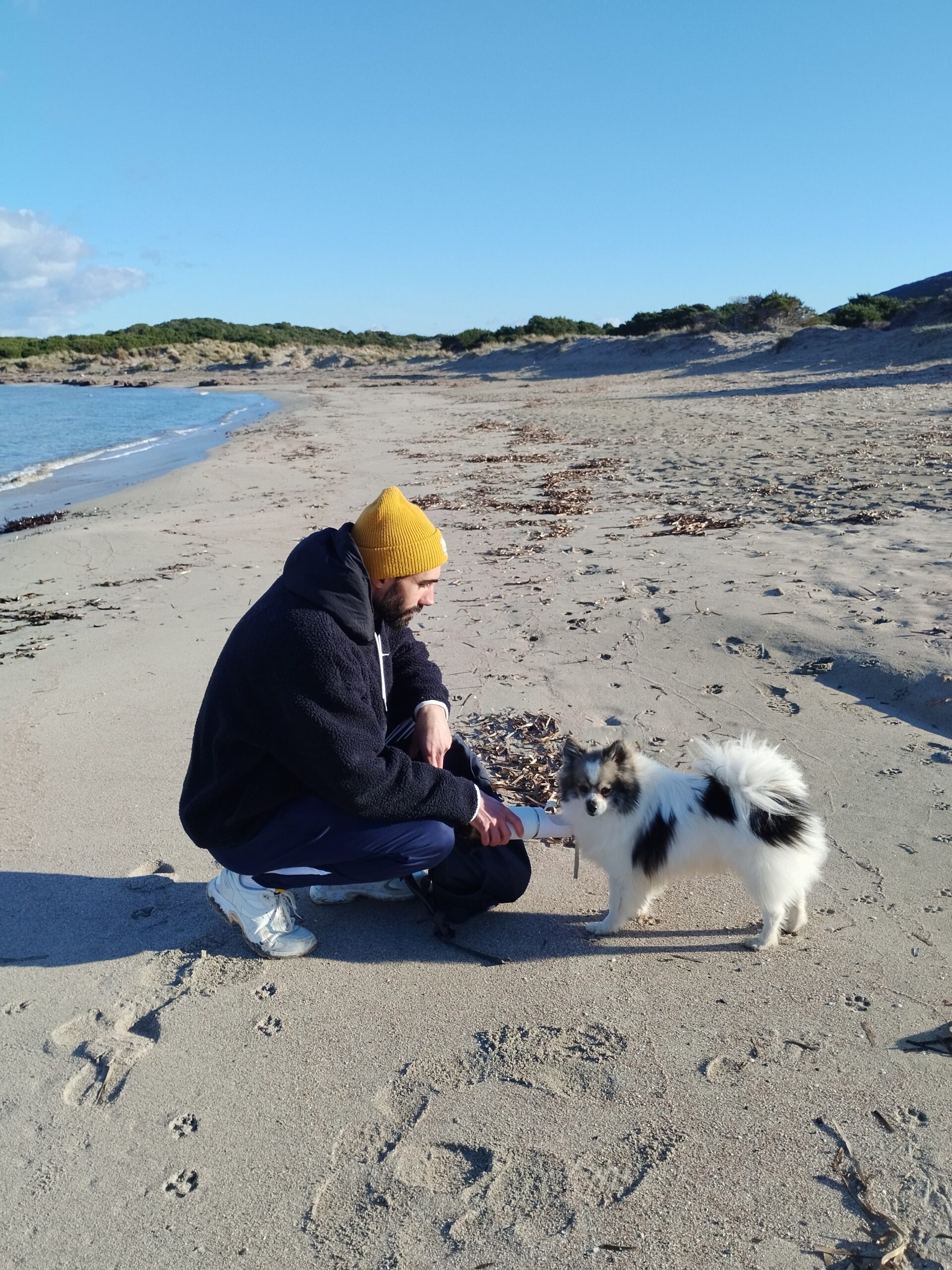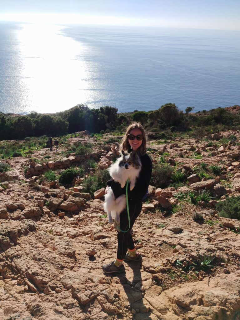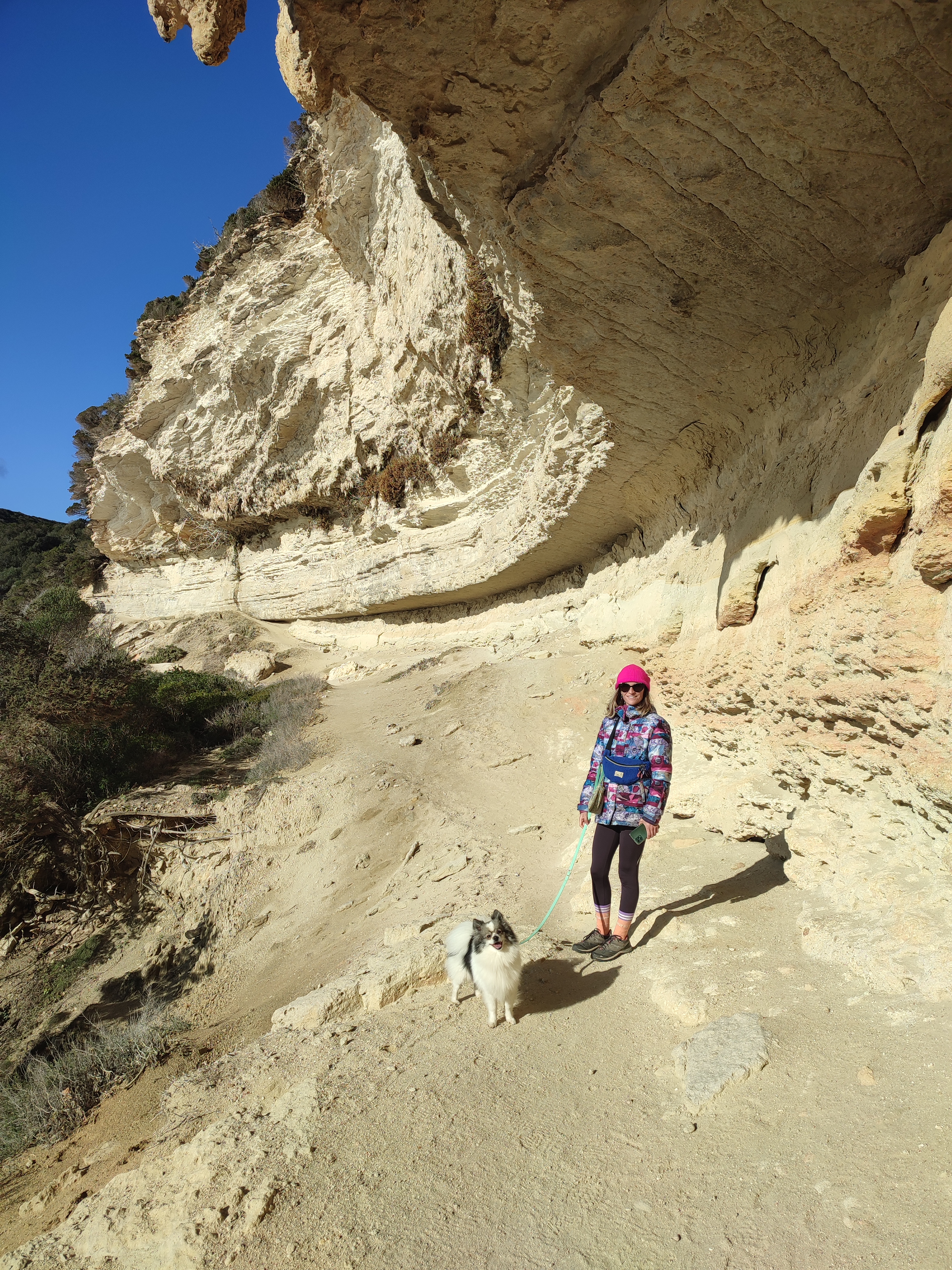 Le lendemain matin, pour le premier jour de l’année 2026, on décide de se balader sur le sentier des douaniers mais en partant de Barcaggio. C’était très agréable parce qu’il n’y avait pas du tout de vent. Touity était content, il a pu courir sur la plage 😍