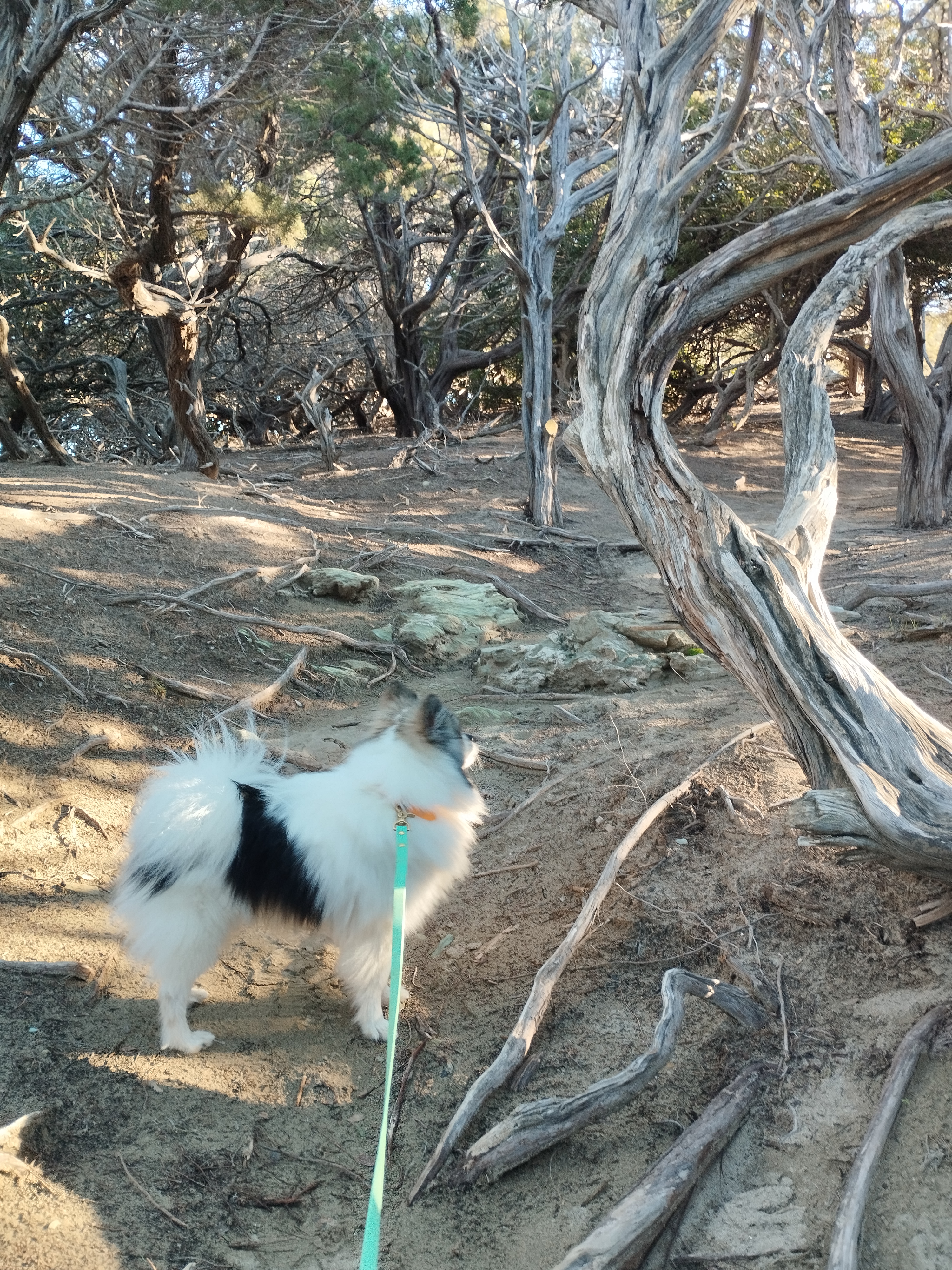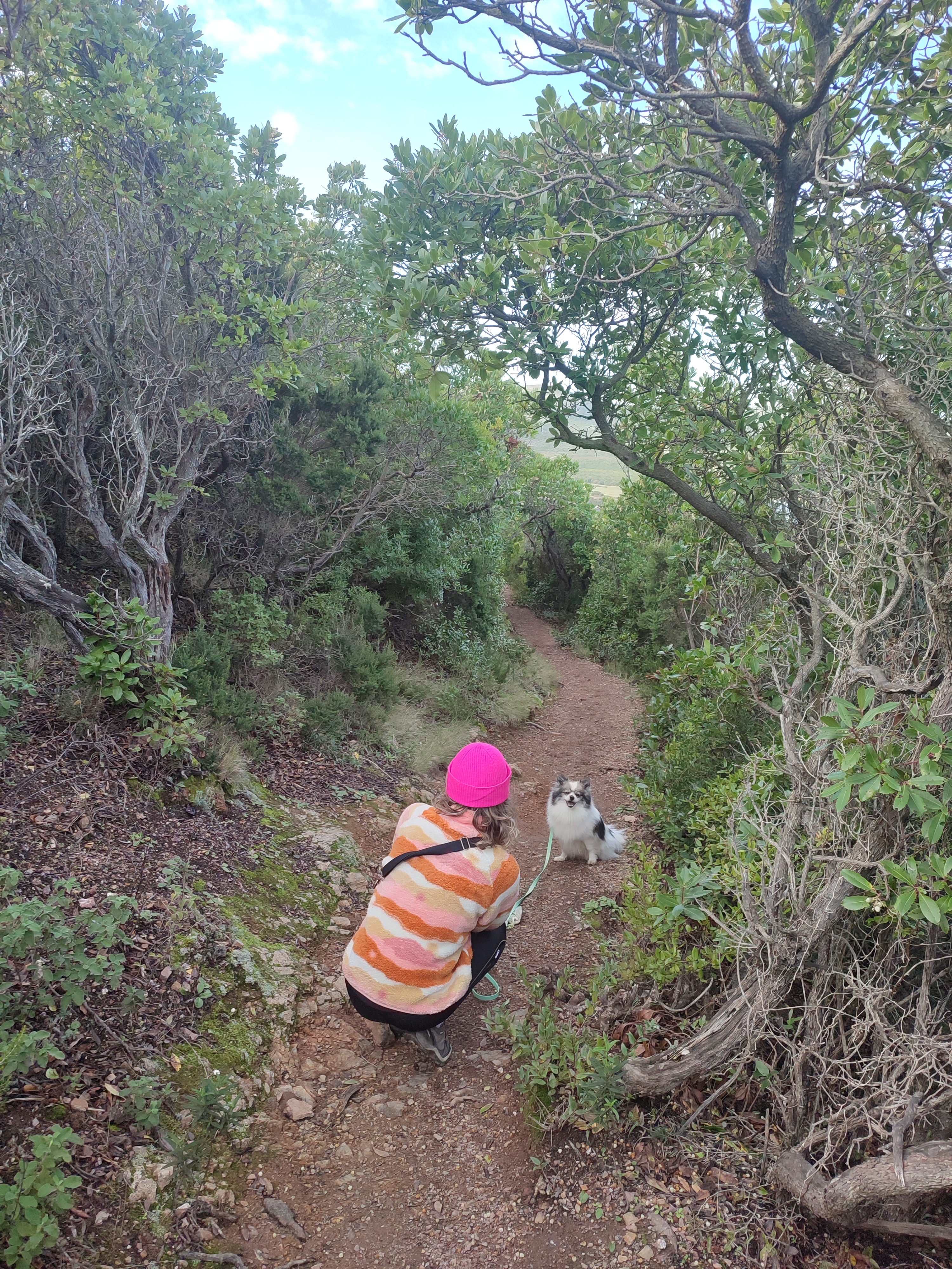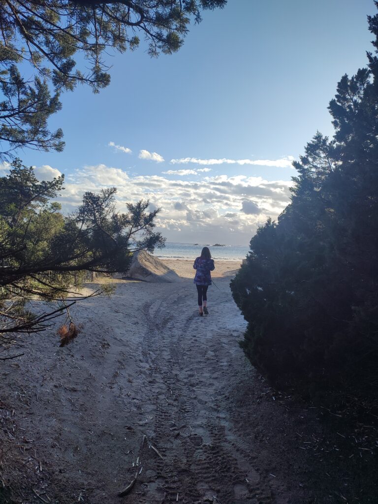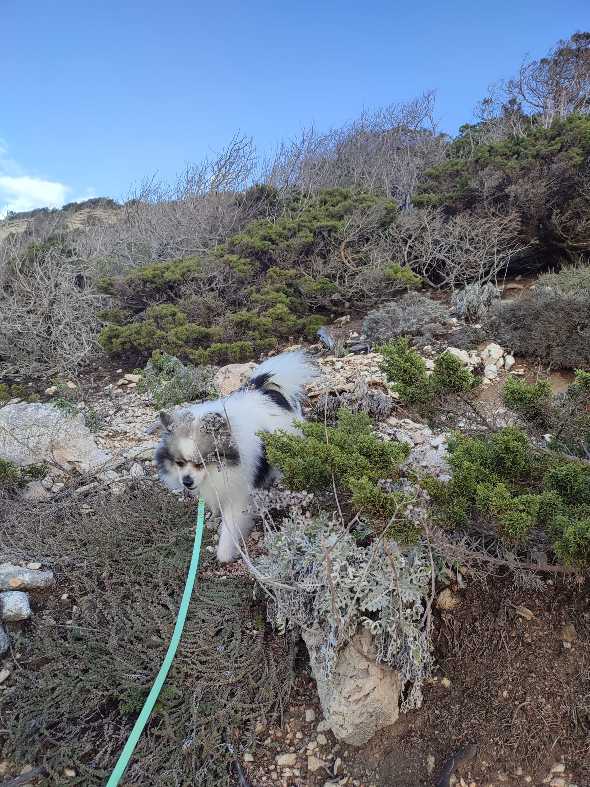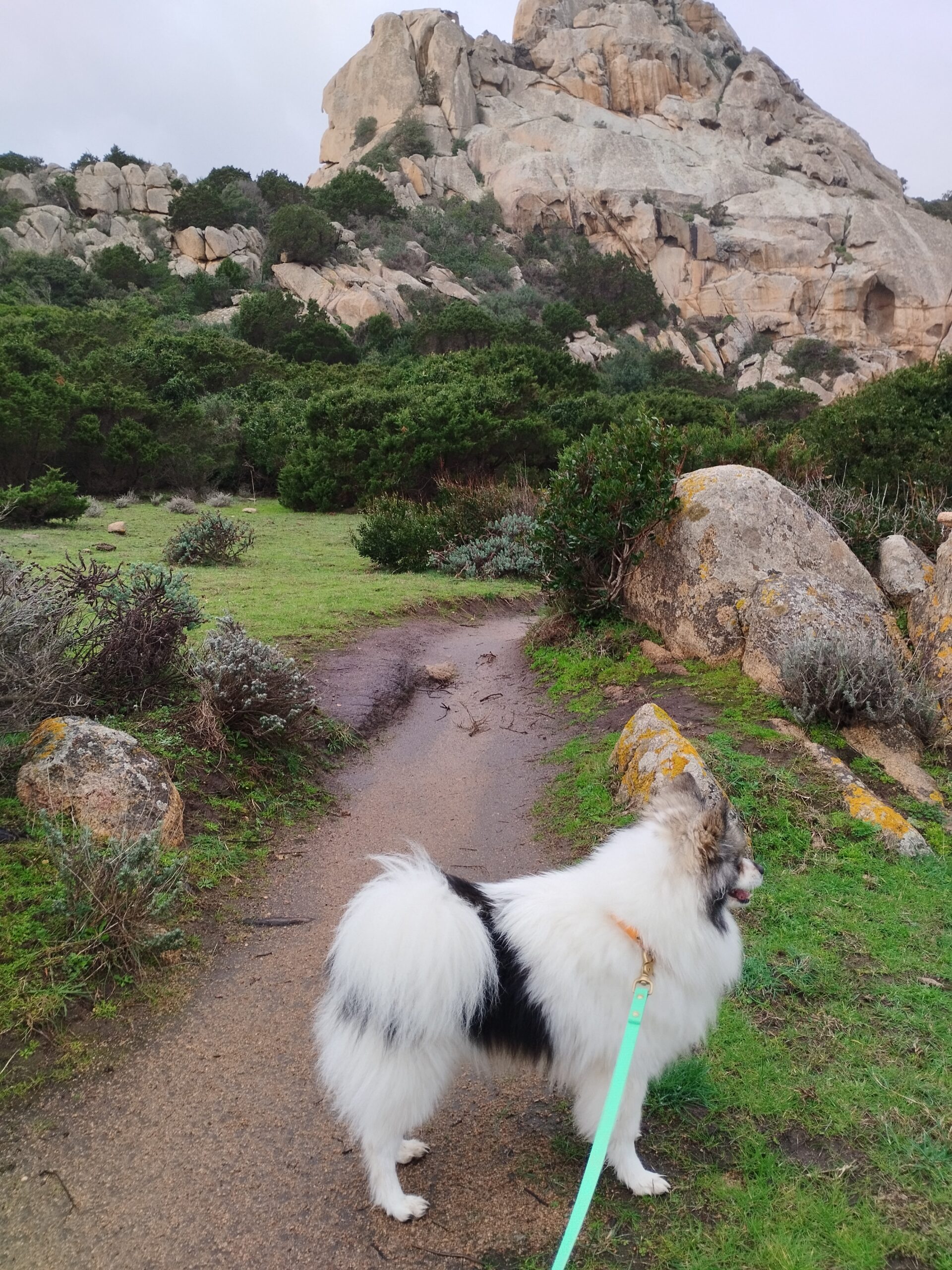 Le lendemain matin, pour le premier jour de l’année 2026, on décide de se balader sur le sentier des douaniers mais en partant de Barcaggio. C’était très agréable parce qu’il n’y avait pas du tout de vent. Touity était content, il a pu courir sur la plage 😍