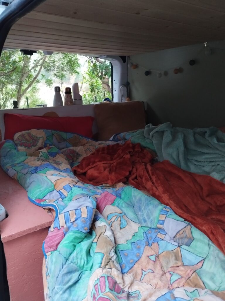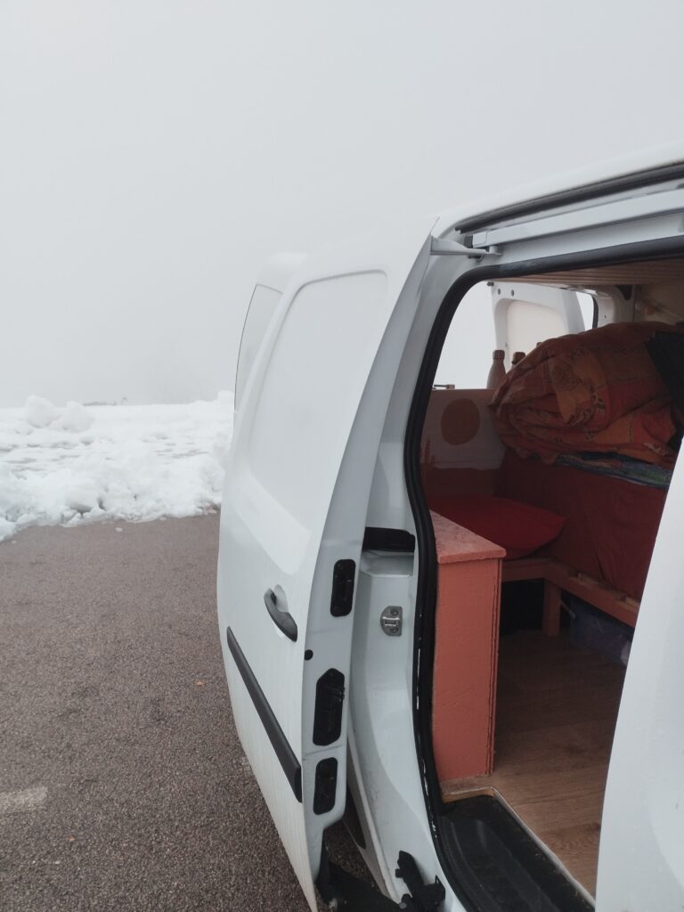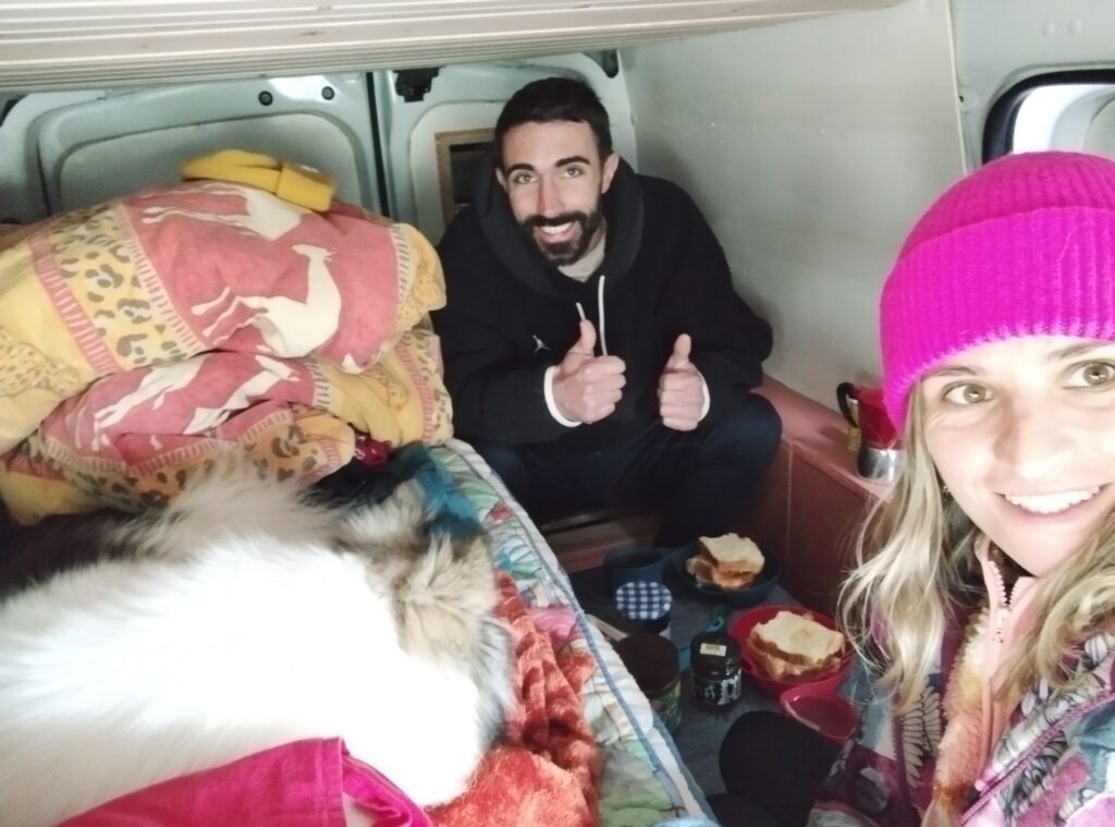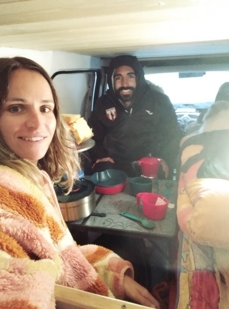 Le fait de voyager en hiver nous a permis de nous retrouver seuls dans des endroits qui, habituellement, sont bondés. Par contre il faut être chanceux avec la météo. On a eu un temps vraiment magnifique la première semaine. Par contre la deuxième semaine il n’a pas fait beau. Et l’autre point négatif à voyager en hiver en van, c’est que le soleil se couche tôt et se lève tard. Les journées étaient assez courtes, on peut donc faire moins de choses. Quand on vit en van, on vit avec le soleil. On a donc beaucoup dormi pour le plus grand bonheur de Touity 😂