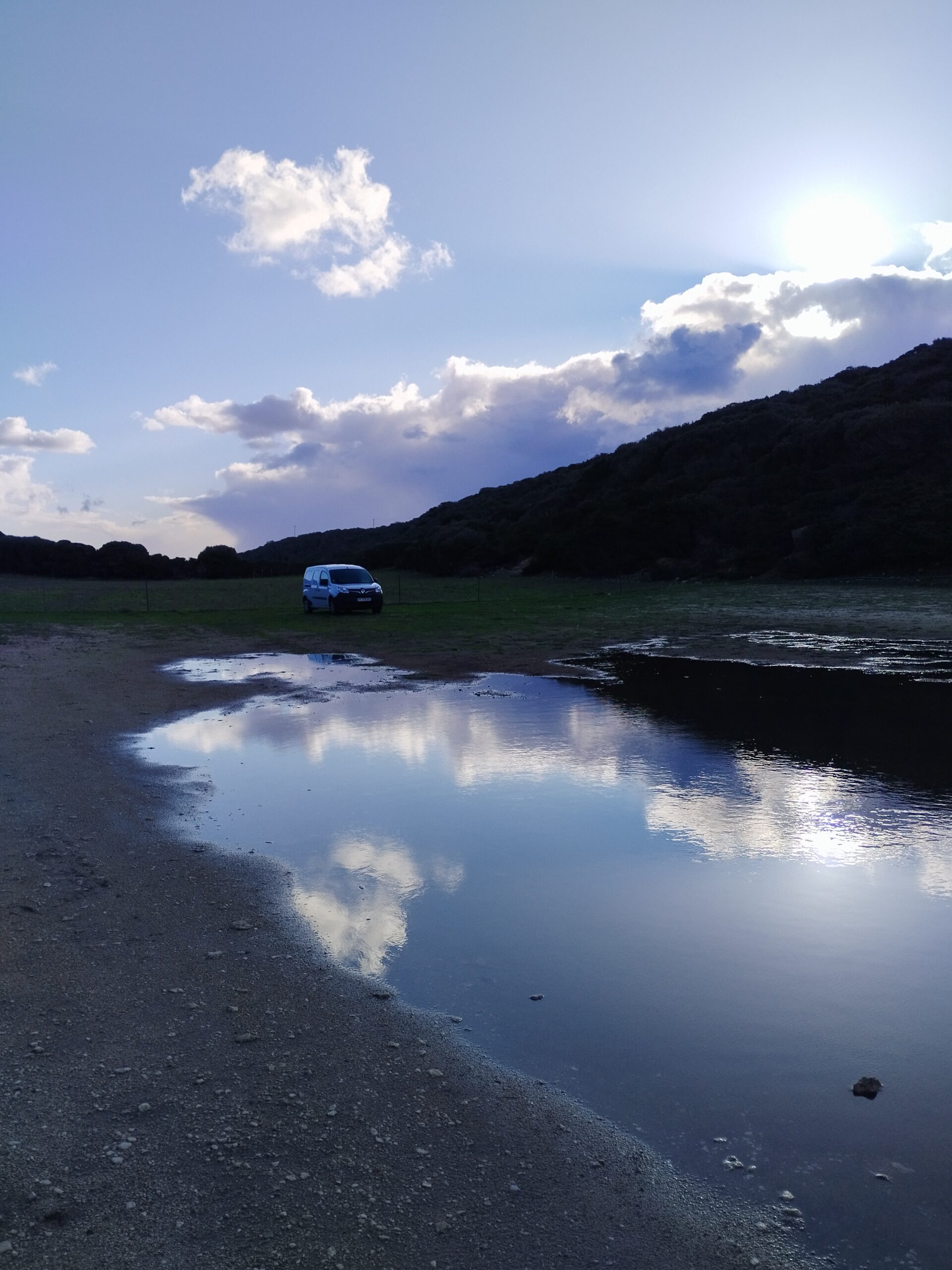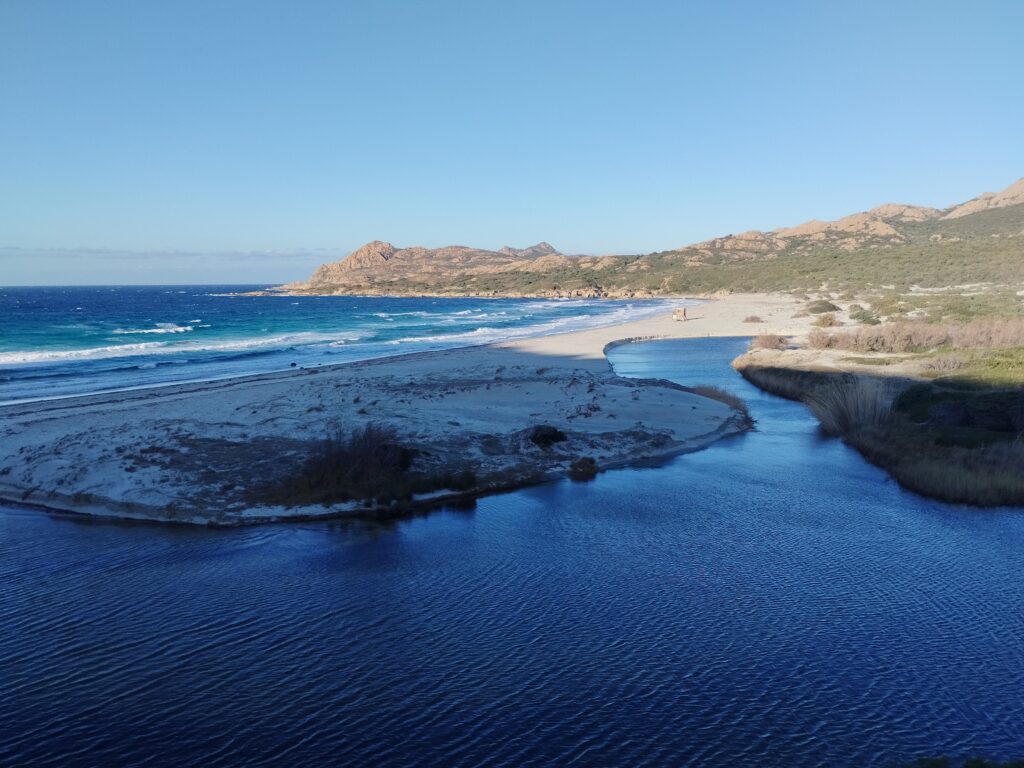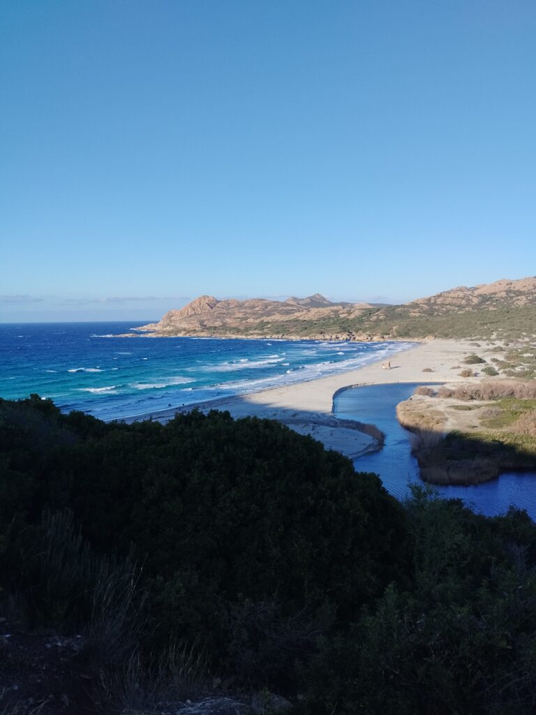 On avait envie de prendre une douche donc on a cherché un camping ouvert dans le coin. En hiver, il n’y en a quasiment aucun dans le sud de l’île… On est donc un peu revenus sur nos pas pour aller au camping U Ponte Grossu. Et franchement, on ne regrette pas du tout d’avoir fait un petit détour. Le camping est incroyable, très grand et pas cher. Vous pouvez arriver 24h/24 car on s’enregistre sur une borne. Les douches sont super propres. Et le lieux est magnifique. On recommande à 100% 😉