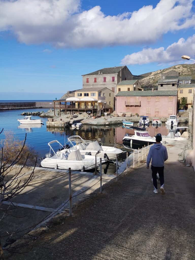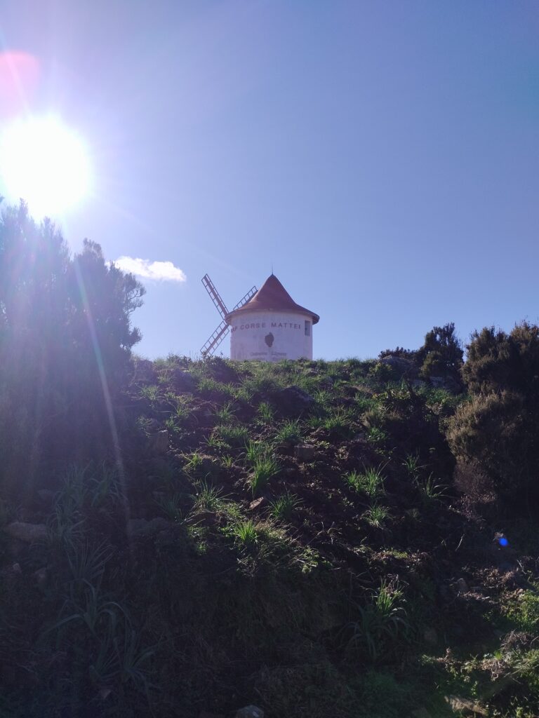 On fait ensuite une halte au Moulin de Mattei pour pique-niquer. Ensuite on reprend la route en longeant la côte ouest en s’arrêtant au port de Centuri, à Nonza puis à Patrimonio. La route est magnifique tout le long mais très étroite. Heureusement nous y étions en hiver. Nous n’avons donc croisé quasiment personne à part quelques cyclistes.