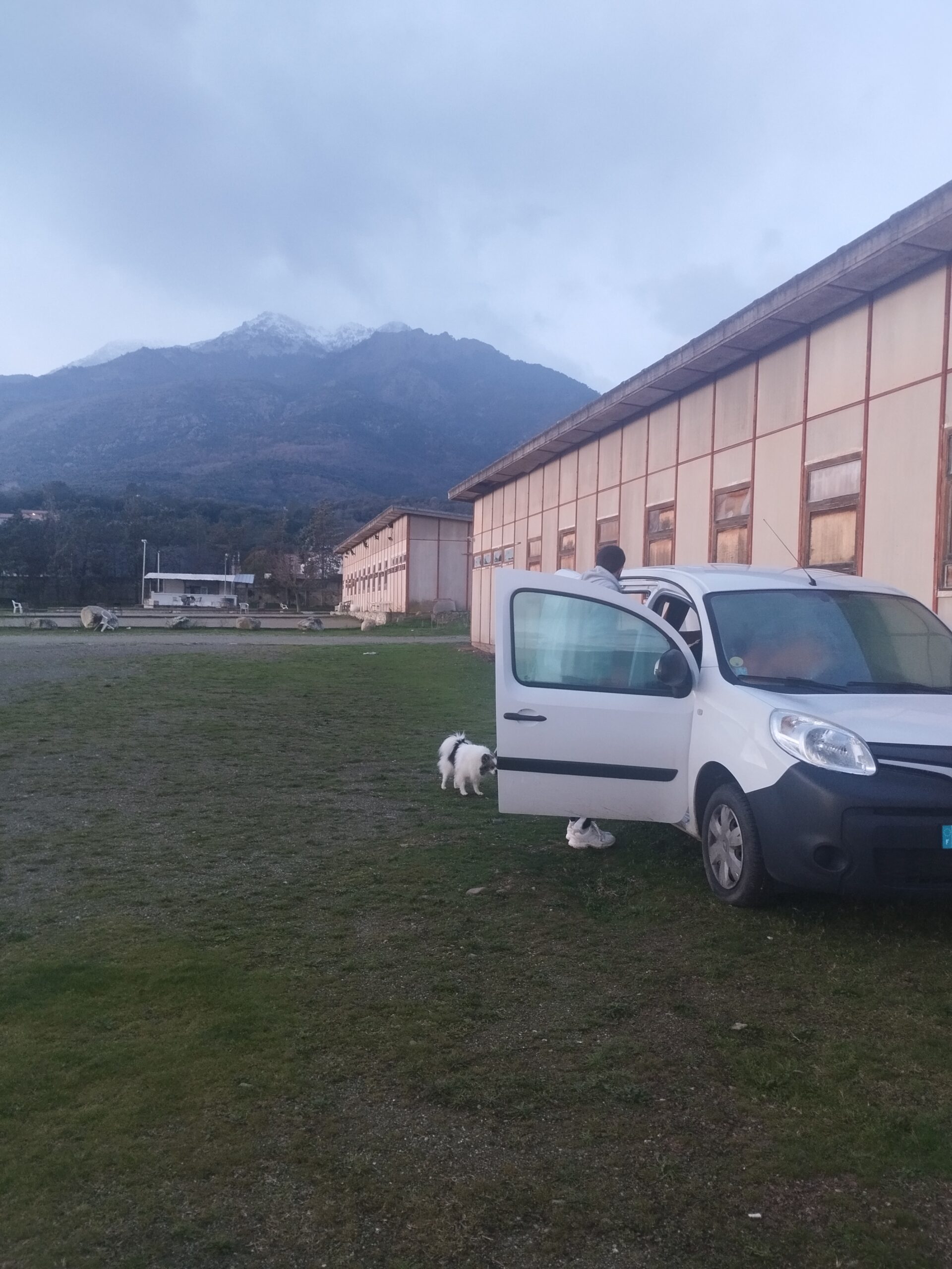 On a trouvé ce coin un peu en retrait de la ville et assez calme pour passer la nuit. Il y a des terrains de foot autour et des bâtiments qui n’ont pas l’air occupés. La vue sur la montagne derrière est assez sympa 😊