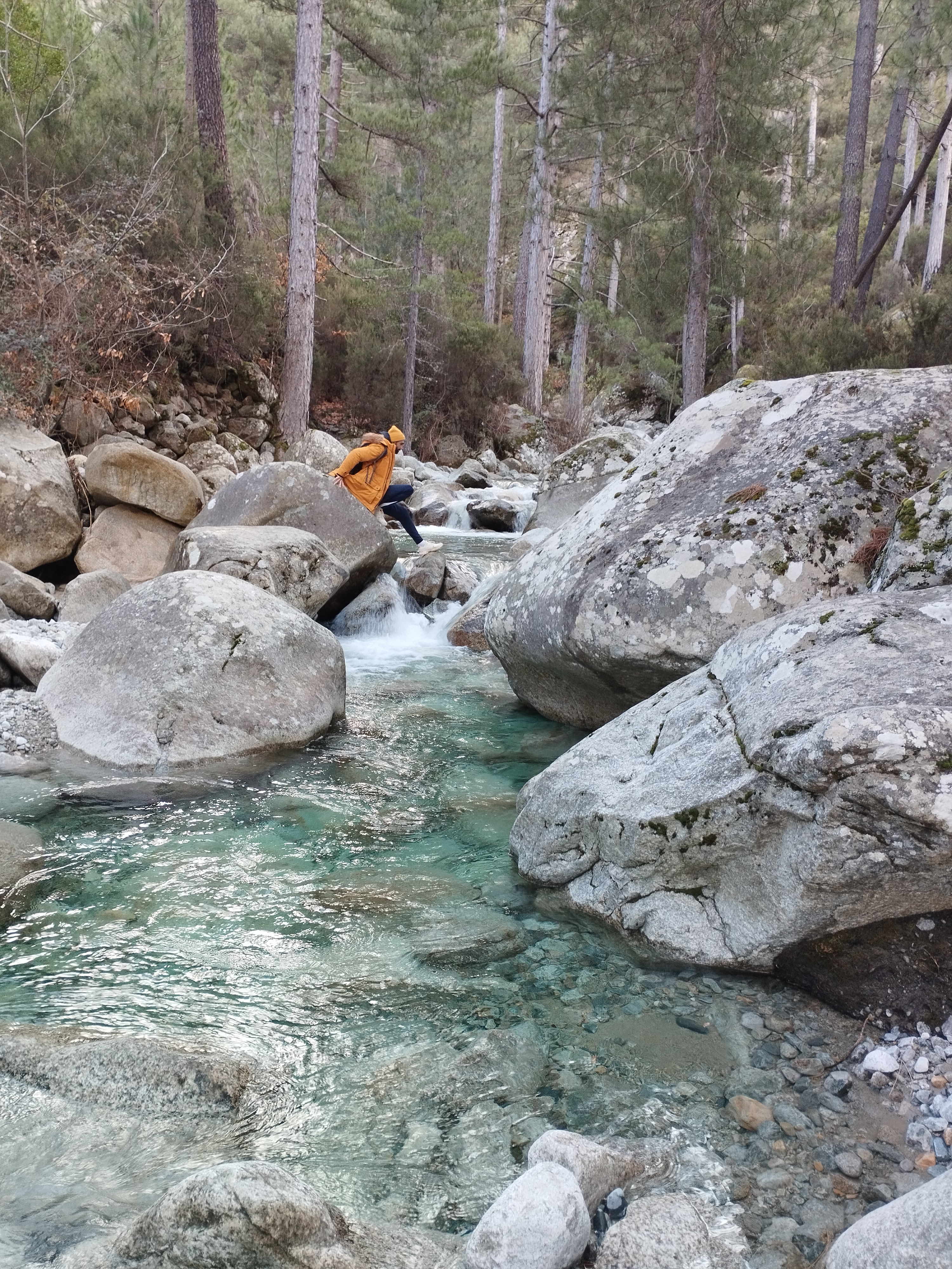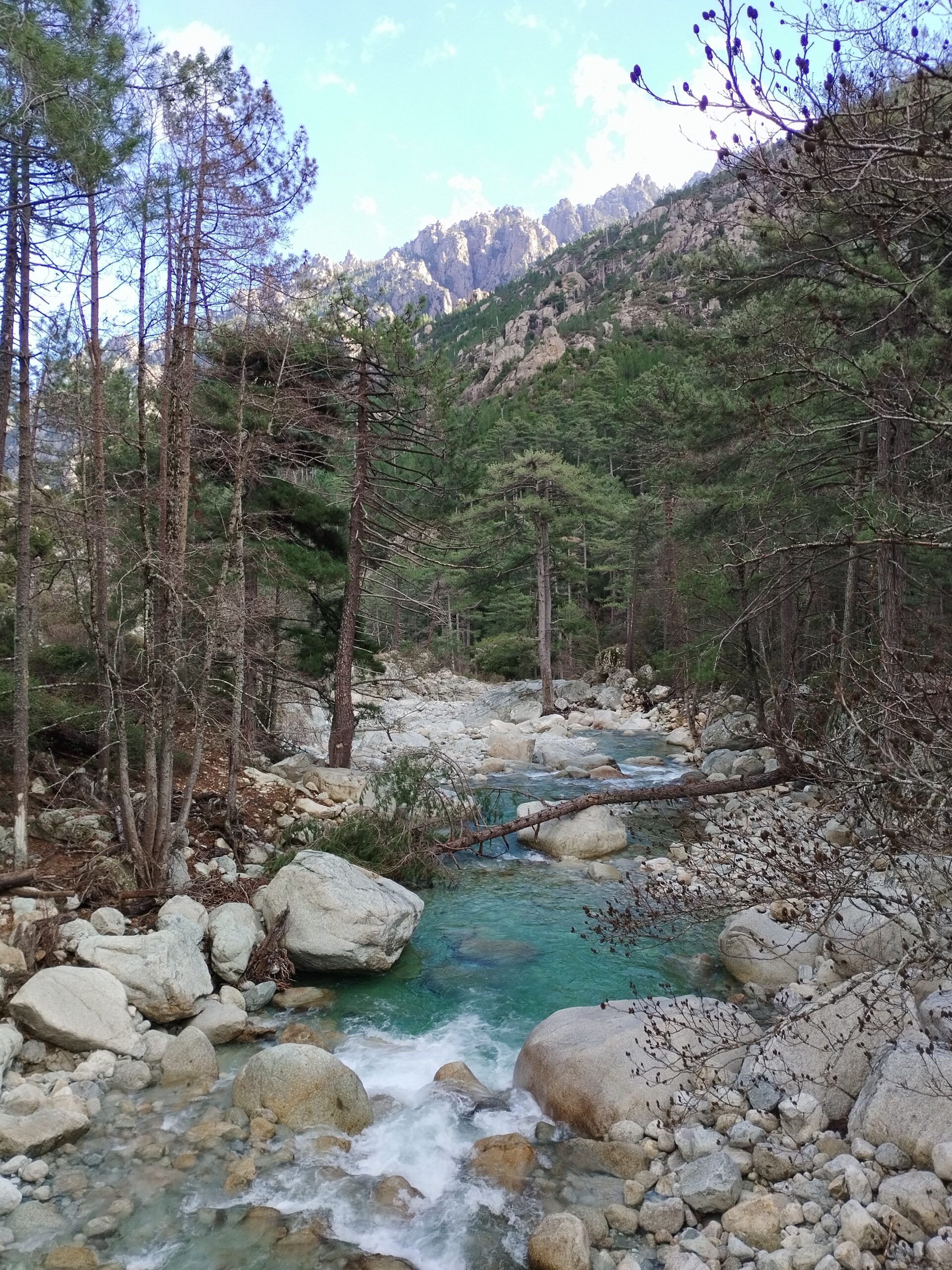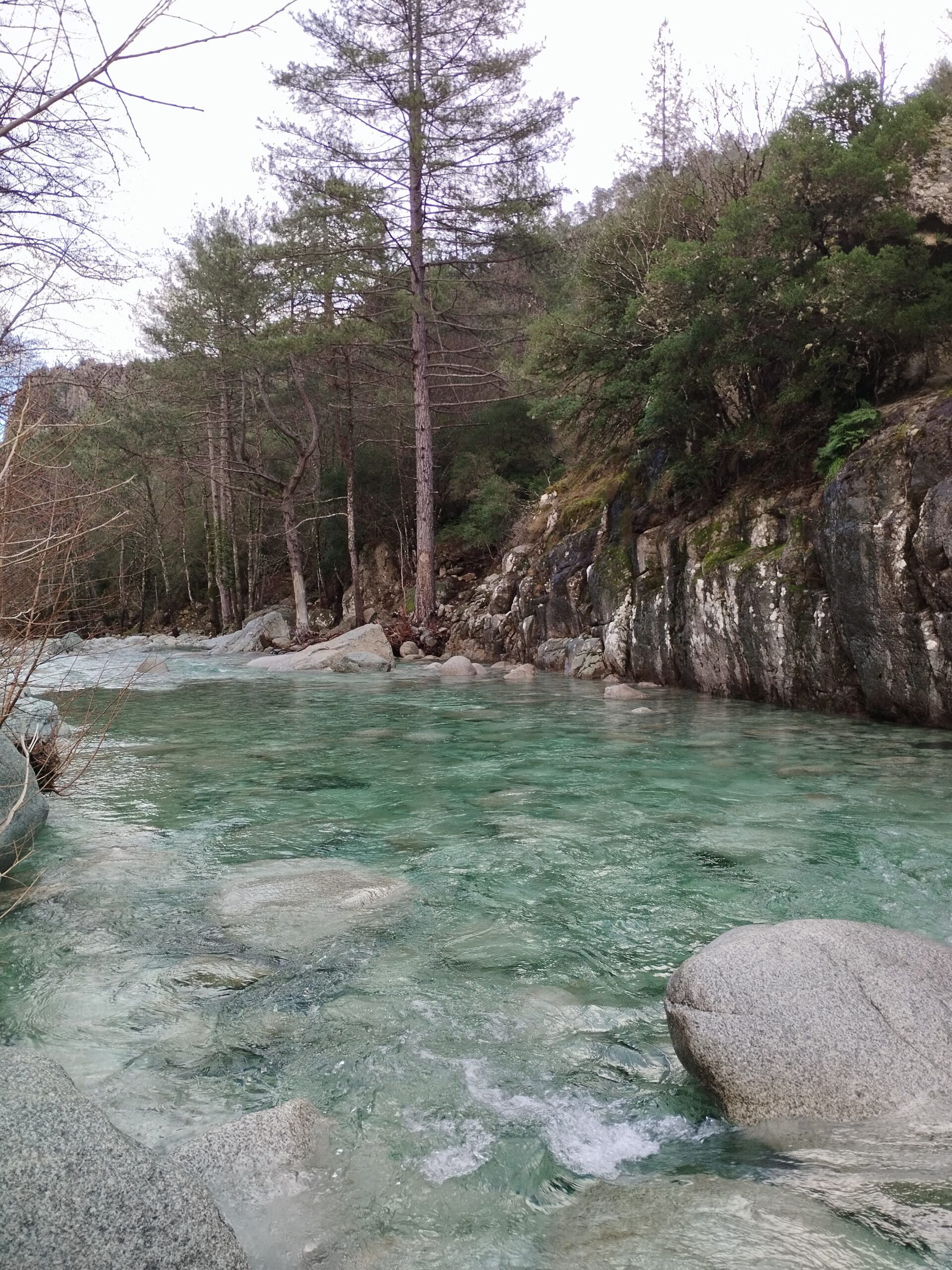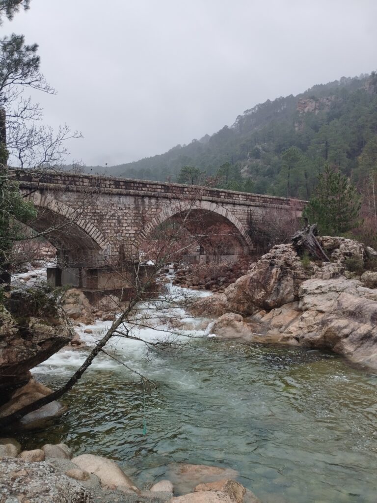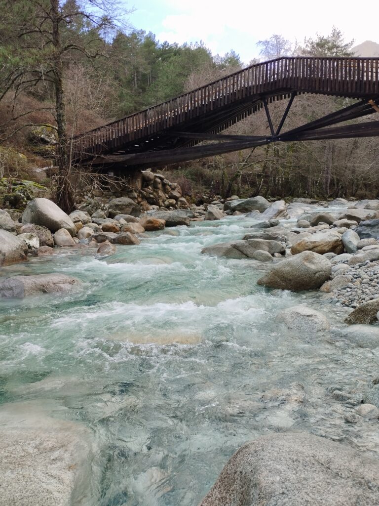Je voulais faire la randonnée de la passerelle de Chjarasgiolu à la passerelle de Riviseccu. Mais la première passerelle était fermée (je ne sais pas pourquoi). On a donc marché le long de la route pour rejoindre le camping de Tuani (qui était fermé, sinon nous aurions dormi là bas car c’est vraiment très mignon, complètement dans la nature, tout ce qu’on adore 😊). Depuis le camping on a pu traverser l’eau puis atteindre la passerelle de Riviseccu et faire le retour à notre point de départ par la route (il n’y avait aucune voiture, juste quelques touristes italiens). Ce coin de la Corse est vraiment splendide avec la montagne enneigée et l’eau bleu turquoise 😍