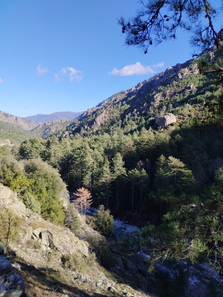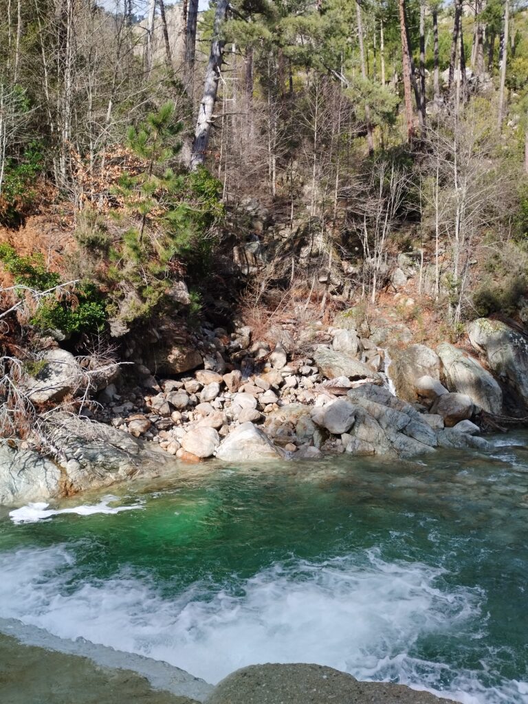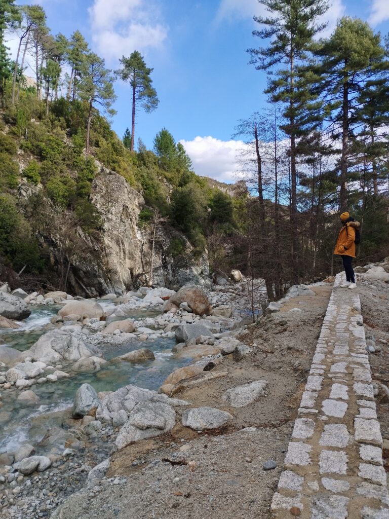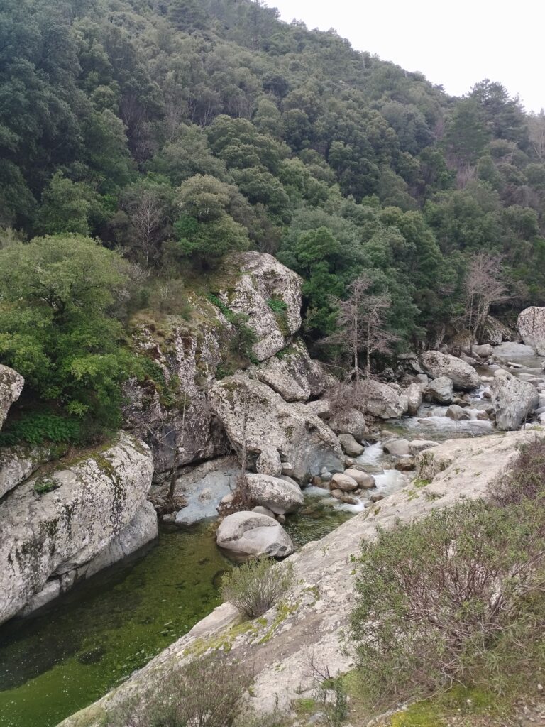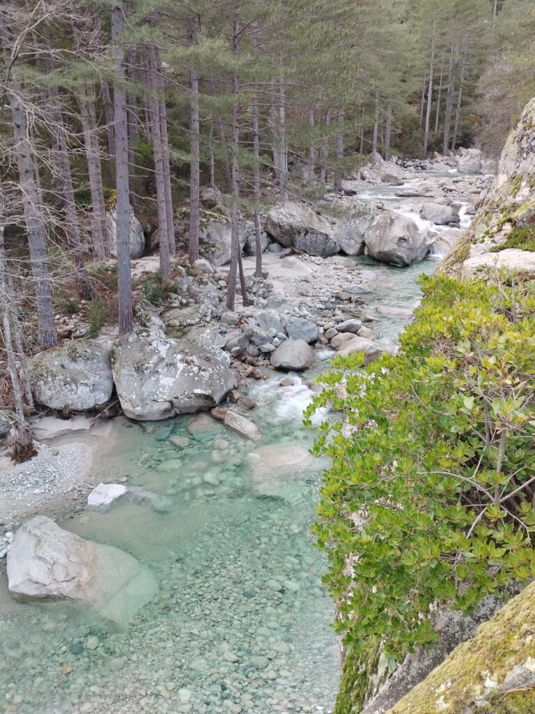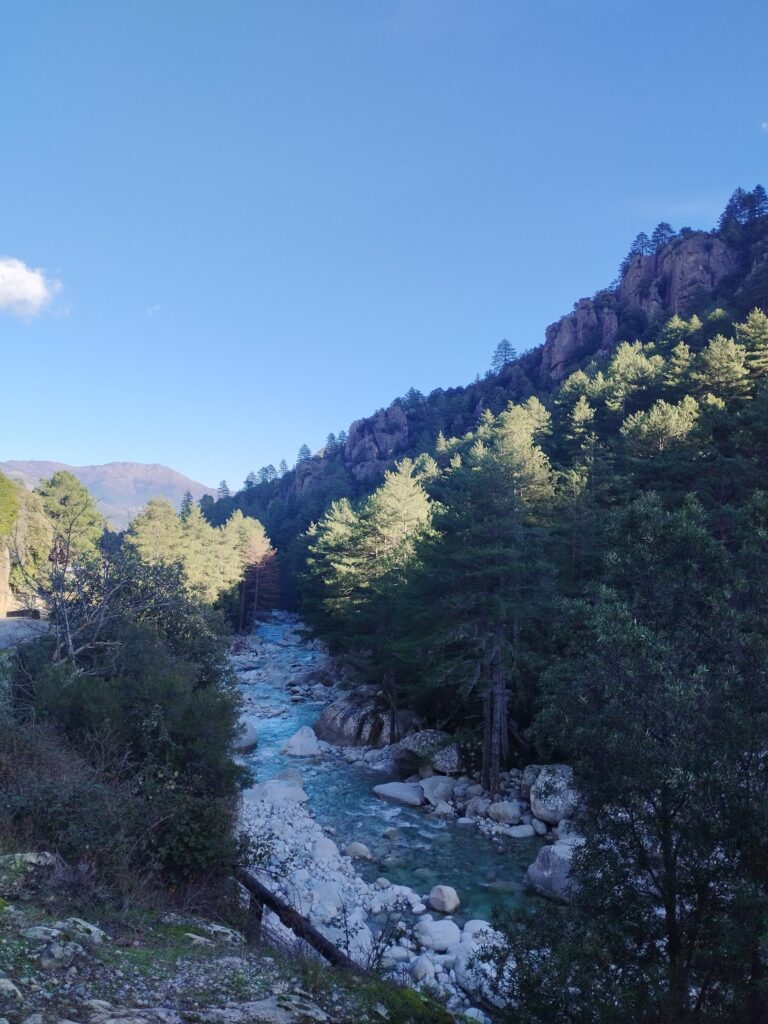 Le lendemain on poursuit la découverte de Corte avec la Vallée du Tavignano dans l’idée de faire la randonnée de la passerelle du Russulinu. On commence la randonnée qui est bien indiquée avec des marqueurs et bien sûr on arrive à se tromper de chemin dès le début… On se retrouve tout près de l’eau alors qu’on était censé être en hauteur. Ça nous a fait faire un gros détour ce qui fait que nous ne sommes pas allés jusqu’à la passerelle. On a fait demi-tour 2km avant la fin.