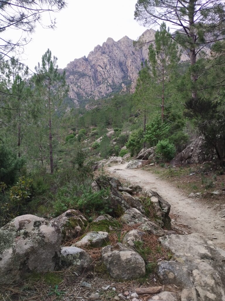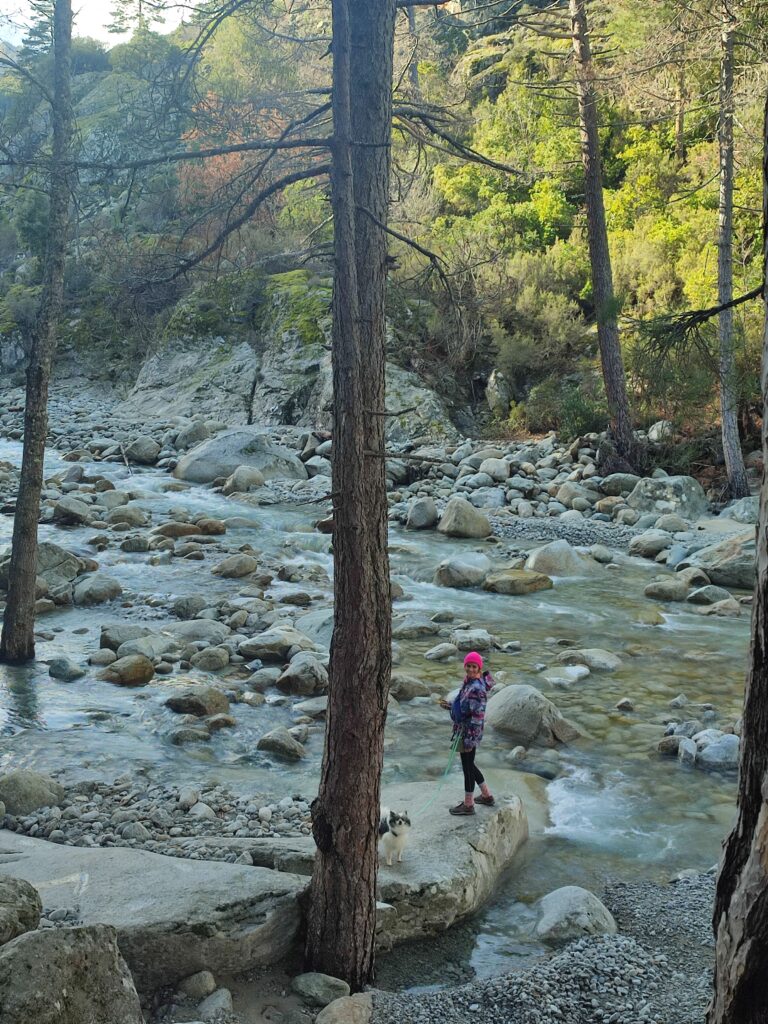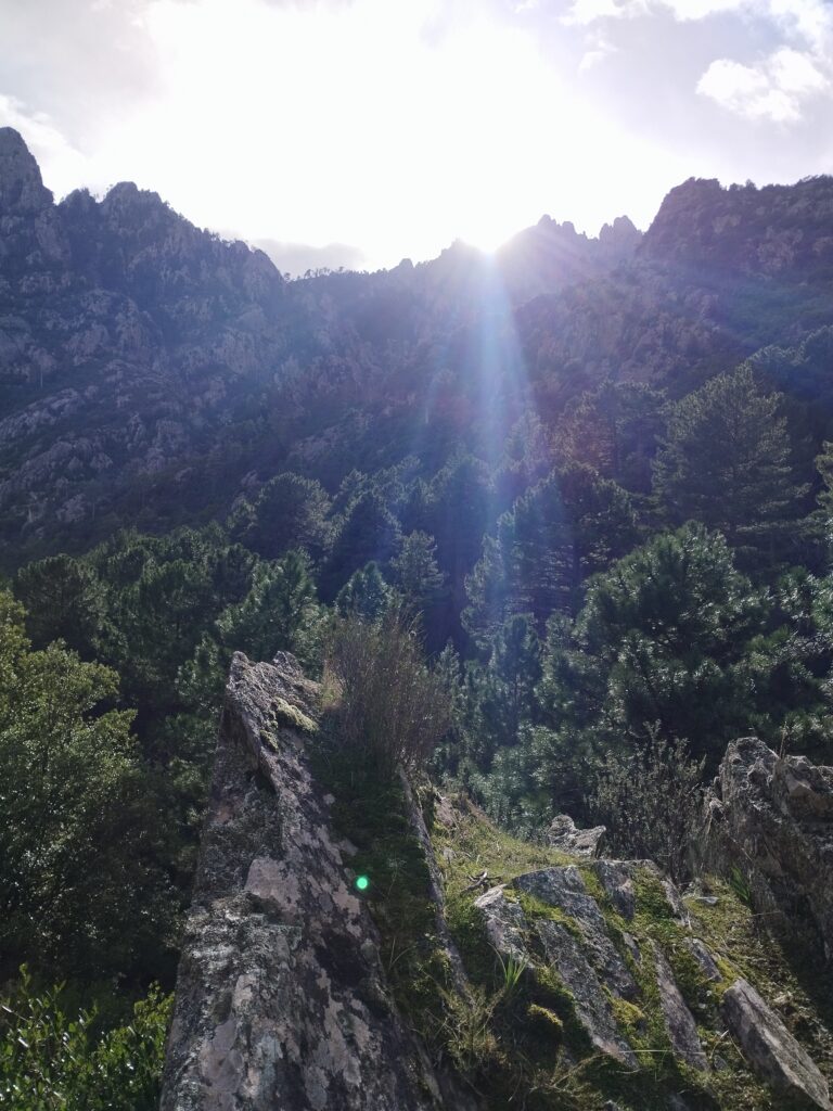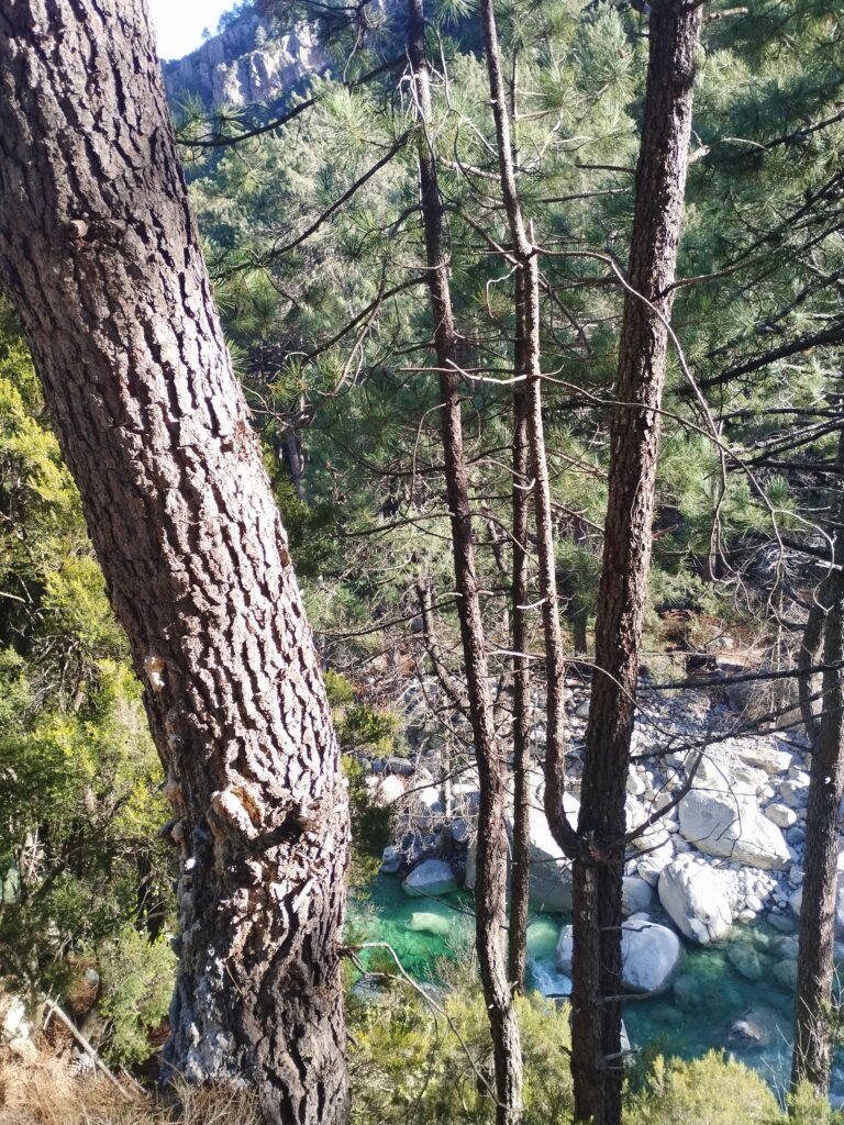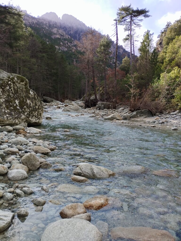 Le lendemain on poursuit la découverte de Corte avec la Vallée du Tavignano dans l’idée de faire la randonnée de la passerelle du Russulinu. On commence la randonnée qui est bien indiquée avec des marqueurs et bien sûr on arrive à se tromper de chemin dès le début… On se retrouve tout près de l’eau alors qu’on était censé être en hauteur. Ça nous a fait faire un gros détour ce qui fait que nous ne sommes pas allés jusqu’à la passerelle. On a fait demi-tour 2km avant la fin.