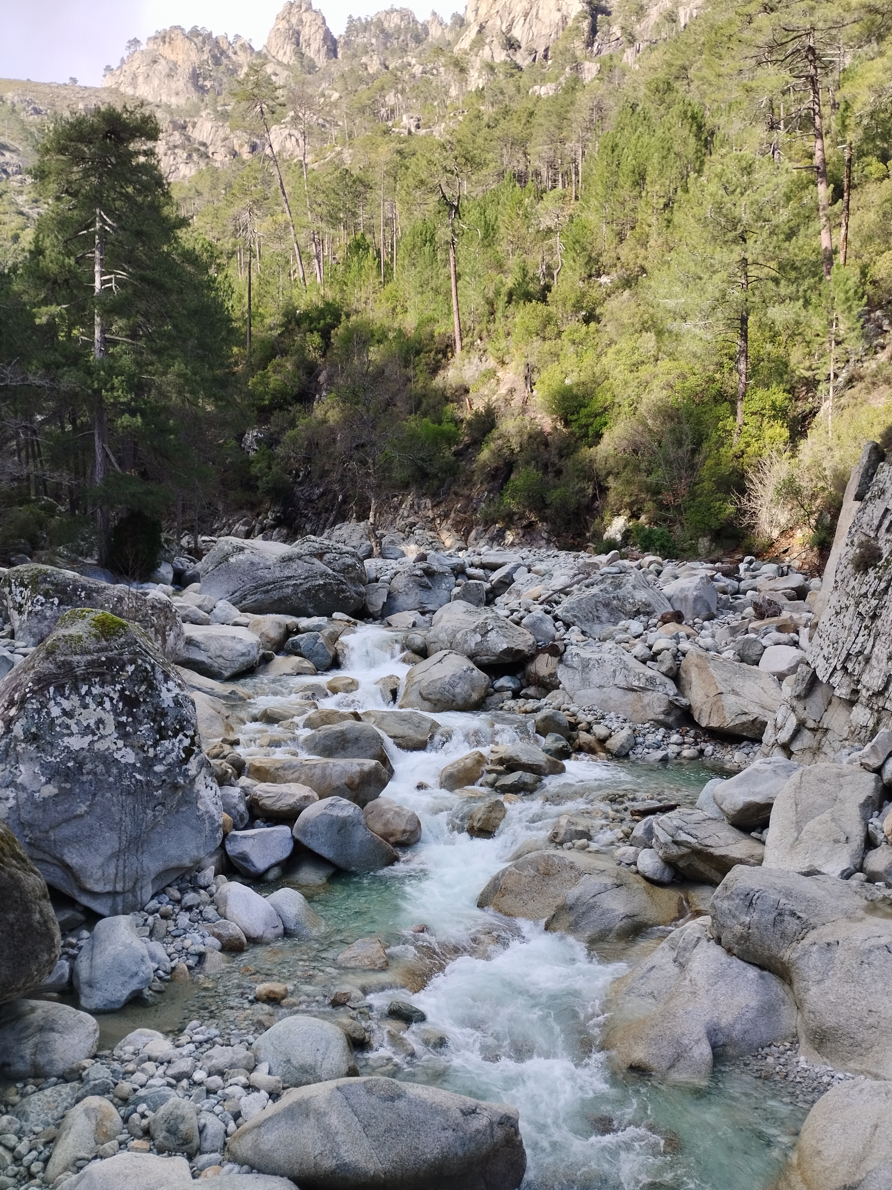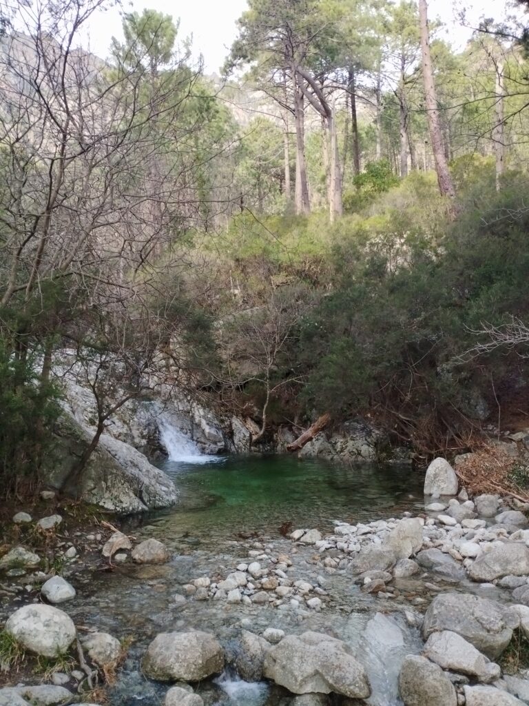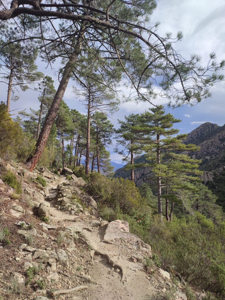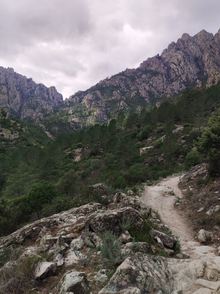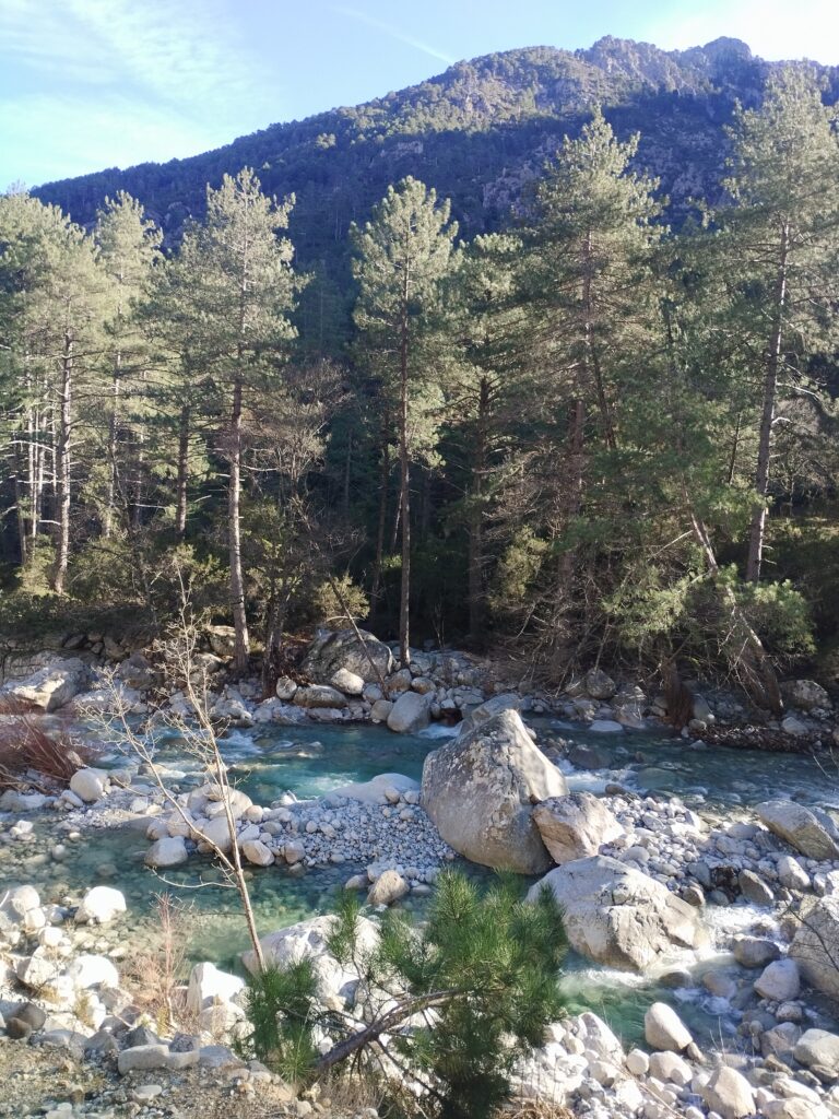 Le lendemain on poursuit la découverte de Corte avec la Vallée du Tavignano dans l’idée de faire la randonnée de la passerelle du Russulinu. On commence la randonnée qui est bien indiquée avec des marqueurs et bien sûr on arrive à se tromper de chemin dès le début… On se retrouve tout près de l’eau alors qu’on était censé être en hauteur. Ça nous a fait faire un gros détour ce qui fait que nous ne sommes pas allés jusqu’à la passerelle. On a fait demi-tour 2km avant la fin.