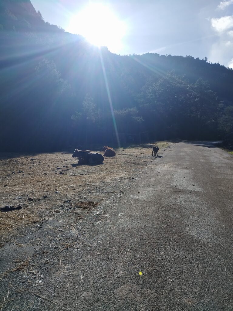 Nous avons passé la nuit au bord de la route, proche du départ de la randonnée prévue le lendemain. Il n’y a presque pas de circulation et on est complètement dans le noir. C’est parfait pour dormir. On a juste croisé quelques animaux avant d’arriver au spot. Le Lendemain matin, on a découvert une vue magnifique !