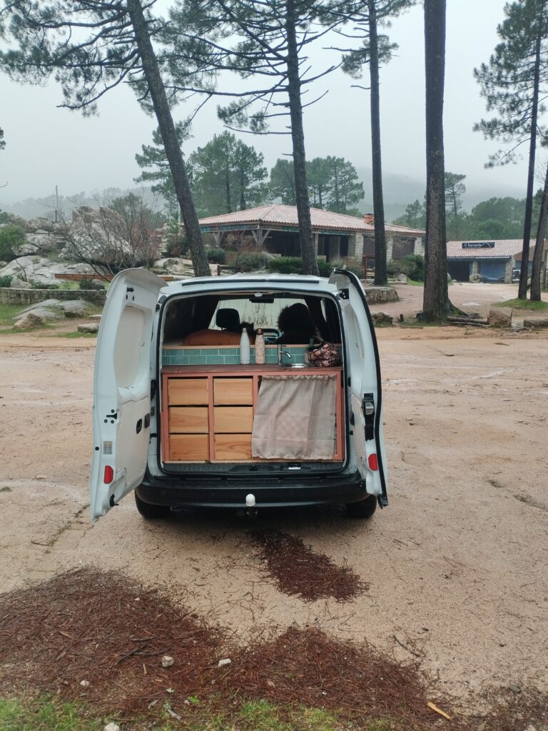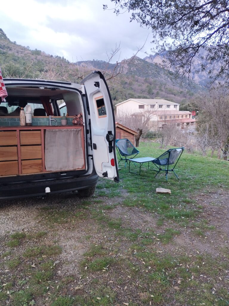 Il y a un super camping à Galeria tenu par une habitante très gentille. C’est le Galeria Van‘Park. Il faut savoir que très peu de camping sont ouverts en hiver en Corse ! Mais on a quand même réussi à en trouver quelques uns pendant notre road trip en Corse avec notre chien. La douche de celui-ci se trouve à l’extérieur mais l’eau est tellement chaude qu’on n’a pas du tout froid.