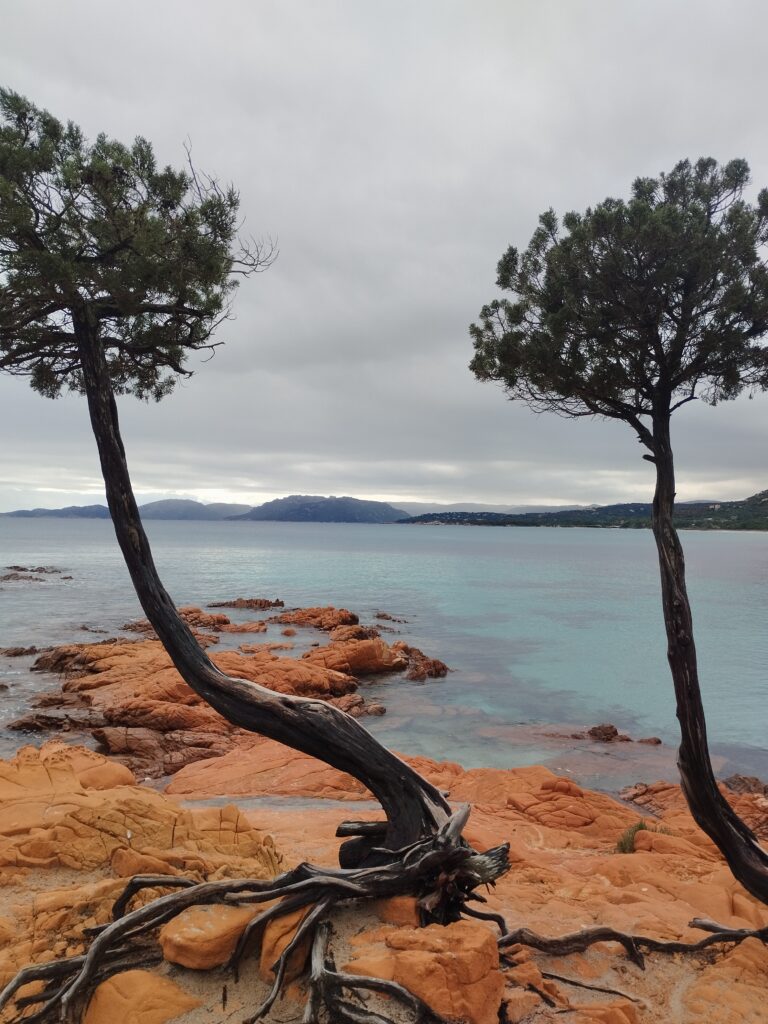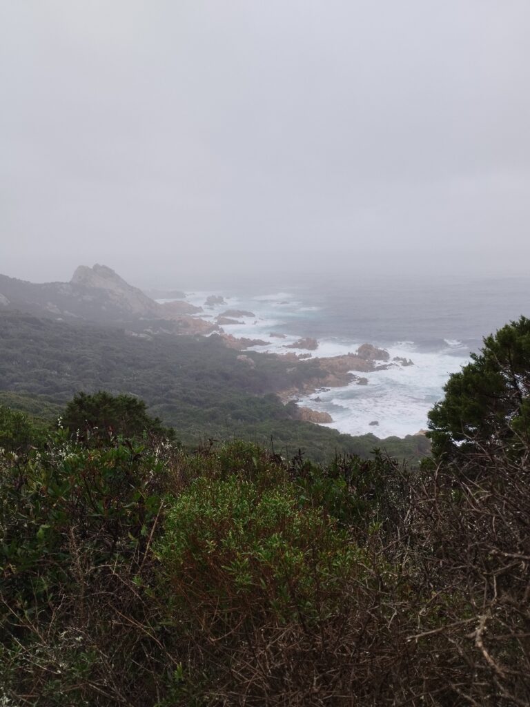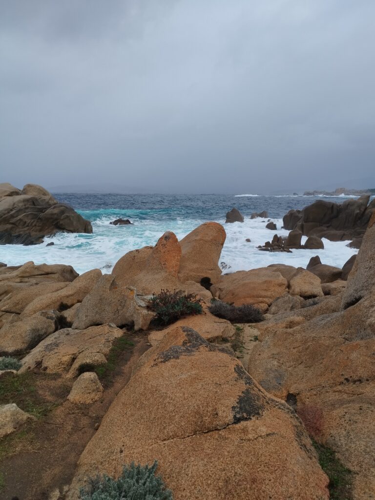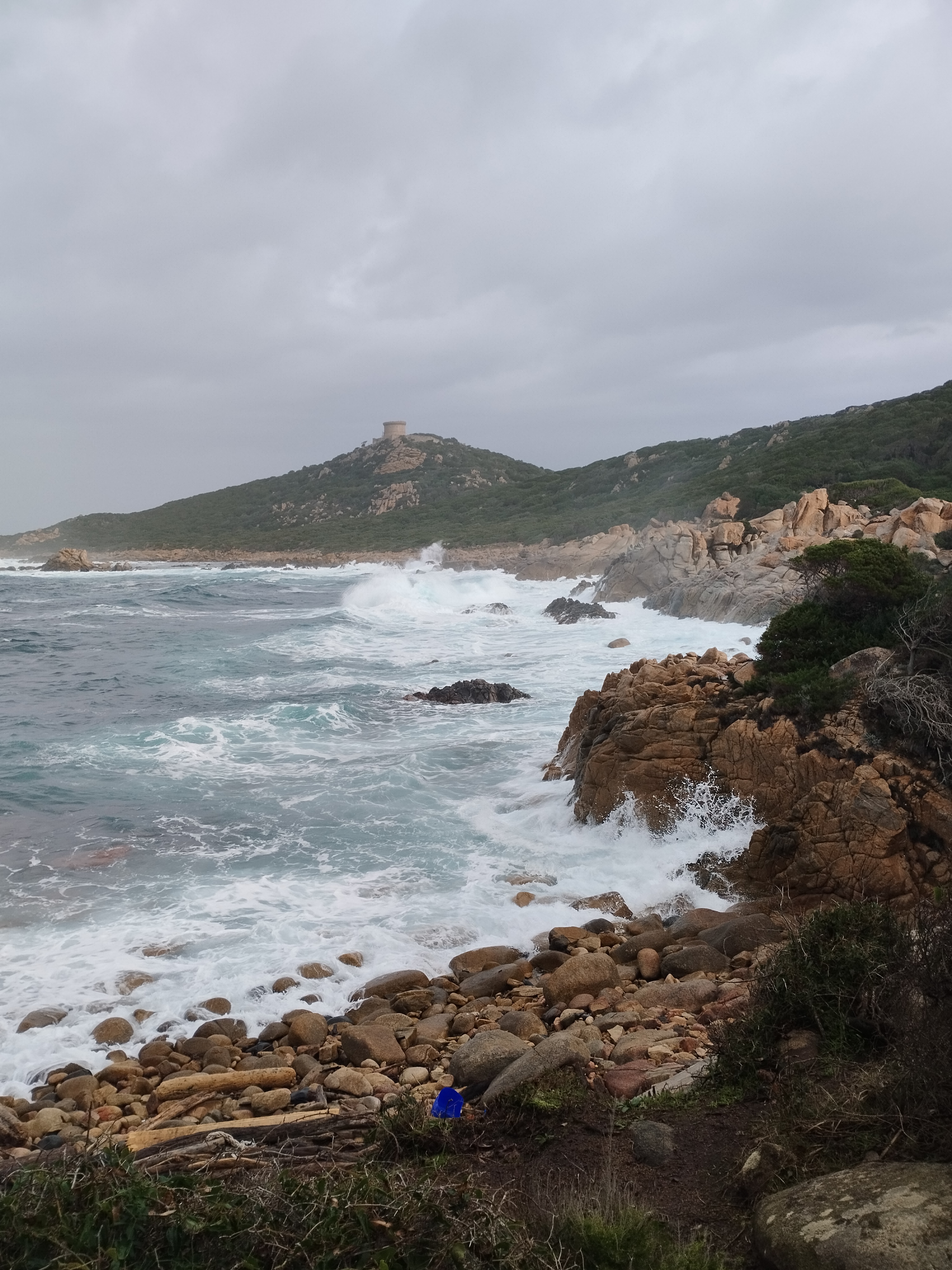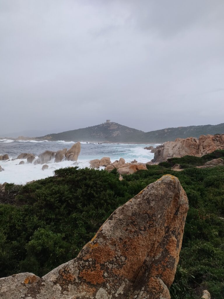 Pour notre dernière randonnée en Corse, on a été complètement trempés ! La tempête était en train de s’installer depuis plusieurs jours, avec beaucoup de vent et de pluie. On a donc découvert Campomoro avec une mer agitée. C’était quand même super joli à voir.