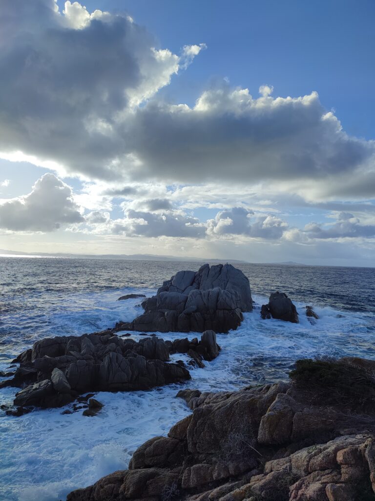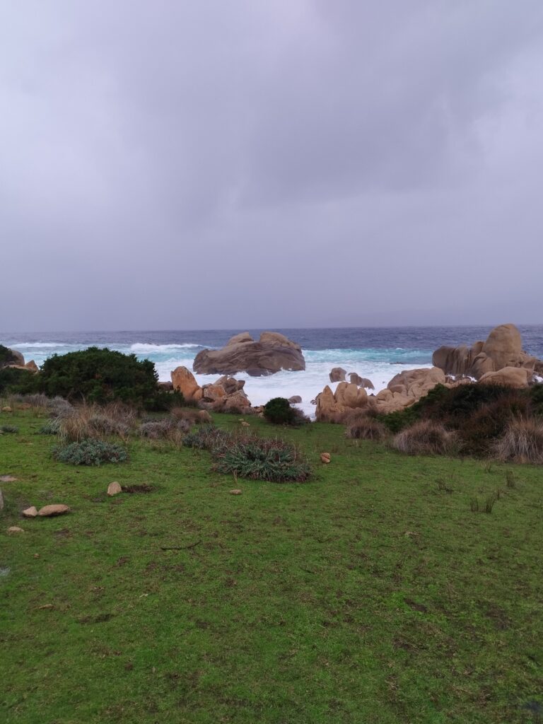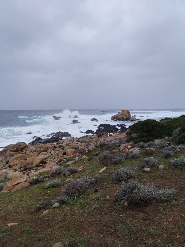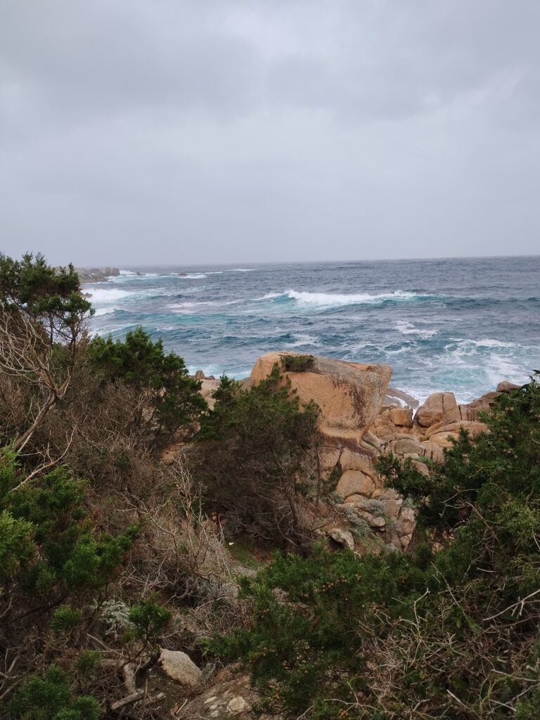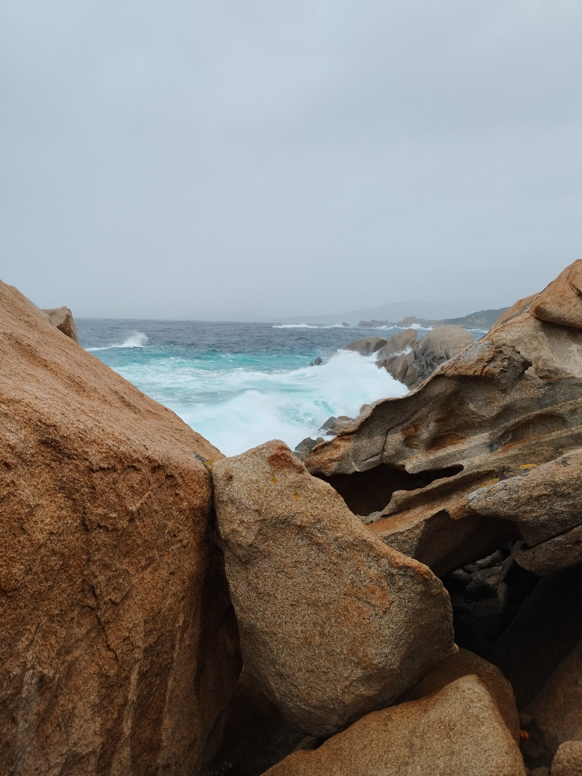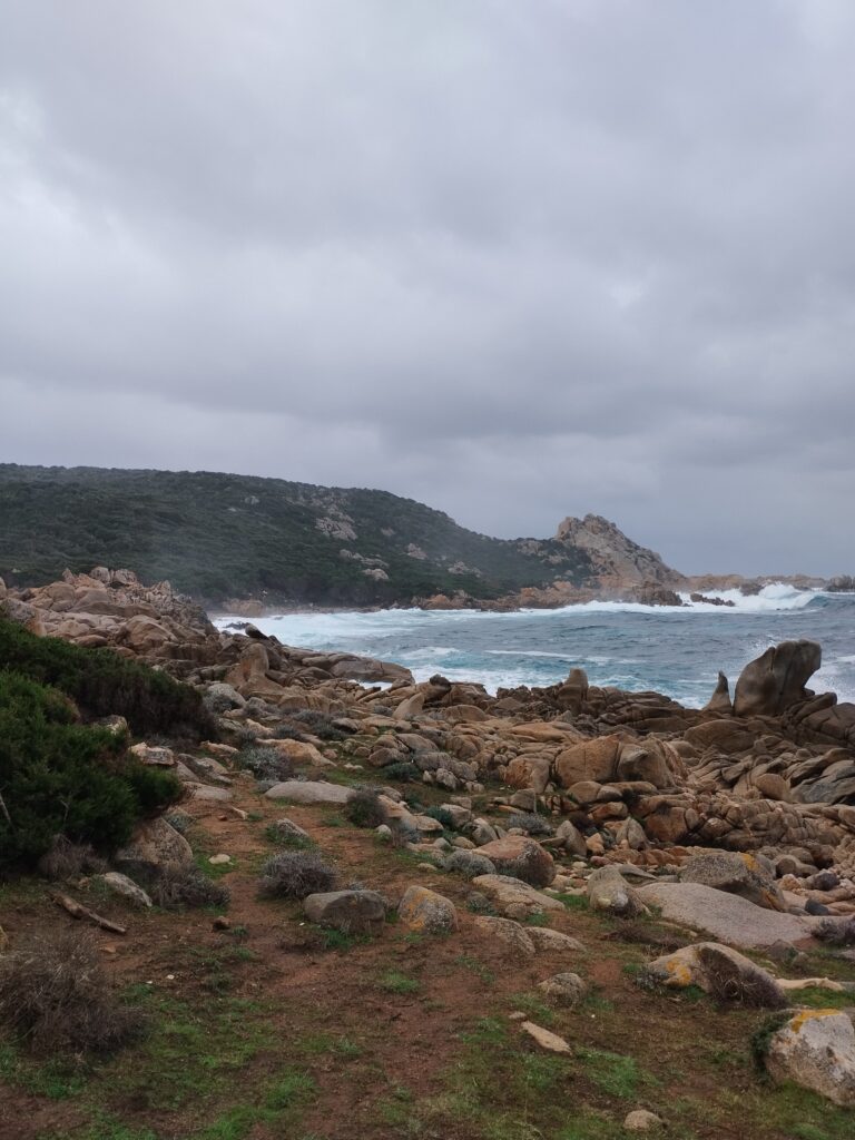 Pour notre dernière randonnée en Corse, on a été complètement trempés ! La tempête était en train de s’installer depuis plusieurs jours, avec beaucoup de vent et de pluie. On a donc découvert Campomoro avec une mer agitée. C’était quand même super joli à voir.