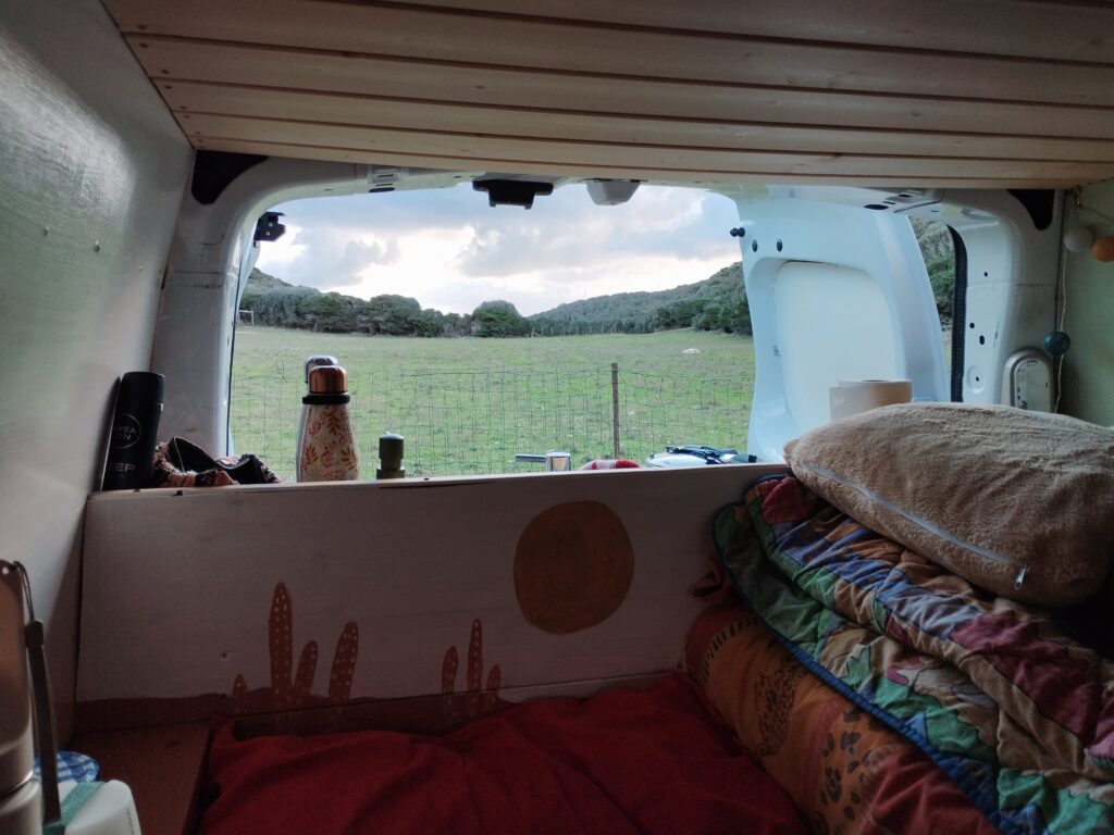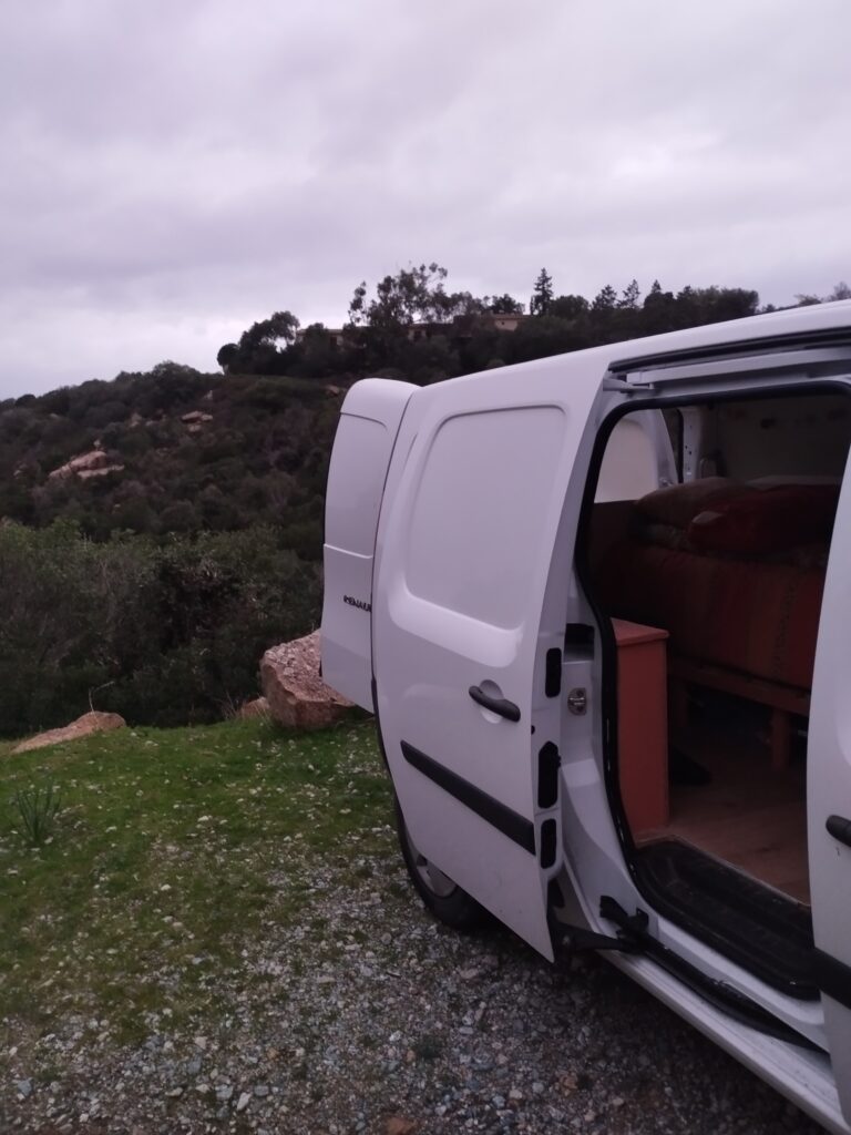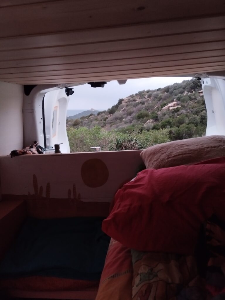 A Campomoro il y a des panneaux partout pour interdire le camping sauvage. On a donc trouvé un petit coin au bord de la route en dehors de la ville. C’était pas notre meilleur spot mais bon ça fait l’affaire pour une nuit ^^