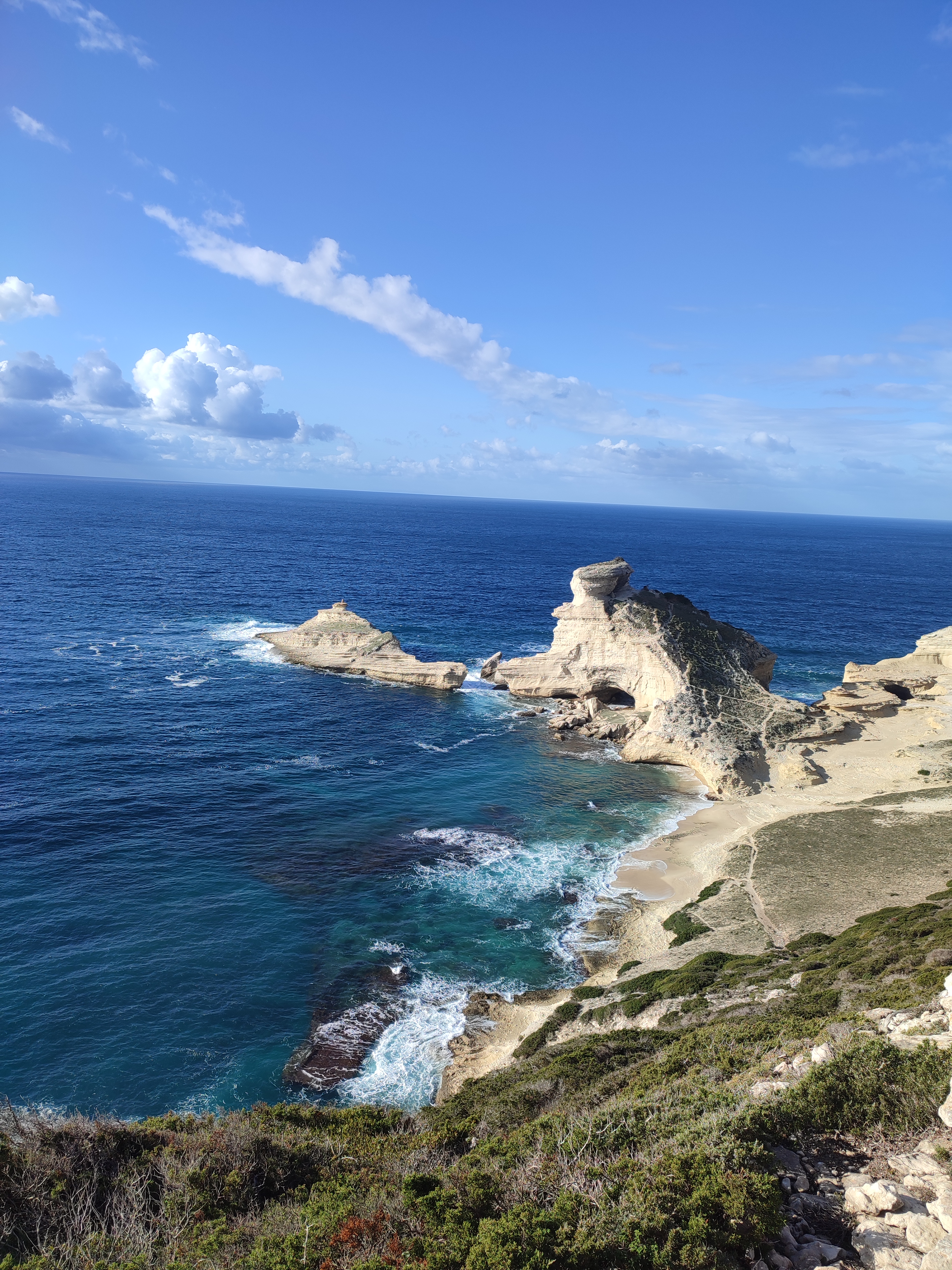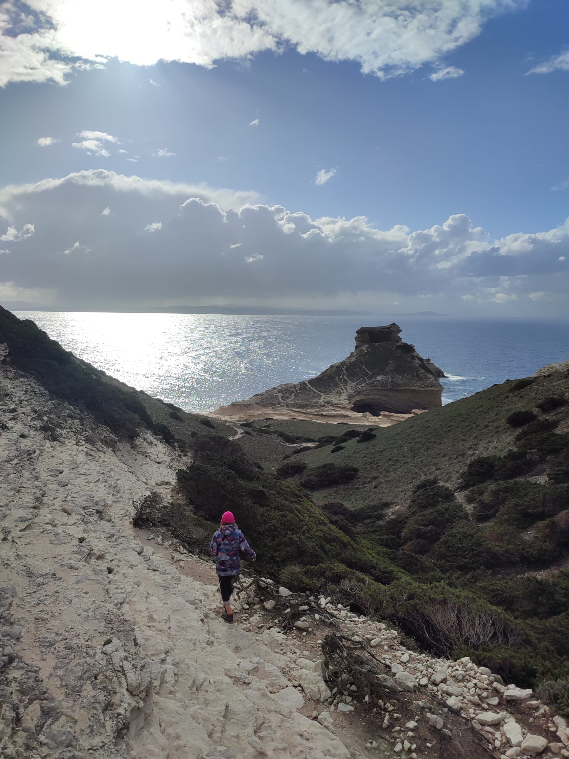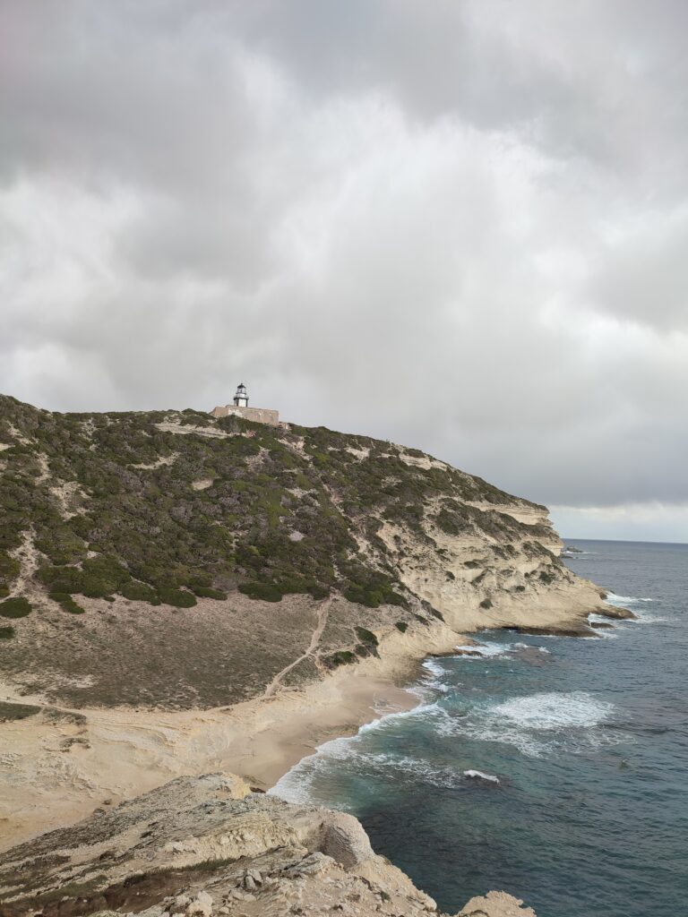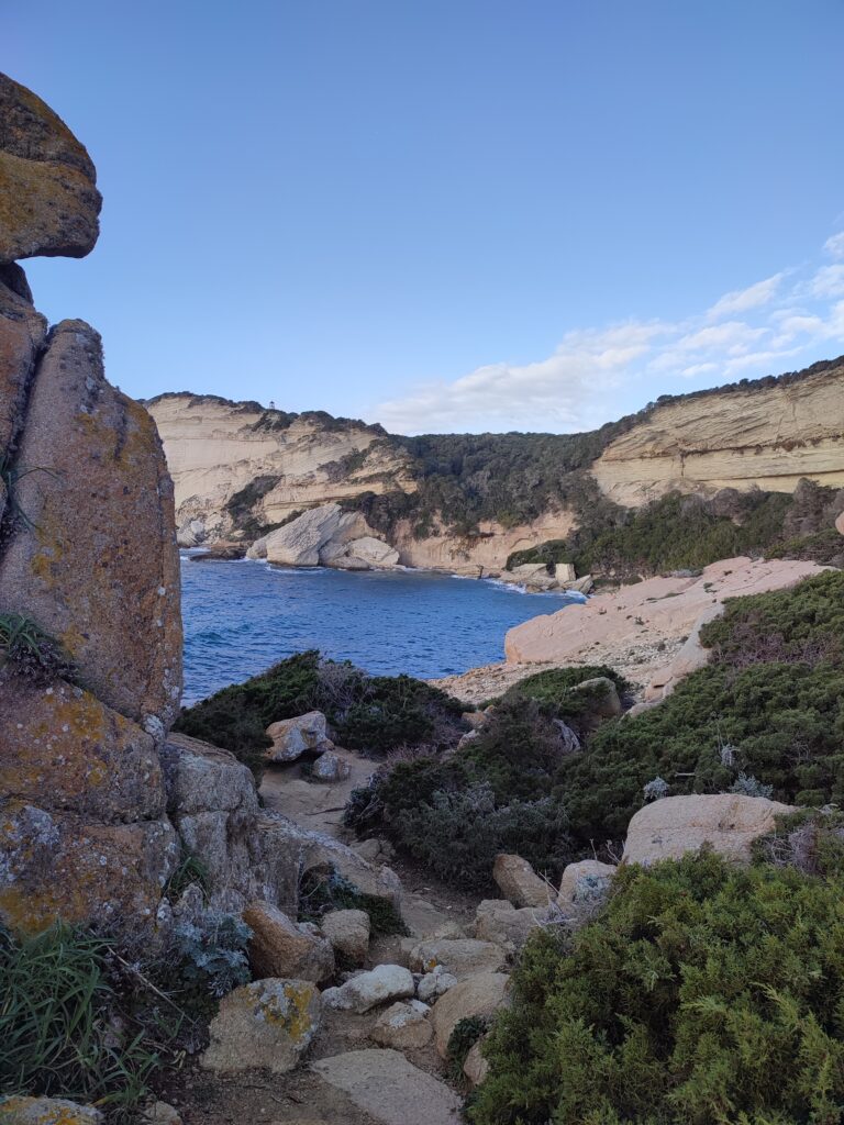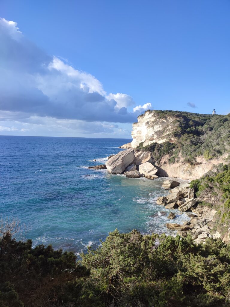 Nous avons fait la boucle du Capo Pertusato à Bonifacio. Cette randonnée vous fait traverser le maquis et longer le littoral. On peut bien voir les falaises et la ville au loin.