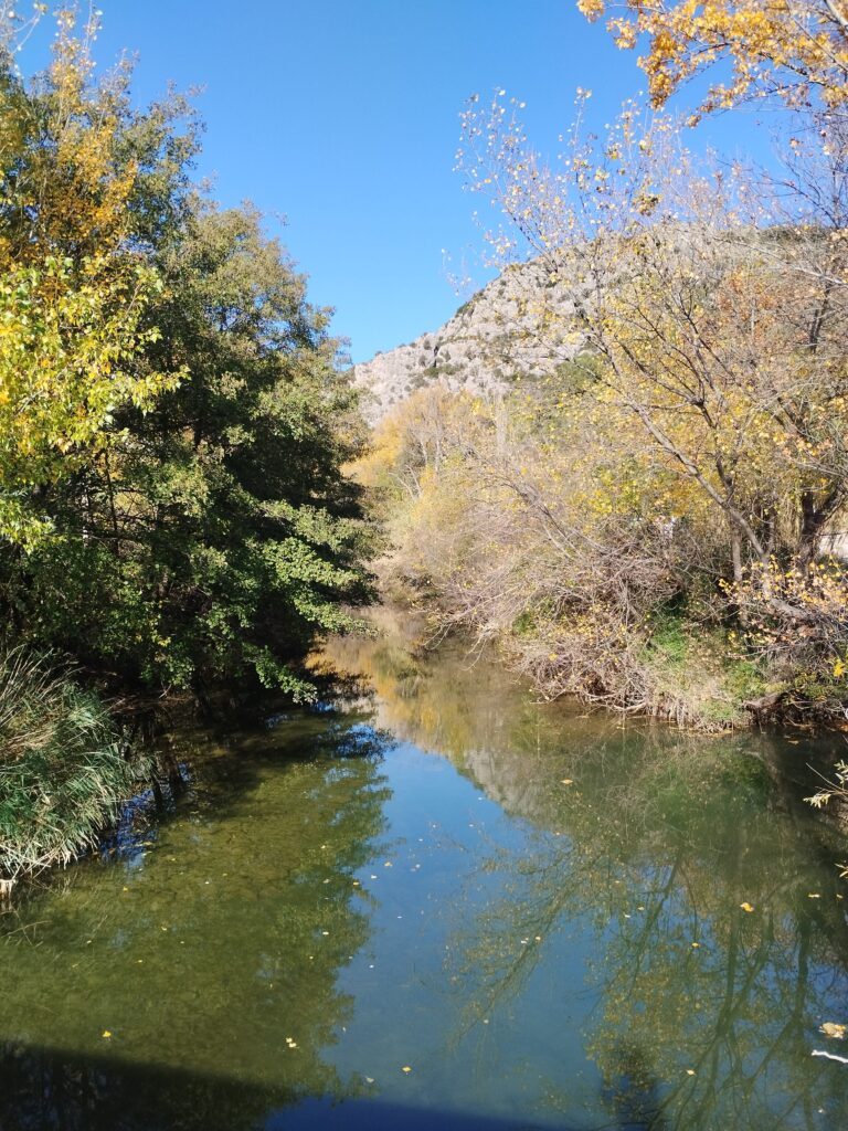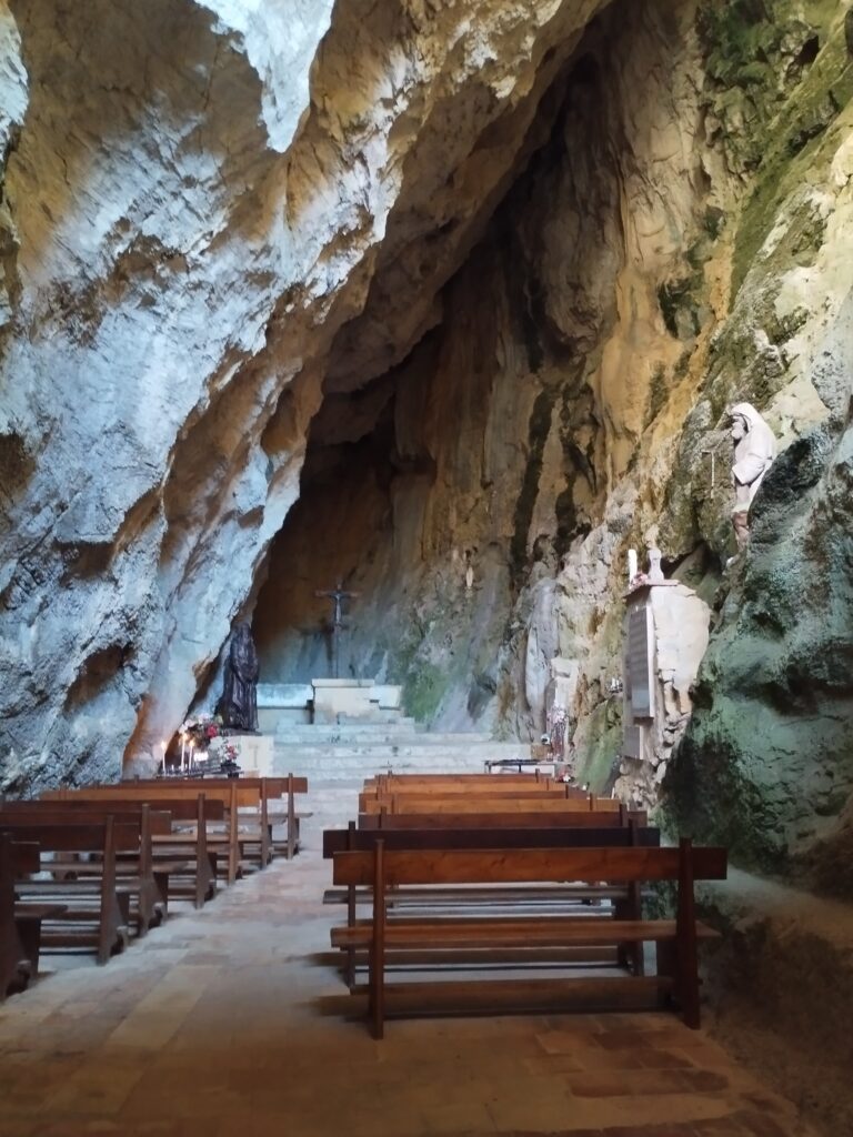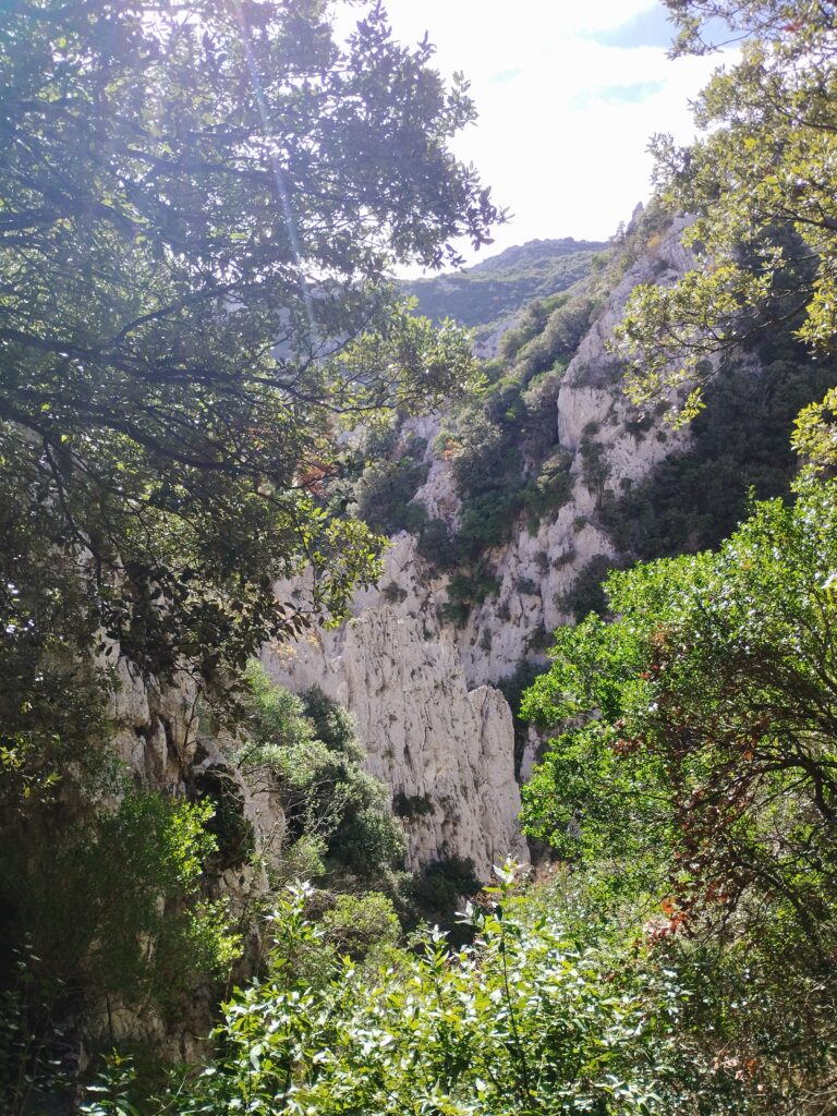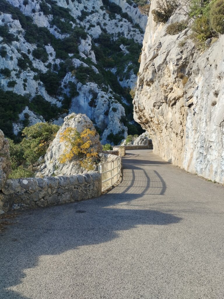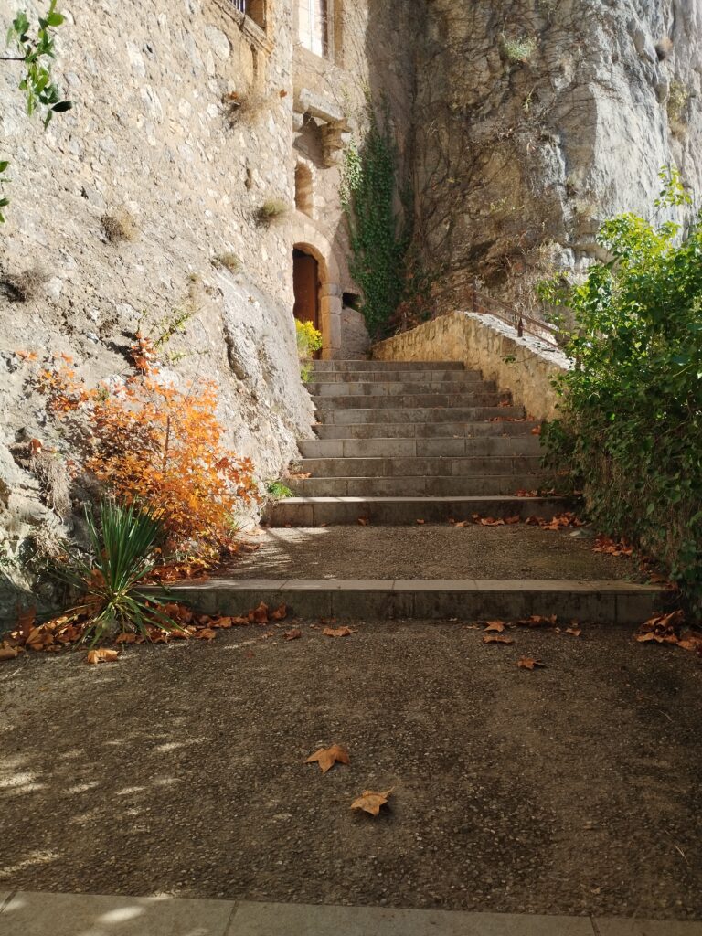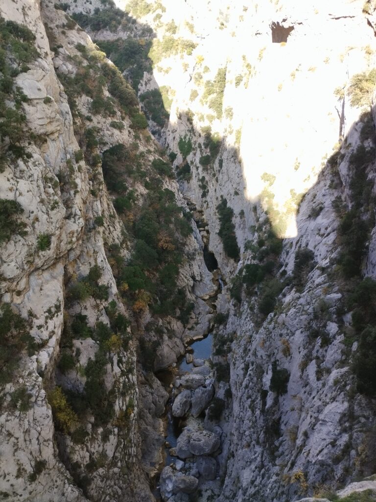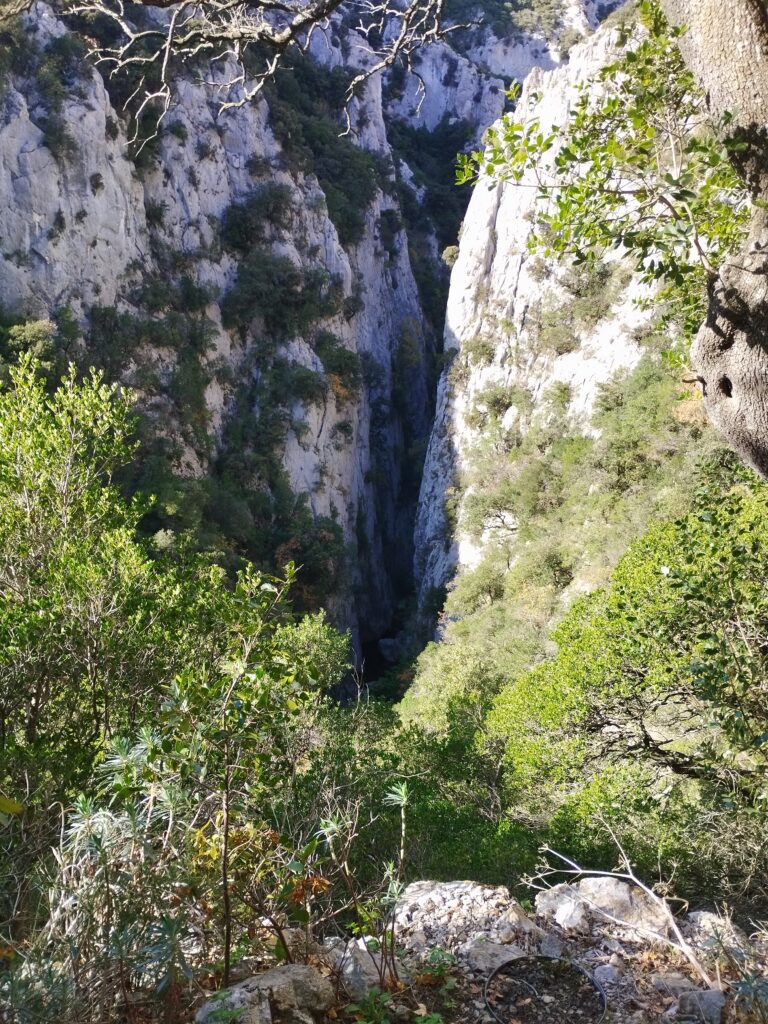 J’ai choisi de faire une randonnée qui fait une boucle autour des gorges. On prend de la hauteur pour admirer la vue, puis on revient par la route à flanc de falaise. Cette marche passe par l’Ermitage de Saint Antoine. Quand j’y étais, les chiens avaient le droit de traverser l’Ermitage sans problème !