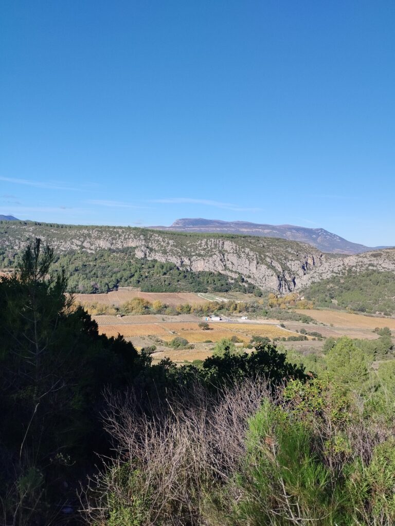 Pour notre deuxième jour en Occitanie avec Touity, on décide d’explorer les gorges de Gouleyrous. Si vous faites de l’escalade, c’est un super spot ! Cette boucle permet de prendre un peu de hauteur pour admirer le paysage. Elle passe par les gorges de Gouleyrous. Ce jour là, il y avait plusieurs groupes de grimpeurs. Je pense que si on veut, on peut marcher un peu le long des roches afin de s’enfoncer dans les gorges. Ensuite on poursuit le chemin à travers les vignes pour retourner au point de départ à Tautavel.